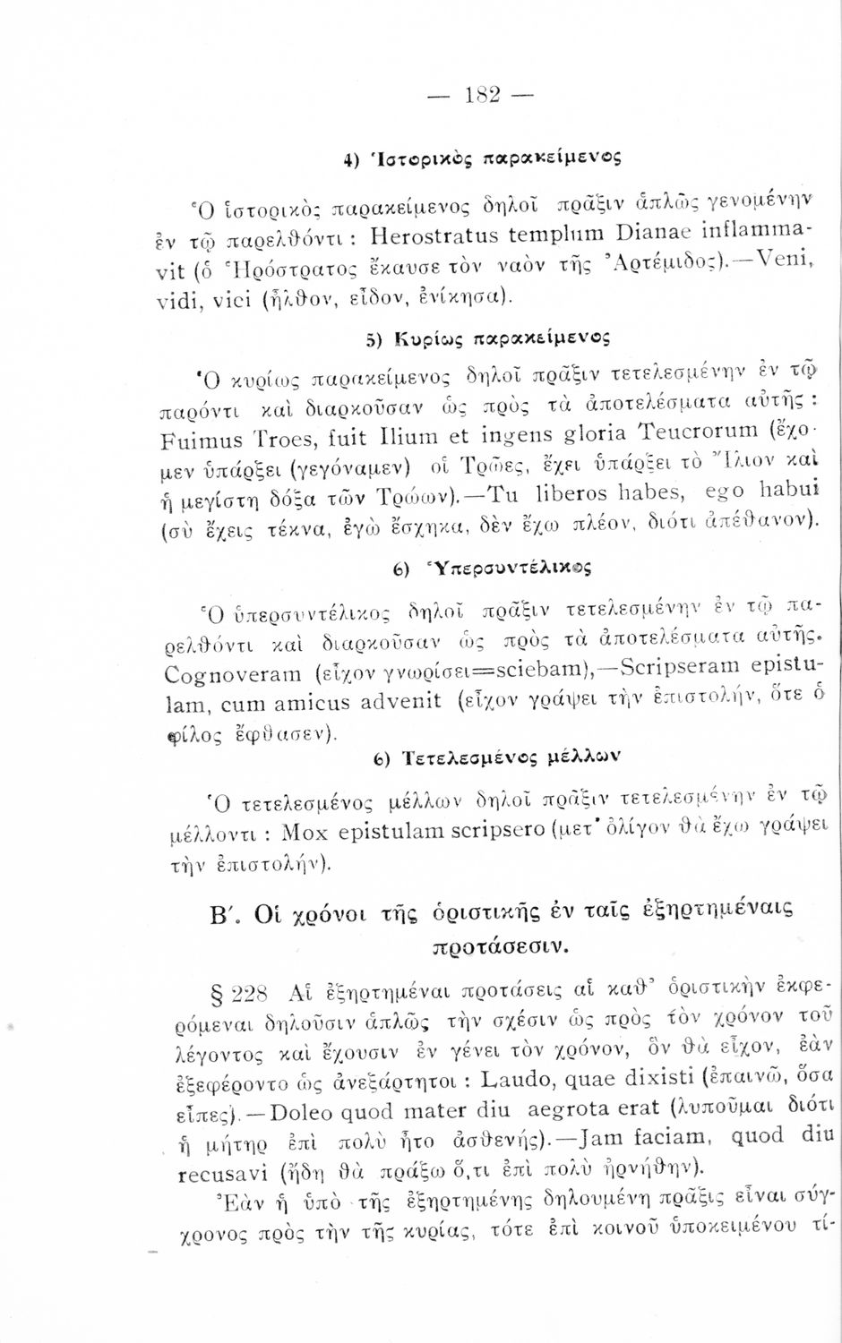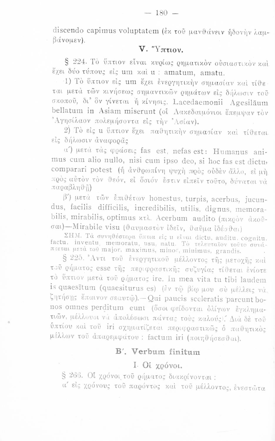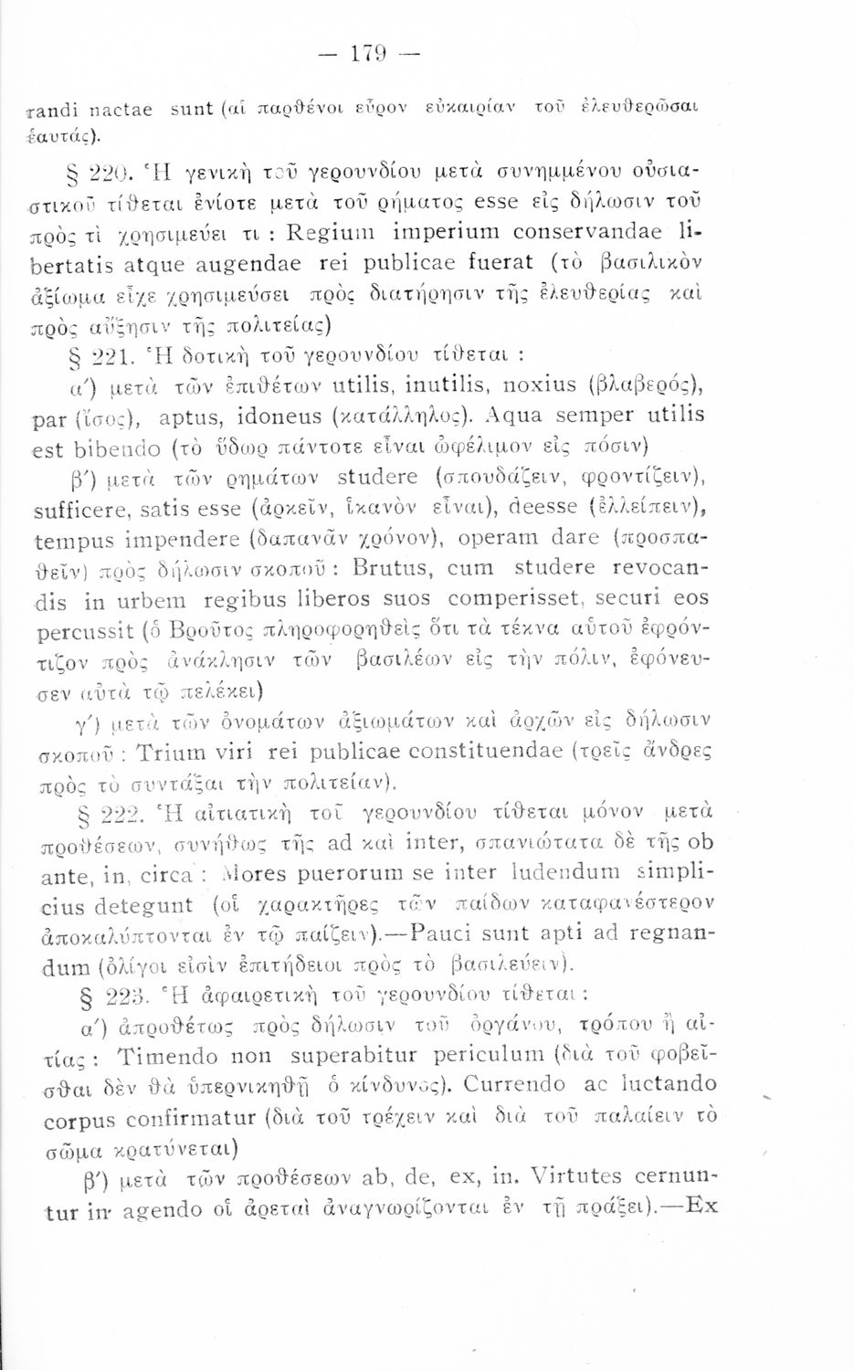Γραμματικής της λατινικής γλώσσας για τα Ελληνικά Σχολεία και Γυμνάσια που περιέχει δύο τμήματα: το τεχνολογικό που εστιάζει στα μέρη του λόγου και το συντακτικό που ασχολείται με τις πτώσεις, τις εγκλίσεις, ...