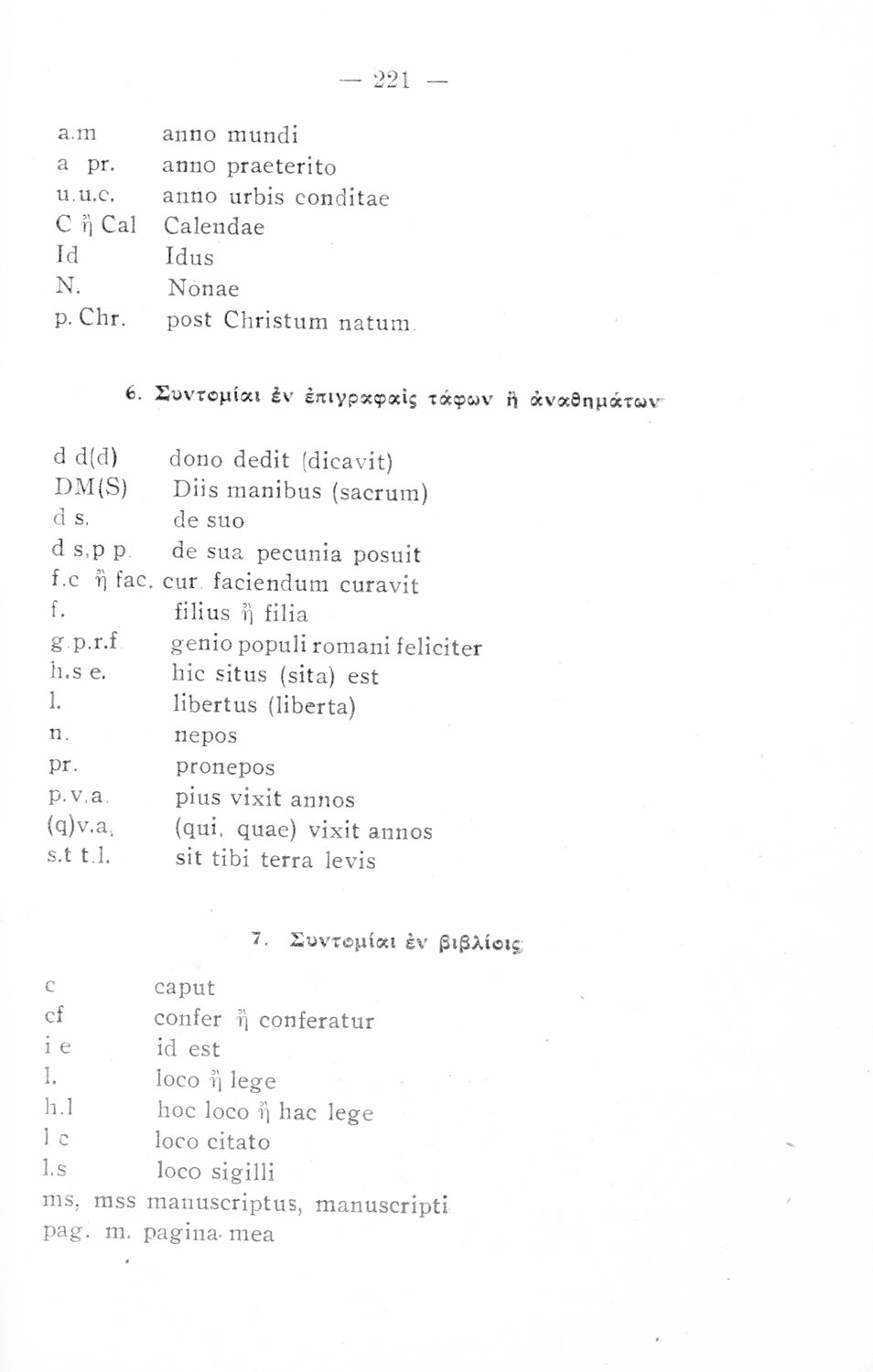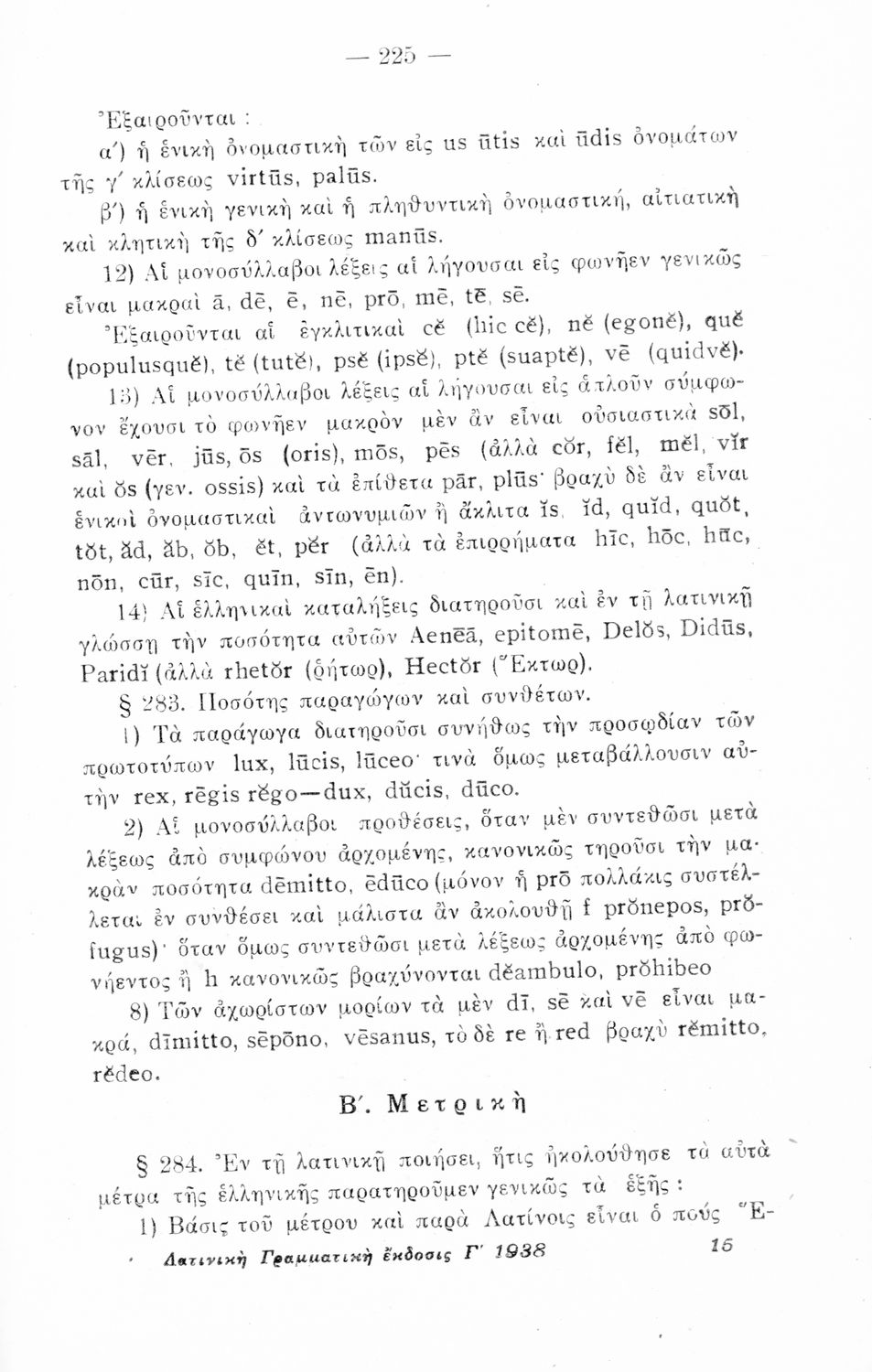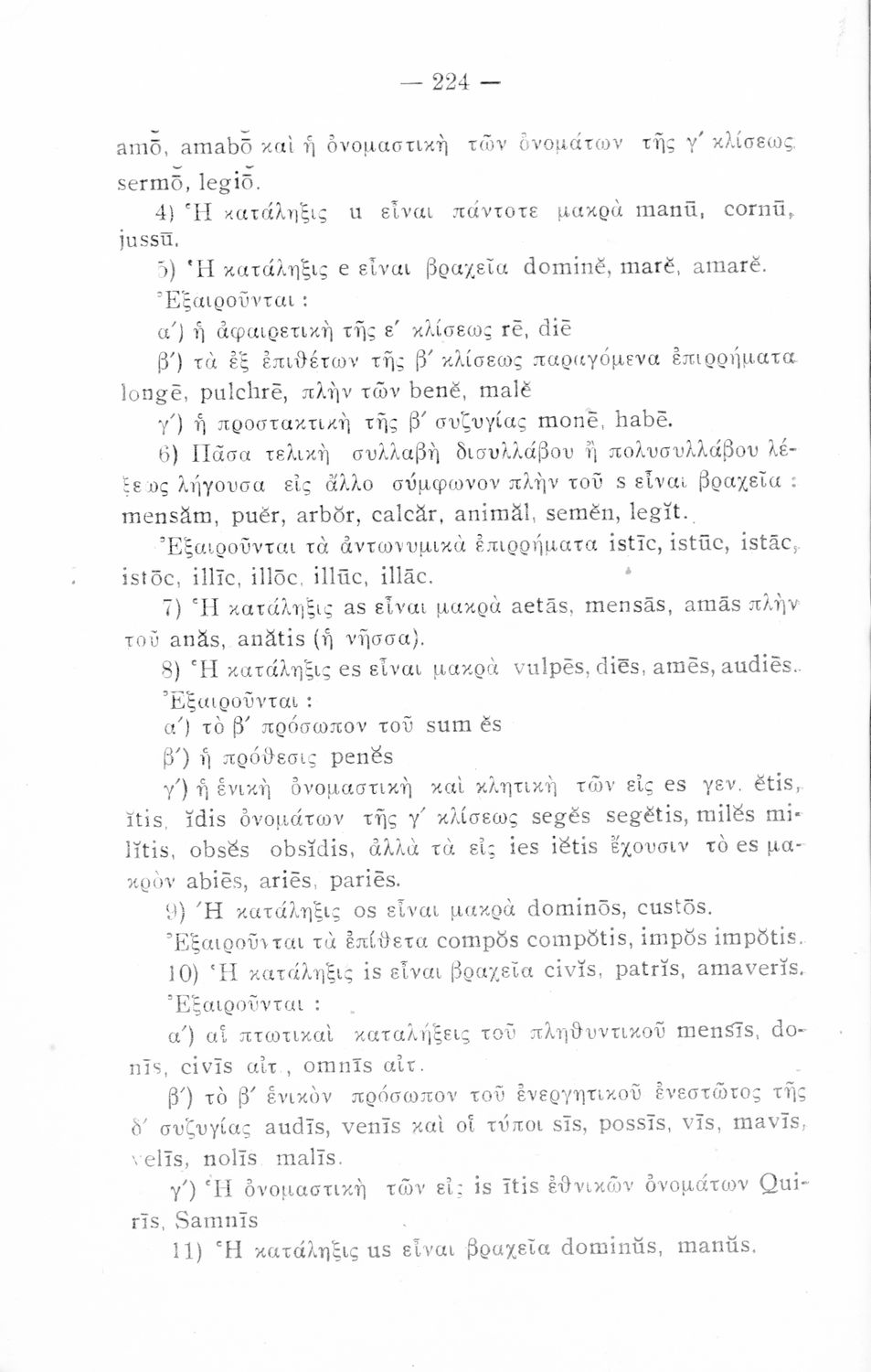 Σχολικό εγχειρίδιο Λατινικών που περιλαμβάνει τη γραμματική της λατινικής και είναι χωρισμένο στο τεχνολογικό, το τυπολογικό και το ετυμολογικό μέρος.