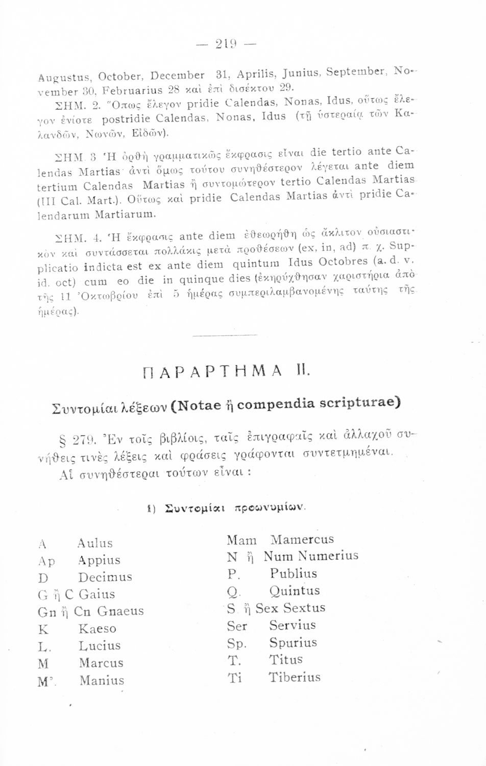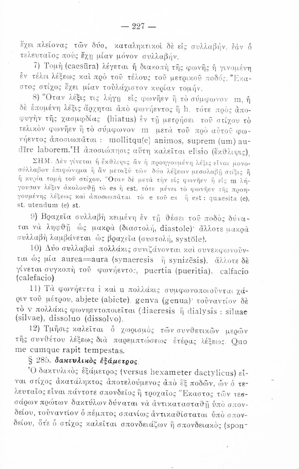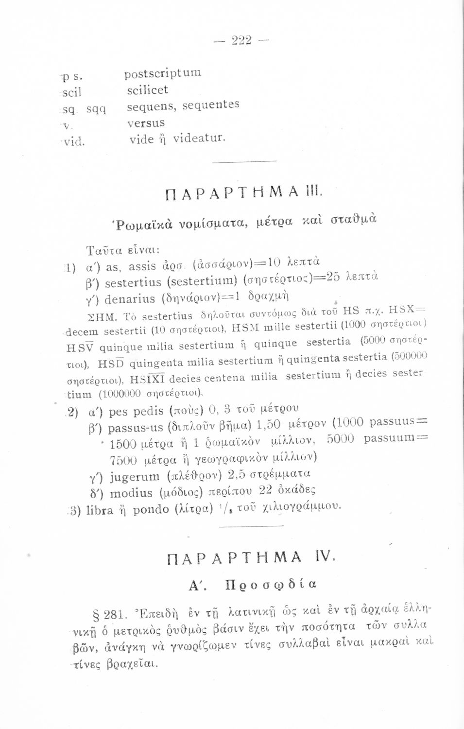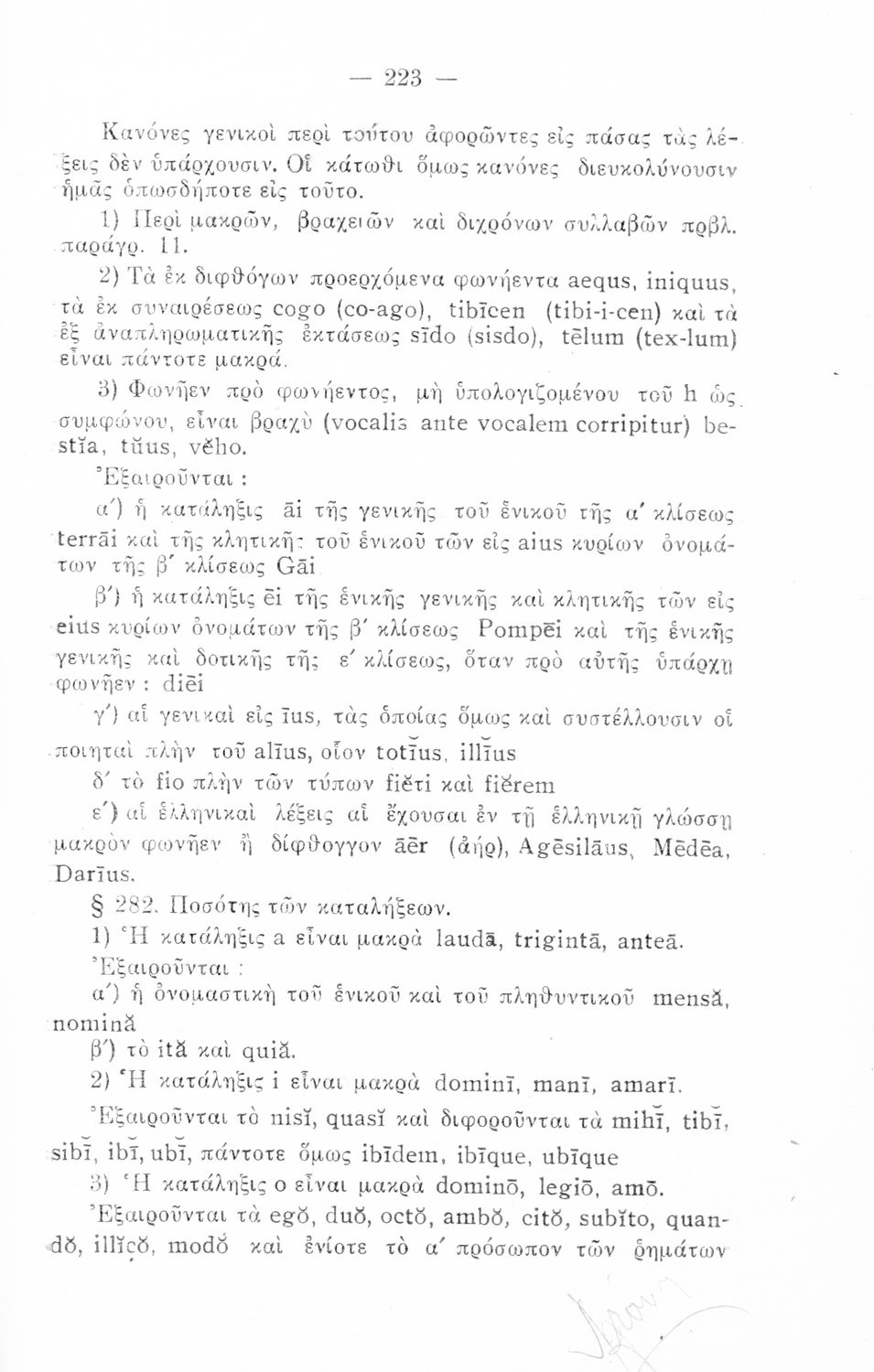Σχολικό εγχειρίδιο Λατινικών που περιλαμβάνει τη γραμματική της λατινικής και είναι χωρισμένο στο τεχνολογικό, το τυπολογικό και το ετυμολογικό μέρος.