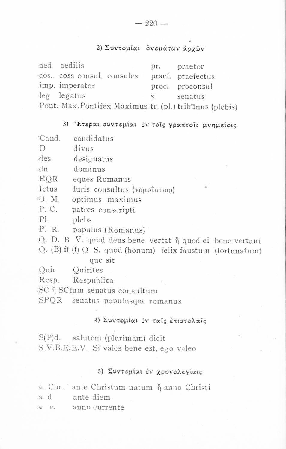 Σχολικό εγχειρίδιο Λατινικών Α΄, Β΄, Γ' Γυμνασίου που περιλαμβάνει γραμματική και συντακτικό και είναι χωρισμένο σε φθογγολογικό, τυπολογικό και ετυμολογικό μέρος.