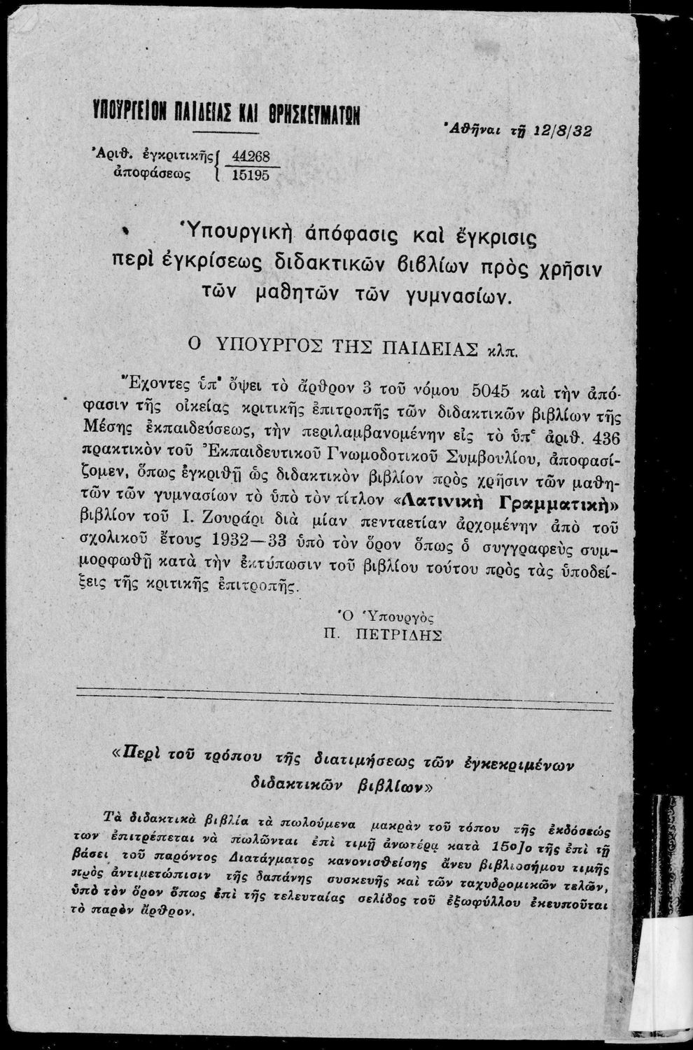 Υπουργική απόφαση / Σύμβαση: 44268-15195/12-8-1932