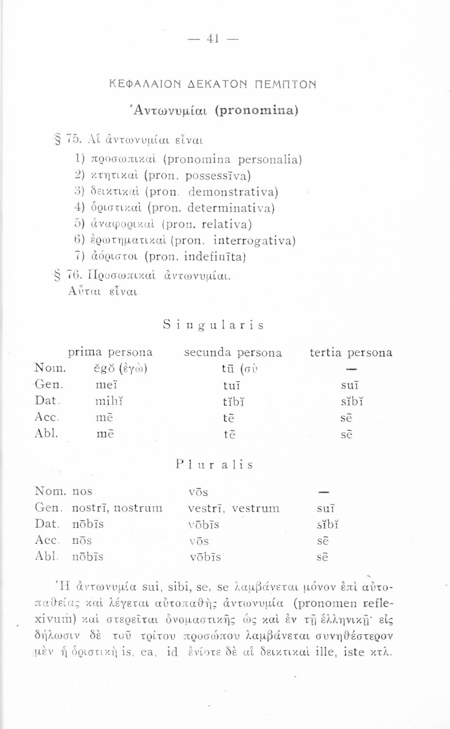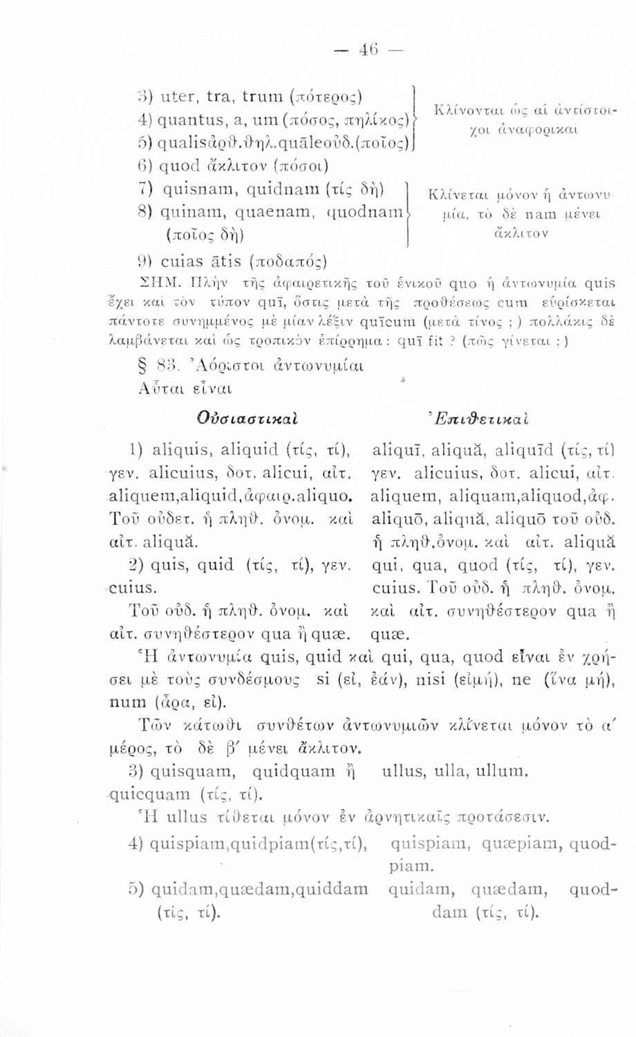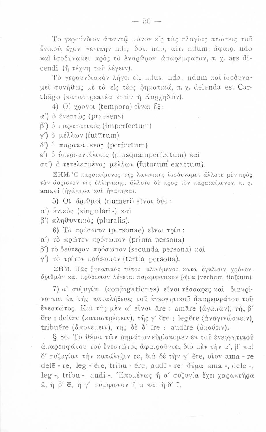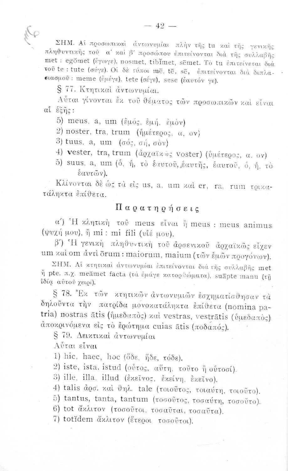 Σχολικό εγχειρίδιο Λατινικών που περιλαμβάνει τη γραμματική της λατινικής και είναι χωρισμένο στο τεχνολογικό, το τυπολογικό και το ετυμολογικό μέρος.