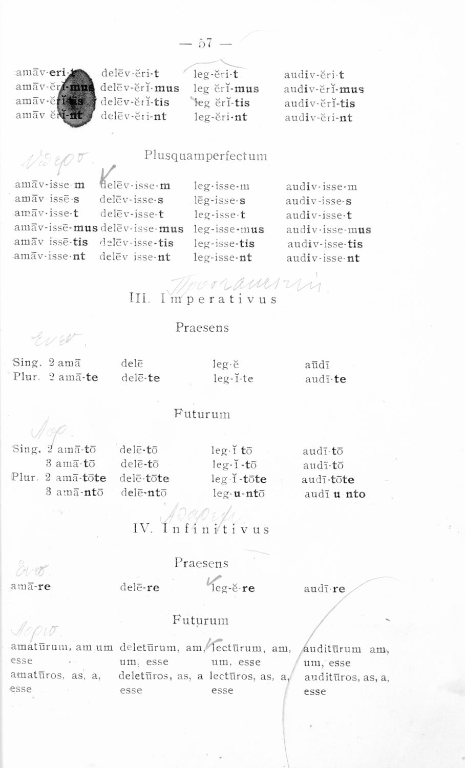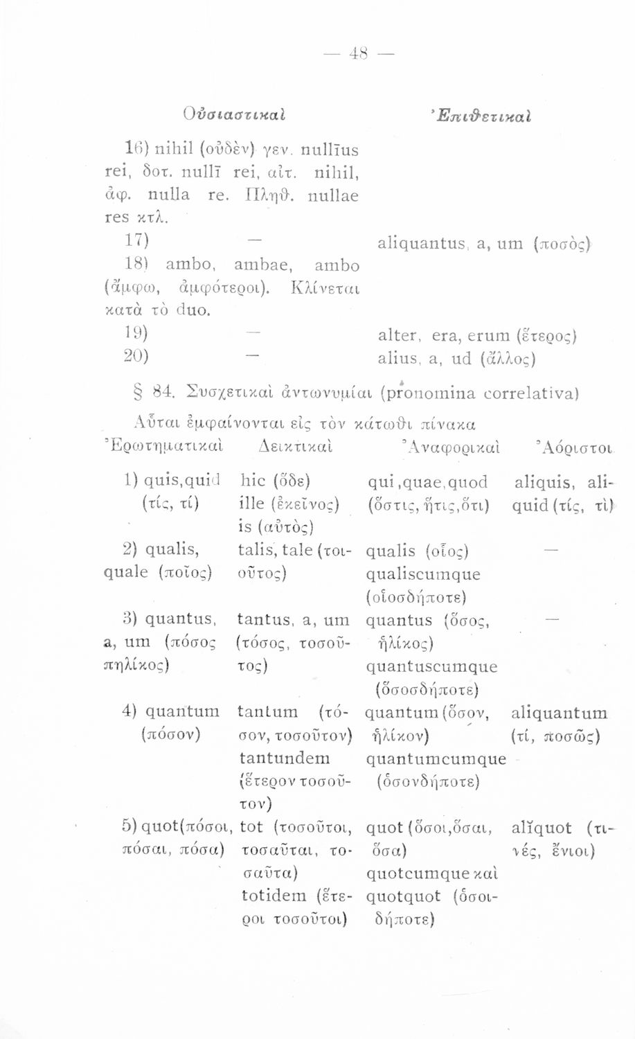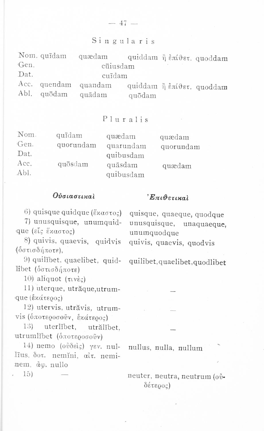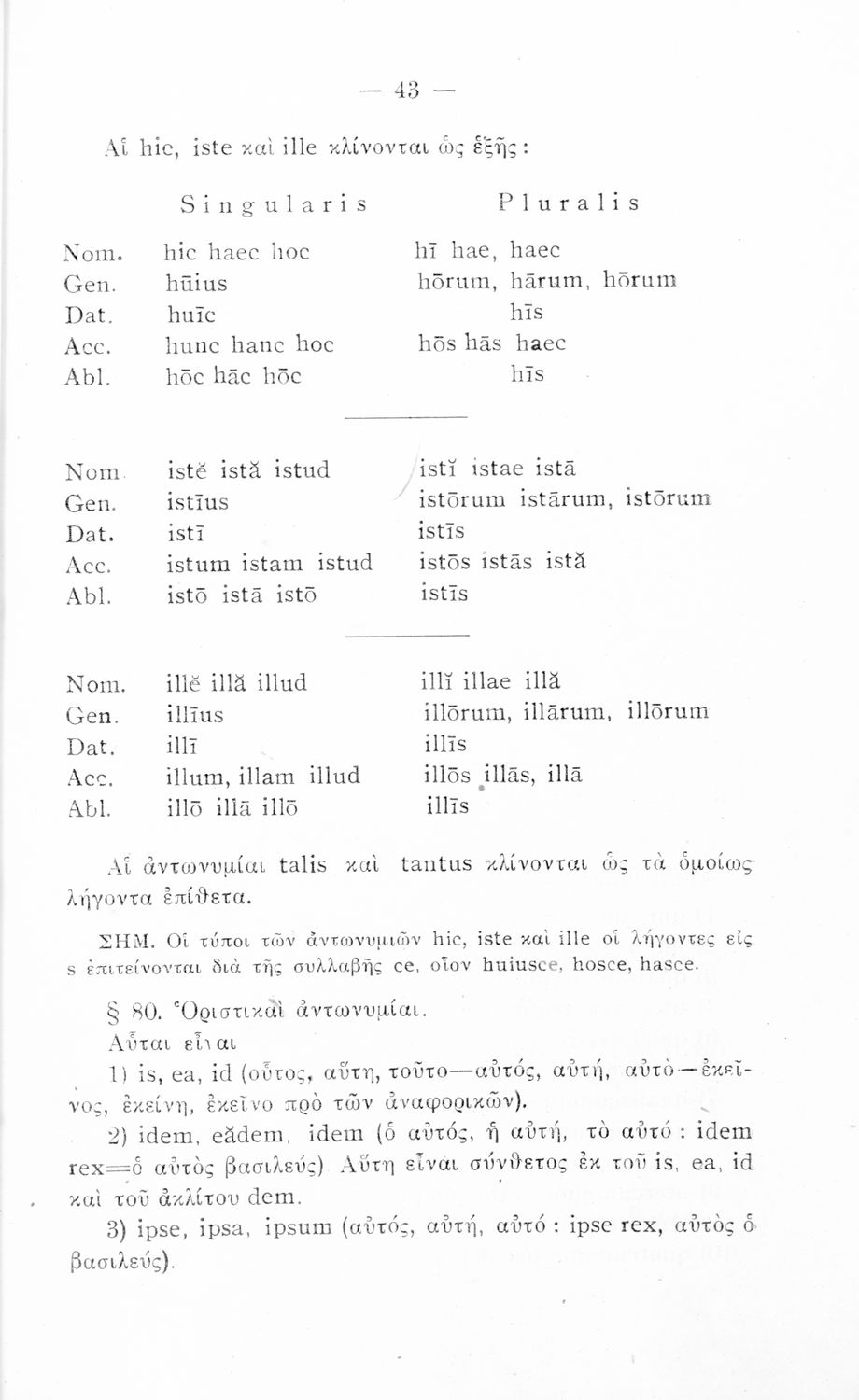 Σχολικό εγχειρίδιο Λατινικών που περιλαμβάνει τη γραμματική της λατινικής και είναι χωρισμένο στο τεχνολογικό, το τυπολογικό και το ετυμολογικό μέρος.