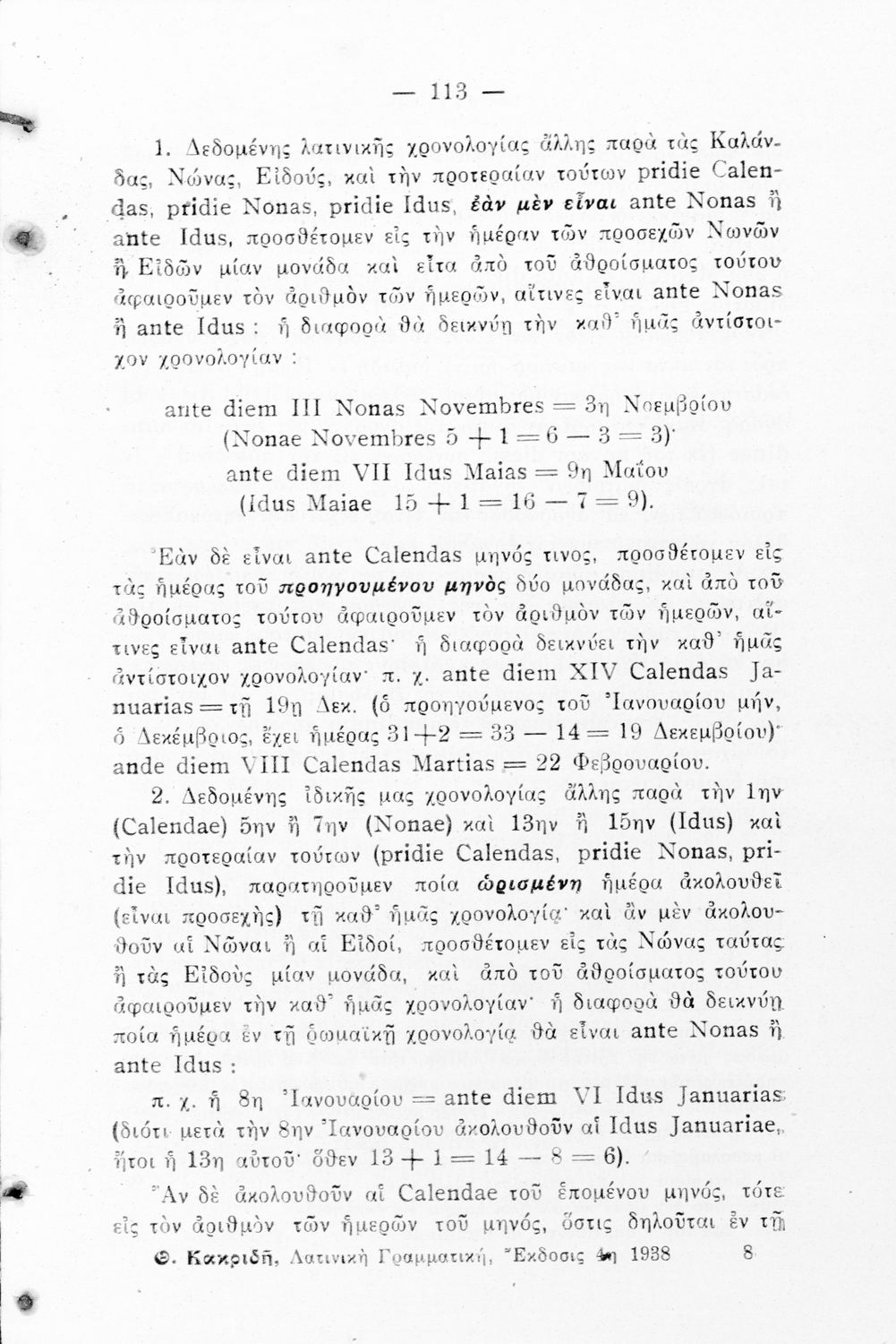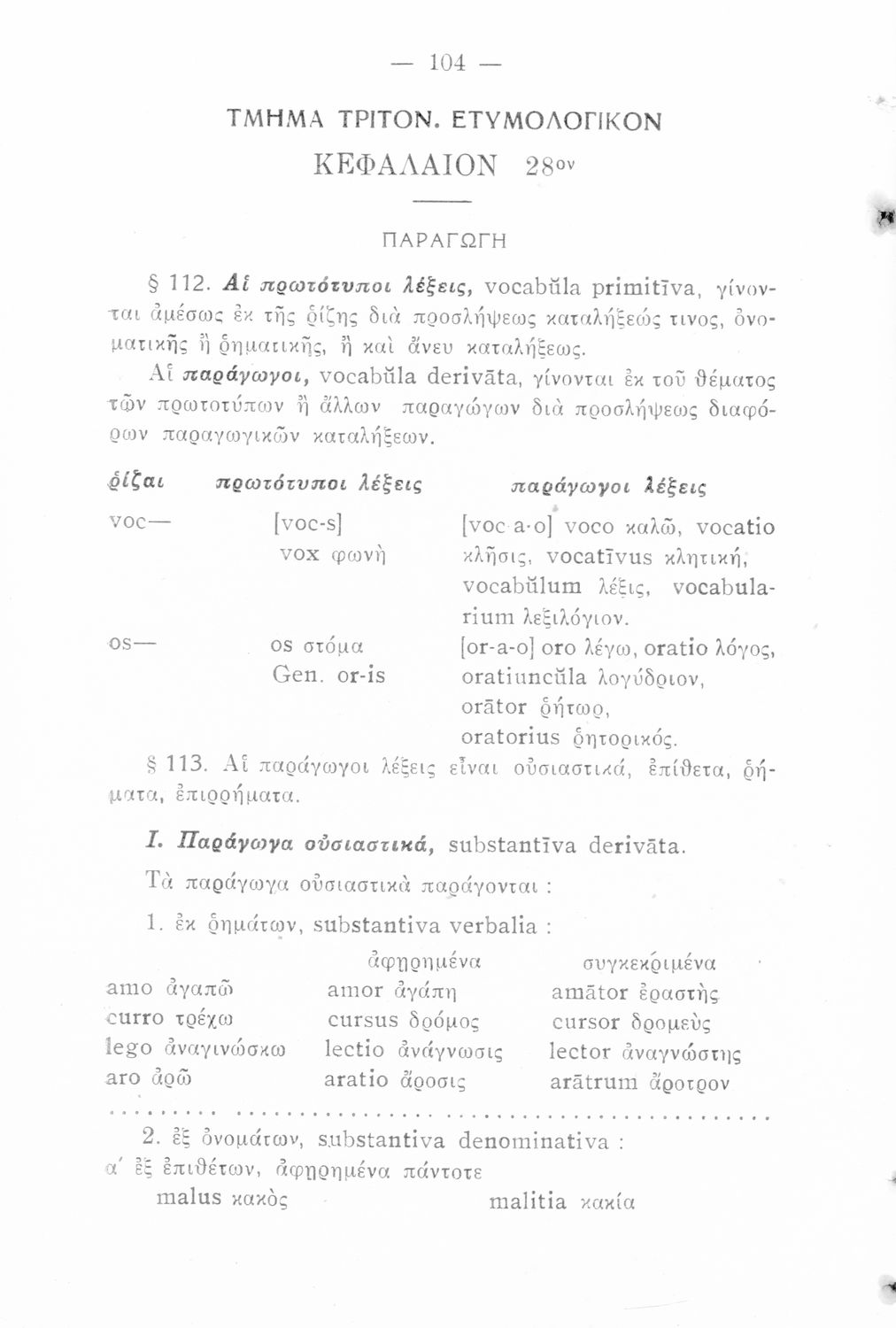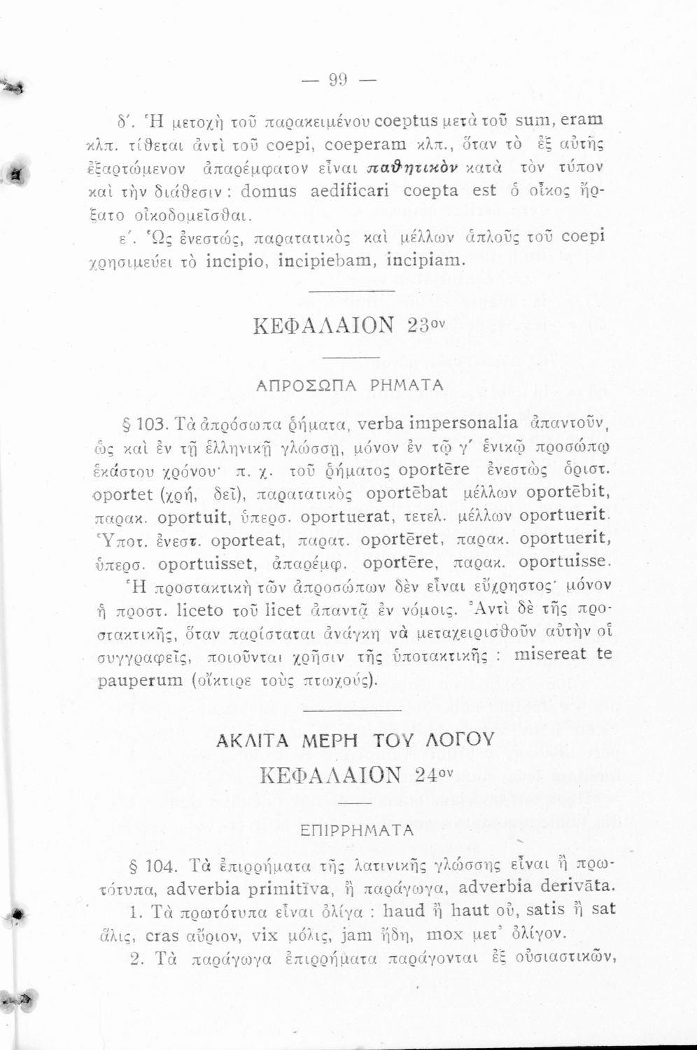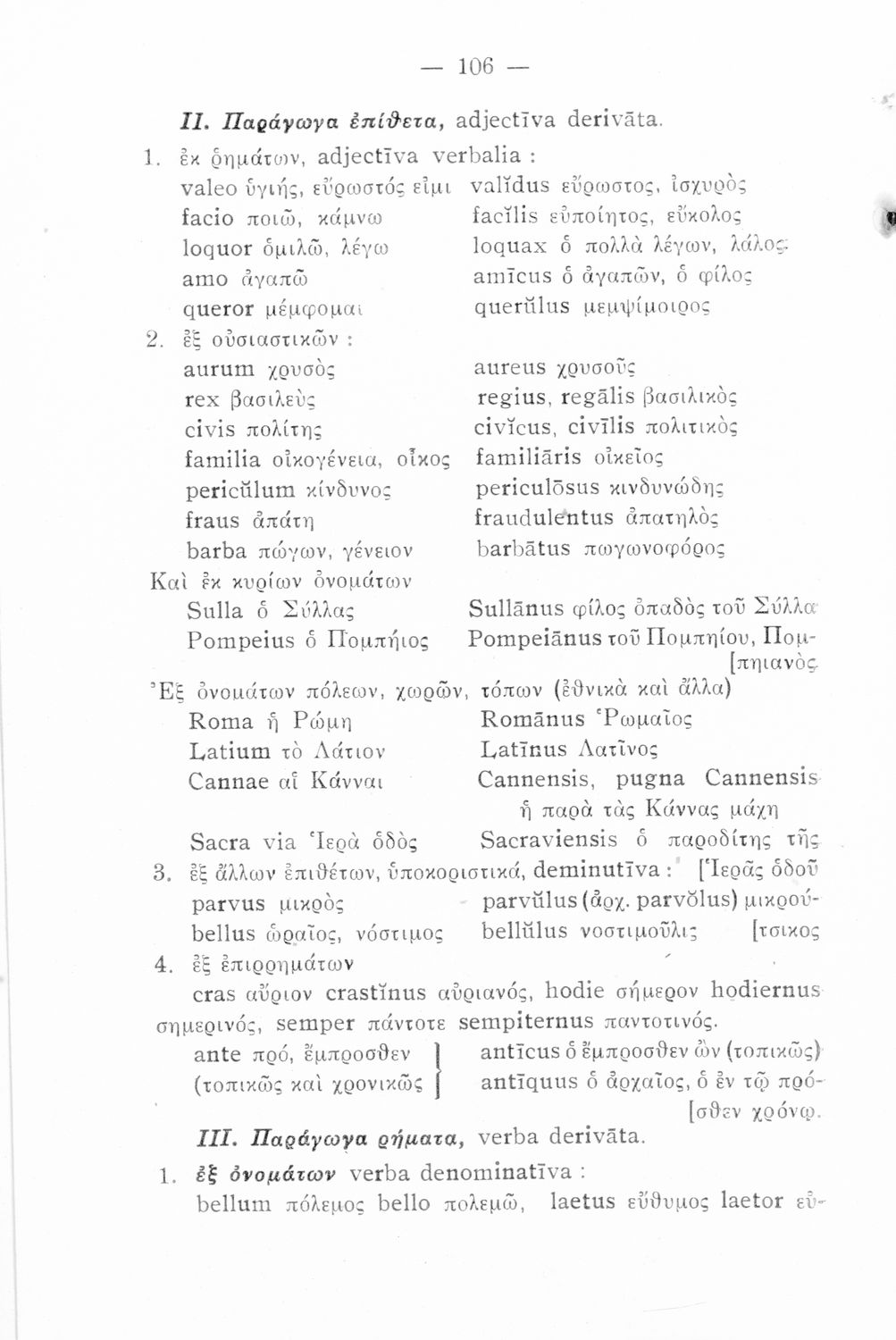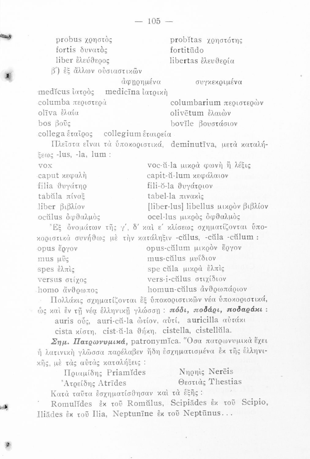 Σχολικό εγχειρίδιο Λατινικών Α΄, Β΄, Γ' Γυμνασίου που περιλαμβάνει γραμματική και συντακτικό και είναι χωρισμένο σε φθογγολογικό, τυπολογικό και ετυμολογικό μέρος.