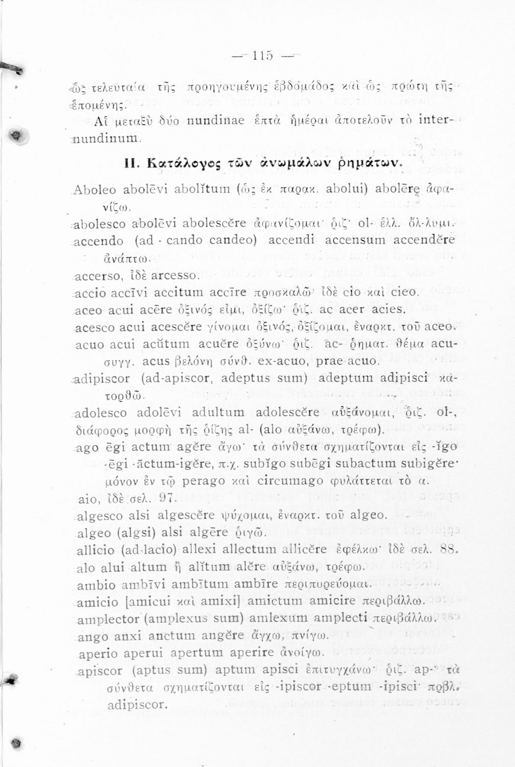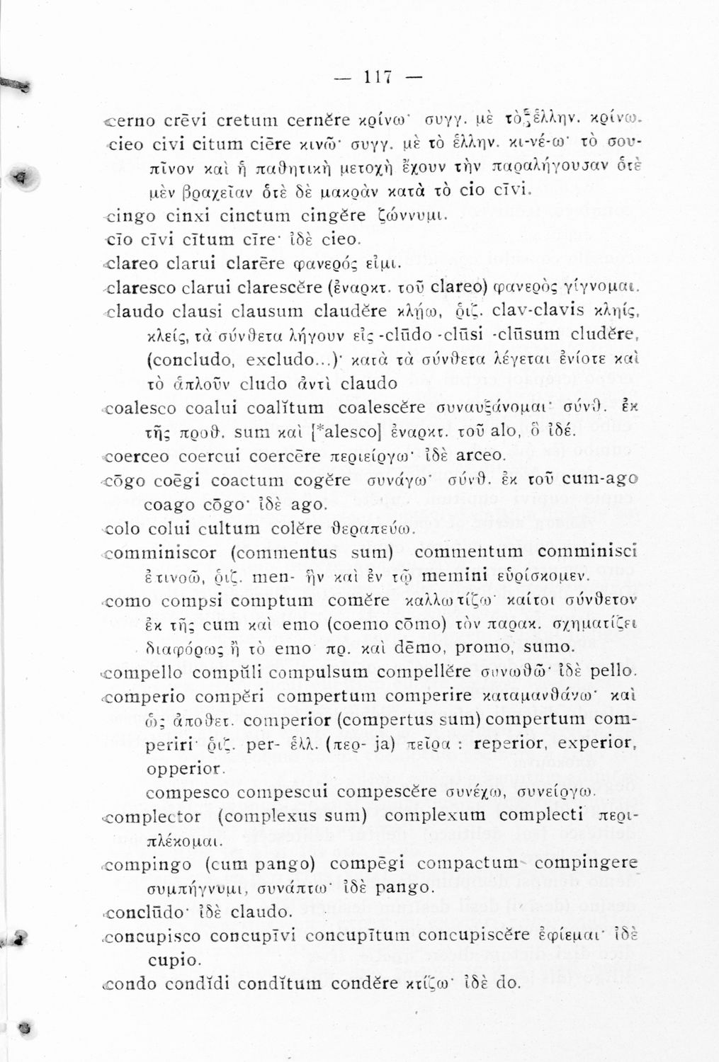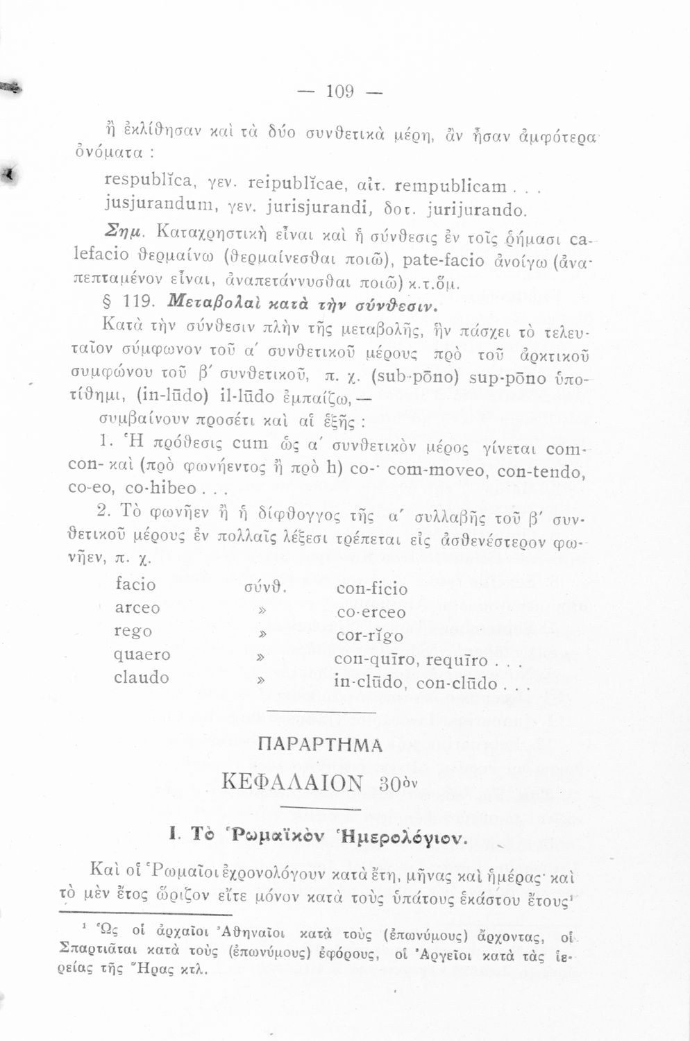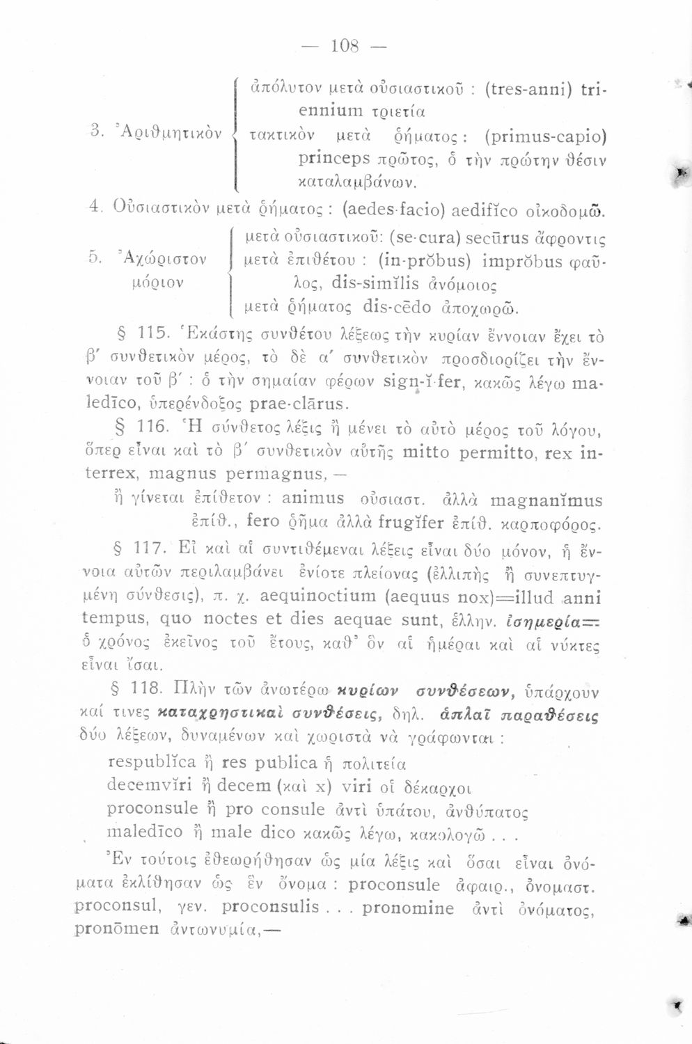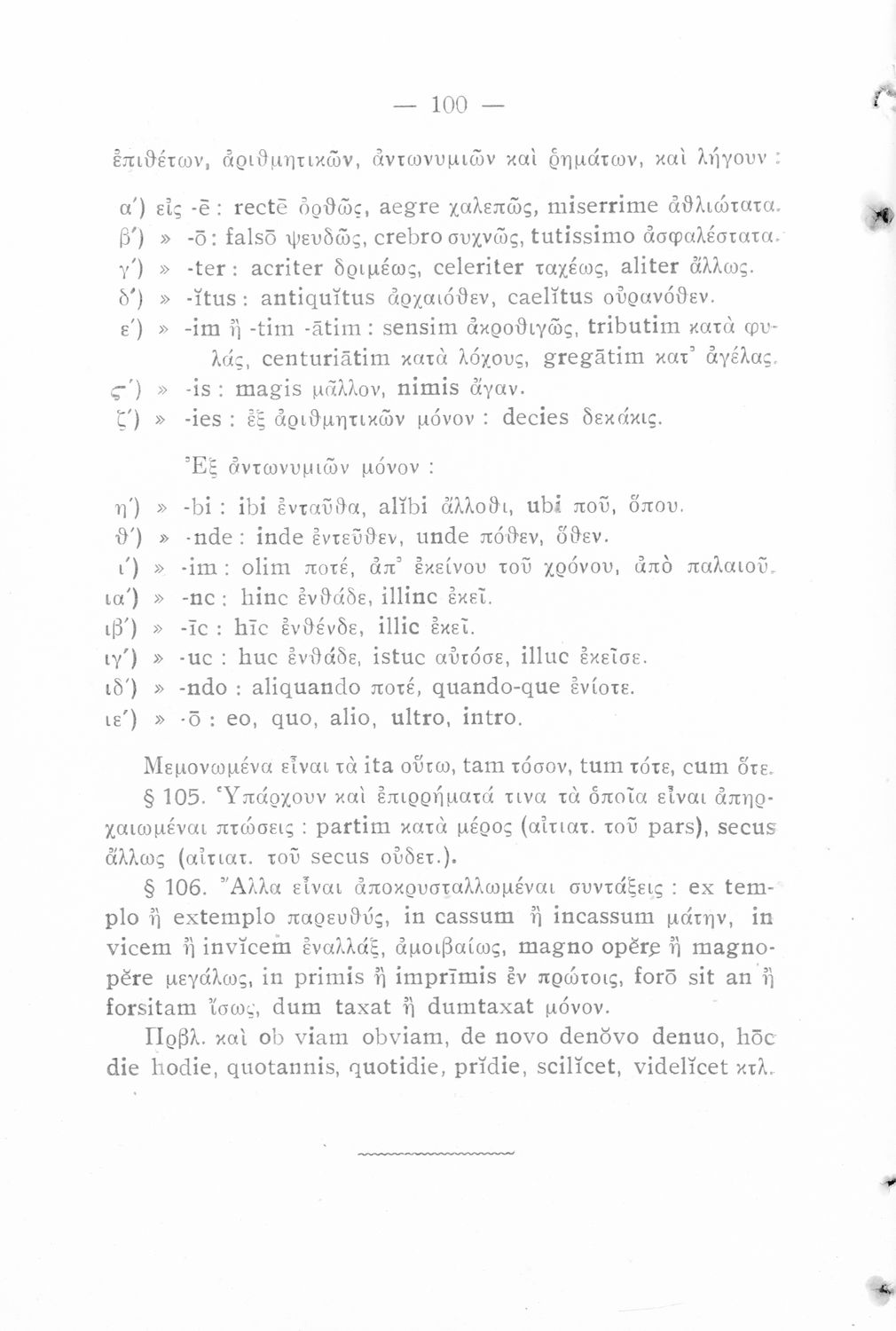 Σχολικό εγχειρίδιο Λατινικών Α΄, Β΄, Γ' Γυμνασίου που περιλαμβάνει γραμματική και συντακτικό και είναι χωρισμένο σε φθογγολογικό, τυπολογικό και ετυμολογικό μέρος.