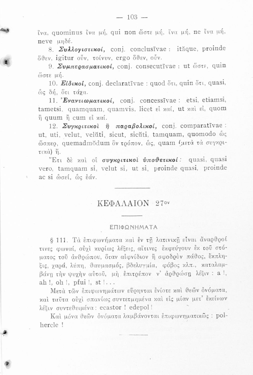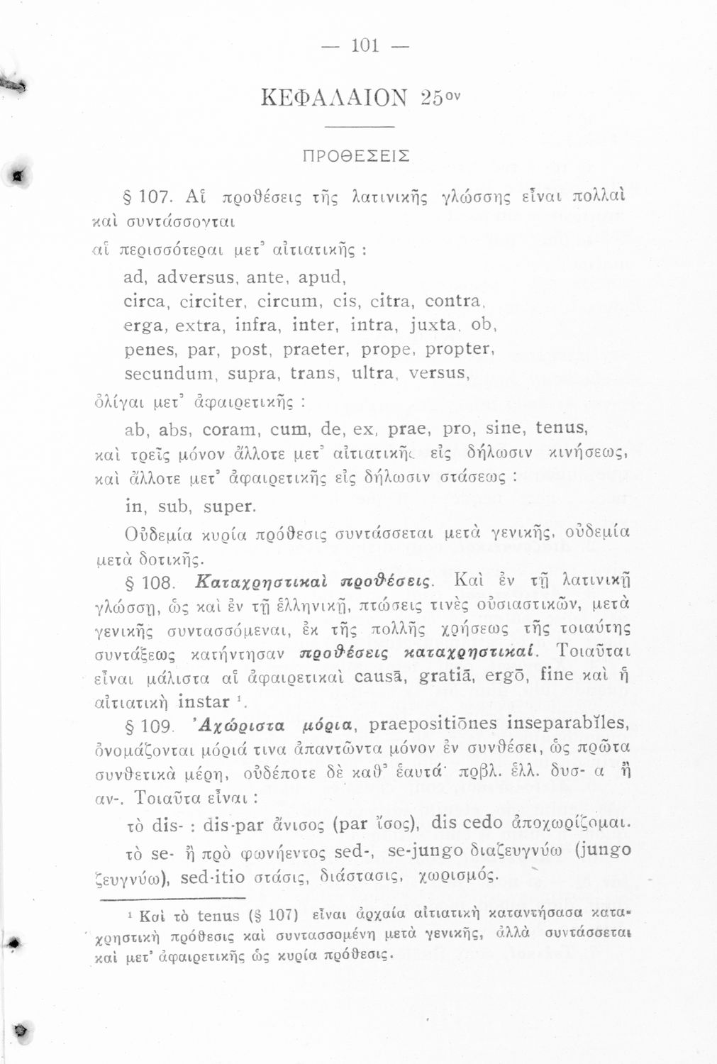 Σχολικό εγχειρίδιο Λατινικών Γυμνασίου που περιλαμβάνει γραμματική και συντακτικό και είναι χωρισμένο σε φθογγολογικό, τυπολογικό και ετυμολογικό μέρος. Περιέχει και μετρικό παράρτημα. Ο συγγραφέας ήταν ...