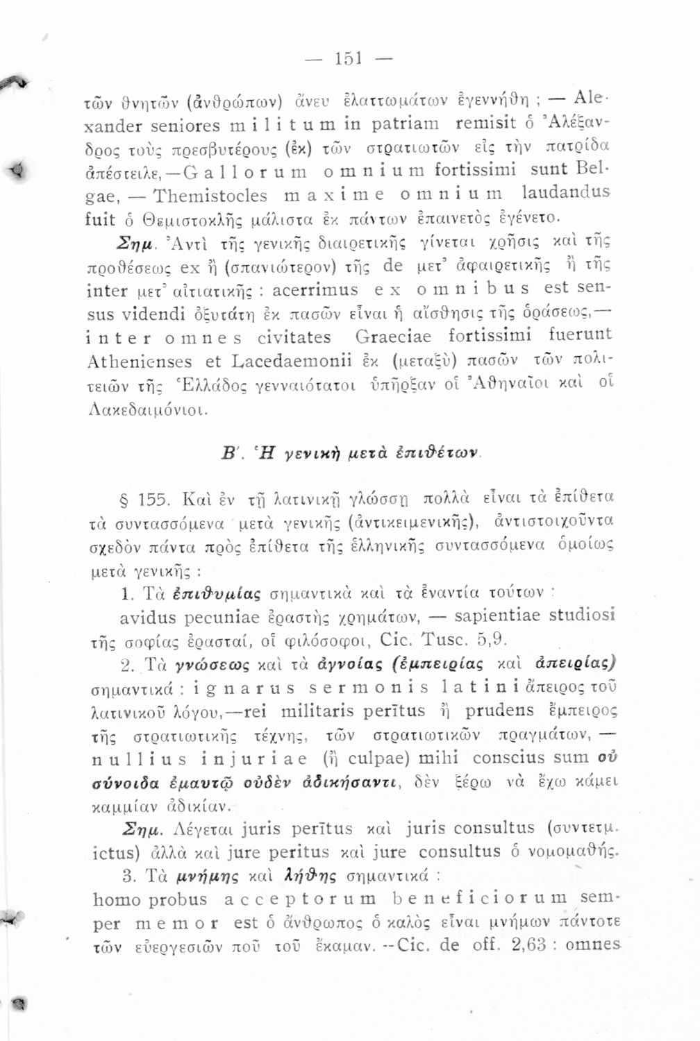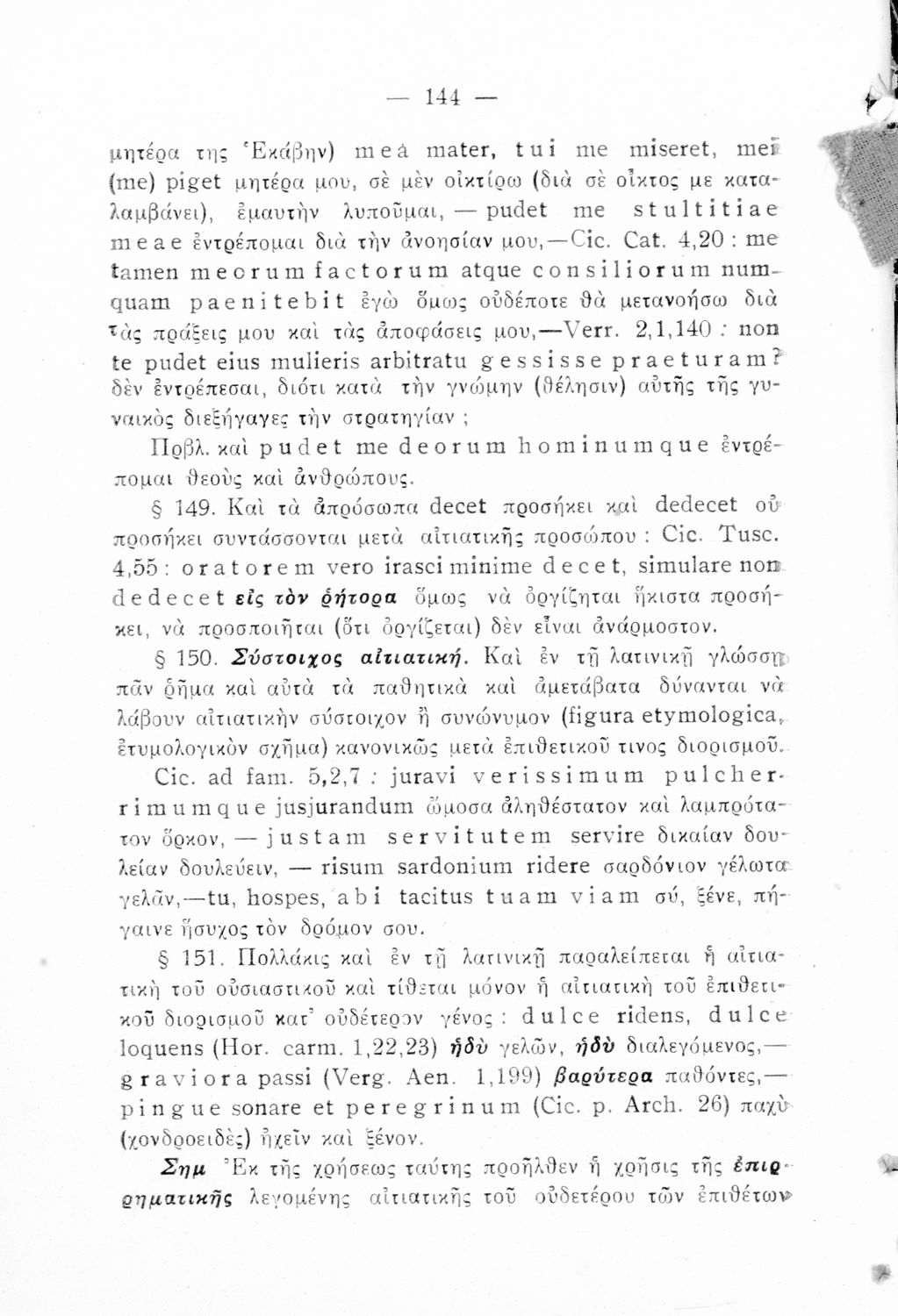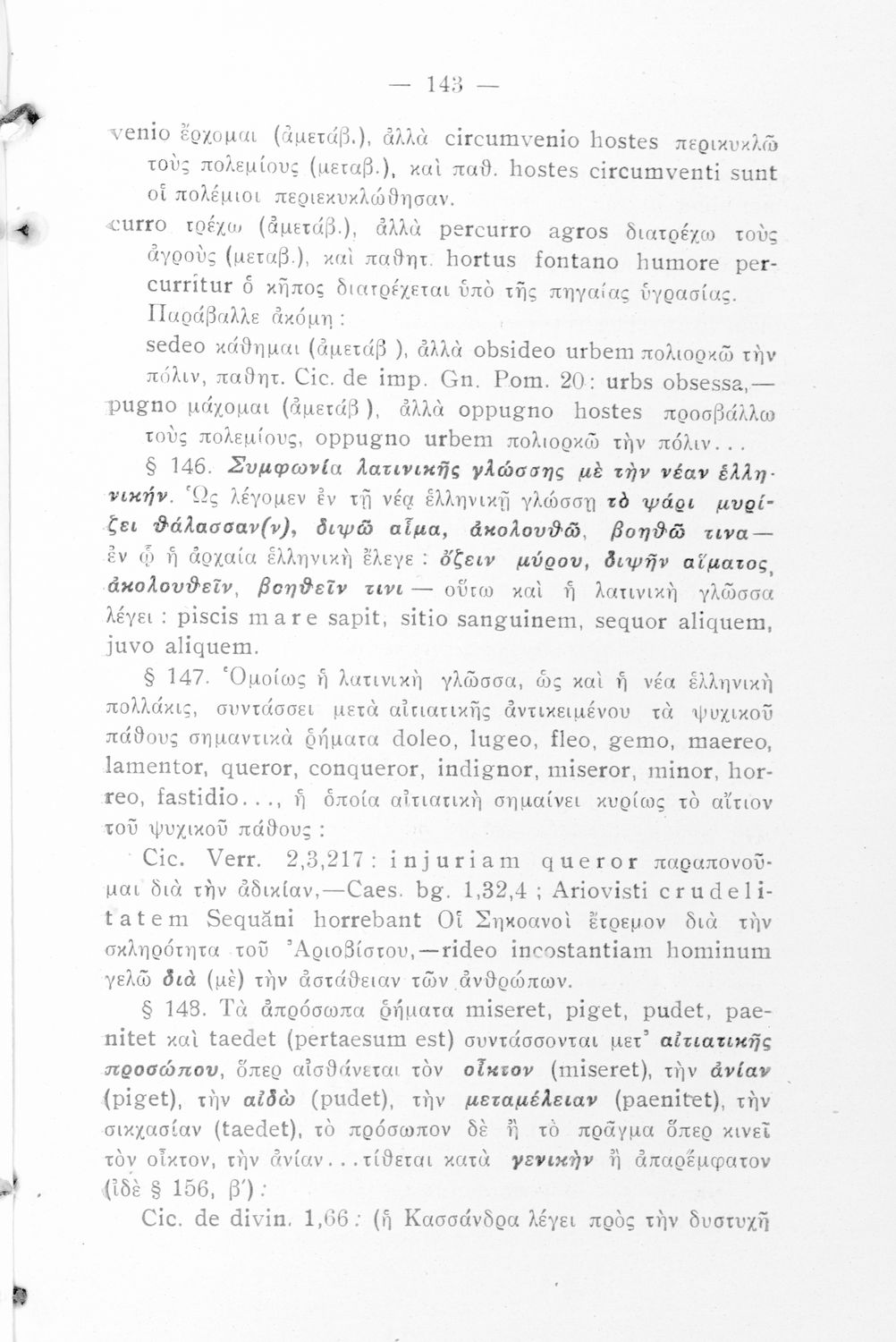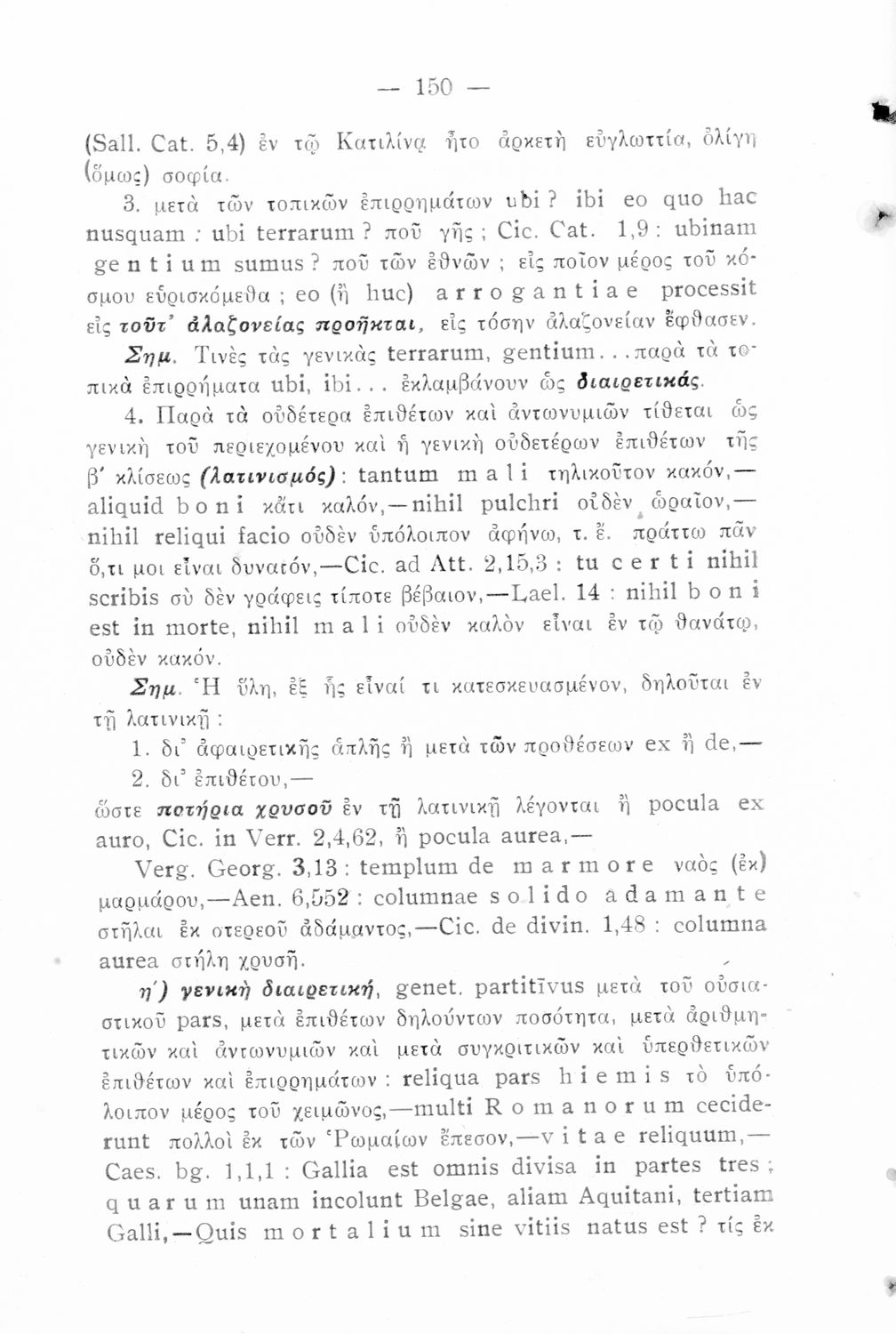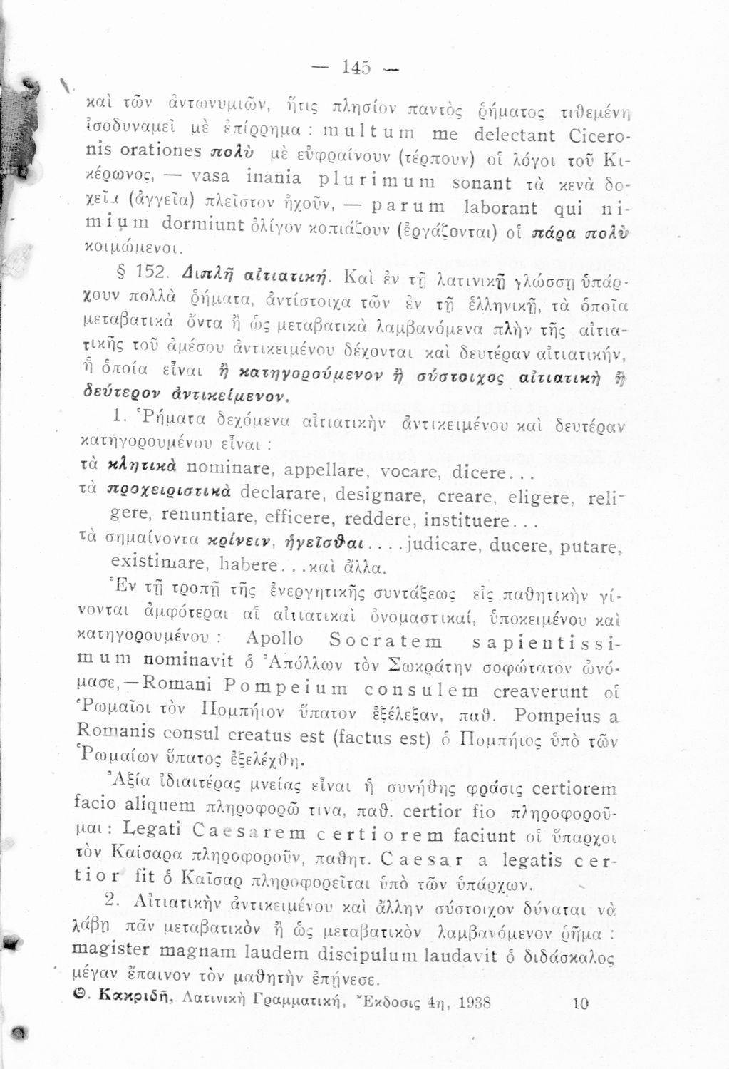 Σχολικό εγχειρίδιο Λατινικών Α΄, Β΄, Γ' Γυμνασίου που περιλαμβάνει γραμματική και συντακτικό και είναι χωρισμένο σε φθογγολογικό, τυπολογικό και ετυμολογικό μέρος.