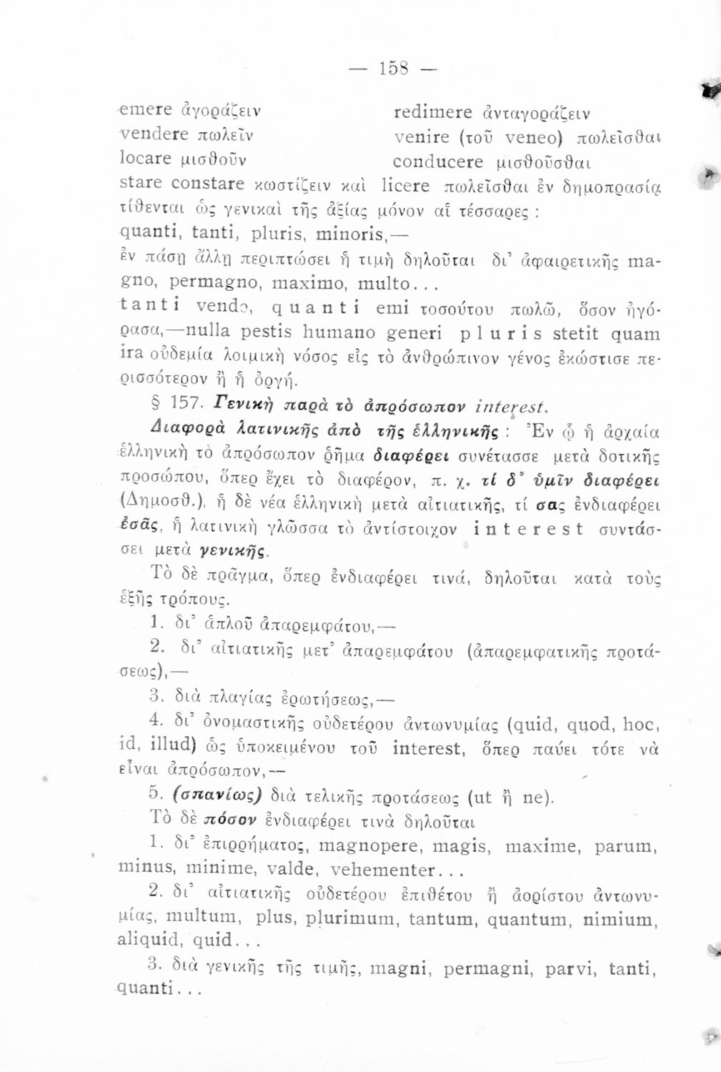 Σχολικό εγχειρίδιο Λατινικών Γυμνασίου που περιλαμβάνει γραμματική και συντακτικό και είναι χωρισμένο σε φθογγολογικό, τυπολογικό και ετυμολογικό μέρος. Ο συγγραφέας ήταν καθηγητής της Λατινικής Φιλολογίας στο