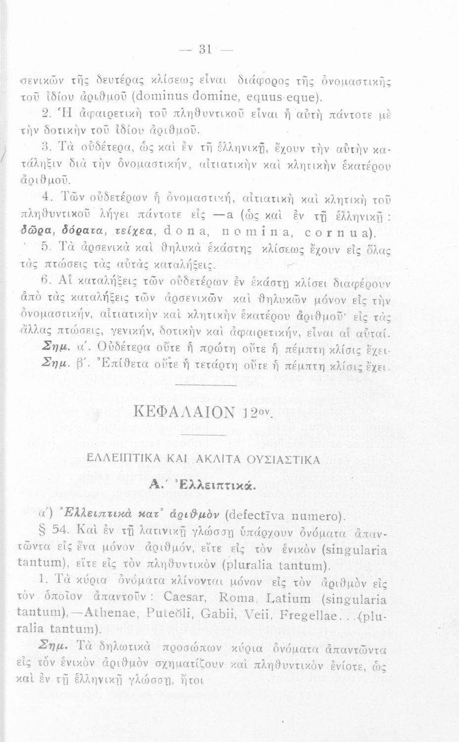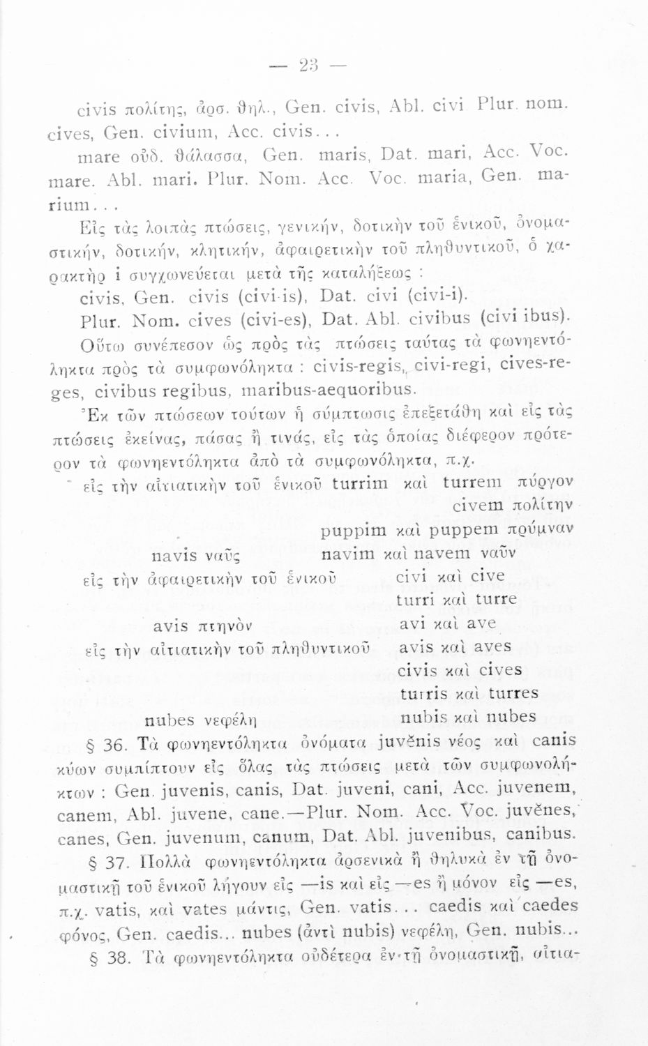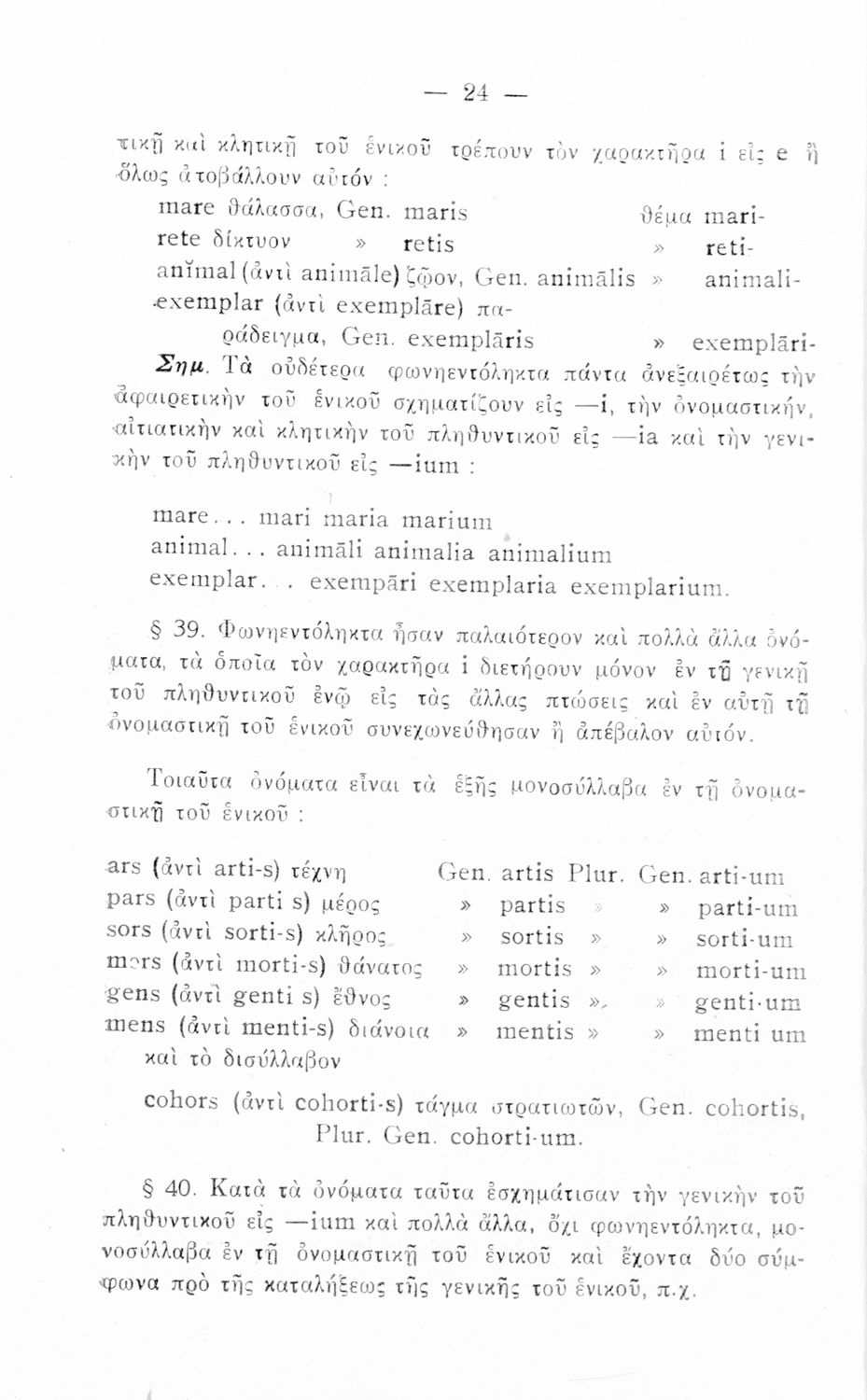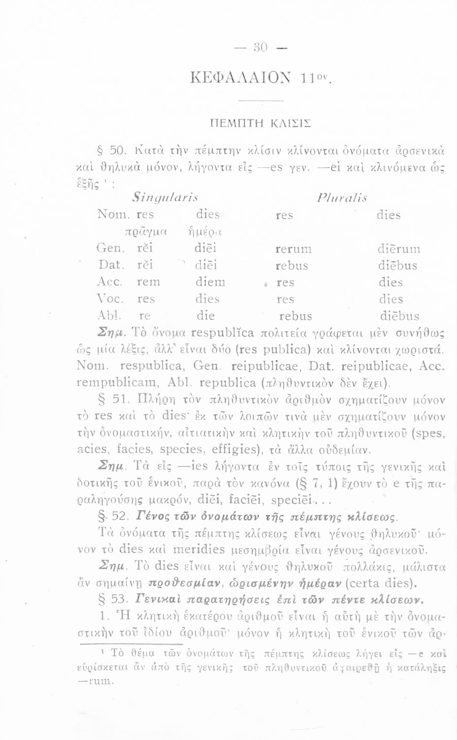 Σχολικό εγχειρίδιο Αρχαίων Ελληνικών για τα Ελληνικά Σχολεία, Παρθεναγωγεία και Γυμνάσια που περιέχει τους κανόνες γραμματικής και είναι χωρισμένο σε φθογγολογικό, τυπολογικό και ετυμολογικό μέρος.