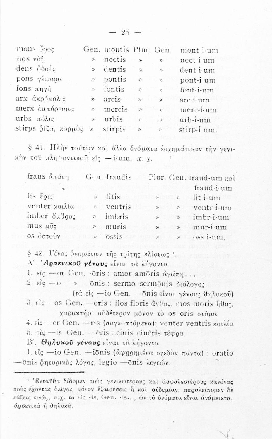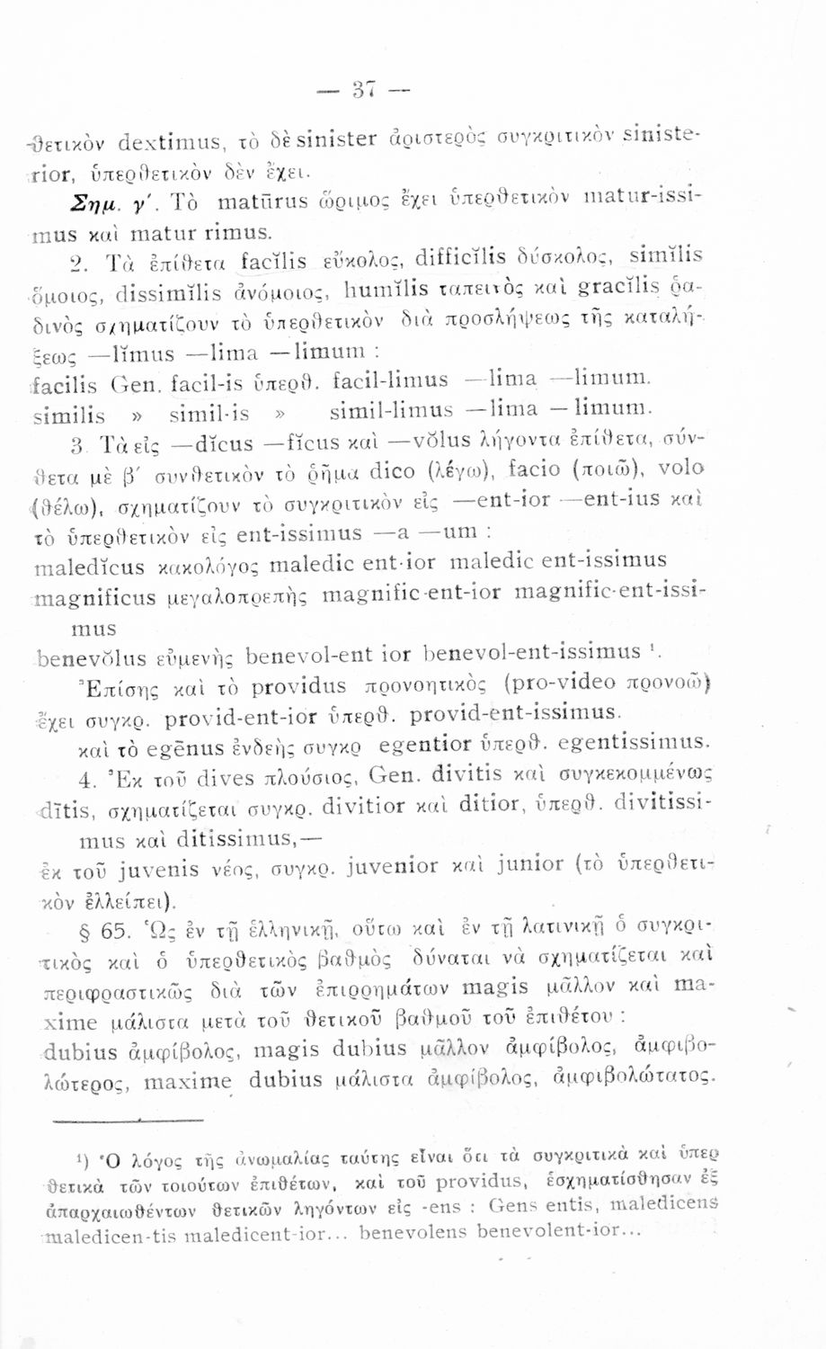 Παρουσίαση περιεχομένου: Σχολικό εγχειρίδιο Λατινικών Γυμνασίου που περιλαμβάνει γραμματική και συντακτικό και είναι χωρισμένο σε φθογγολογικό, τυπολογικό και ετυμολογικό μέρος. Περιέχει και μετρικό παράρτημα. Ο συγγραφέας ήταν καθηγητής της Λατινικής Φιλολογίας στο πανεπιστήμιο.