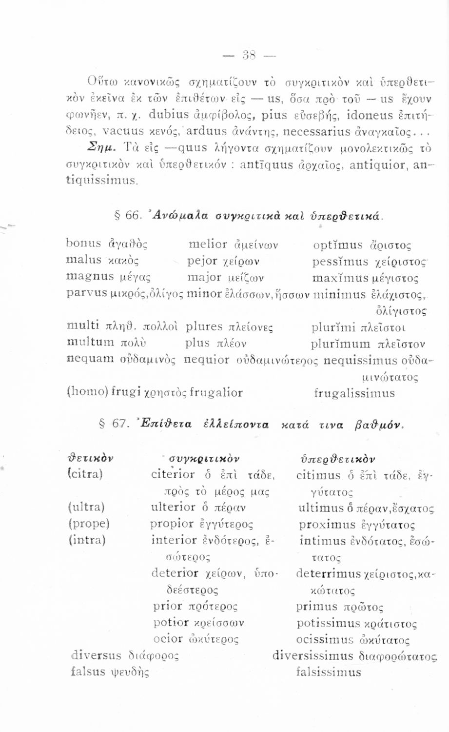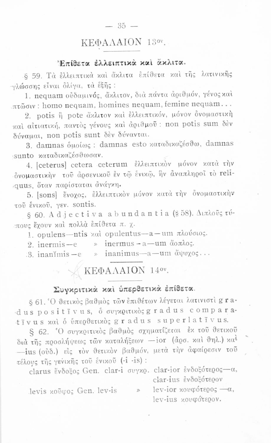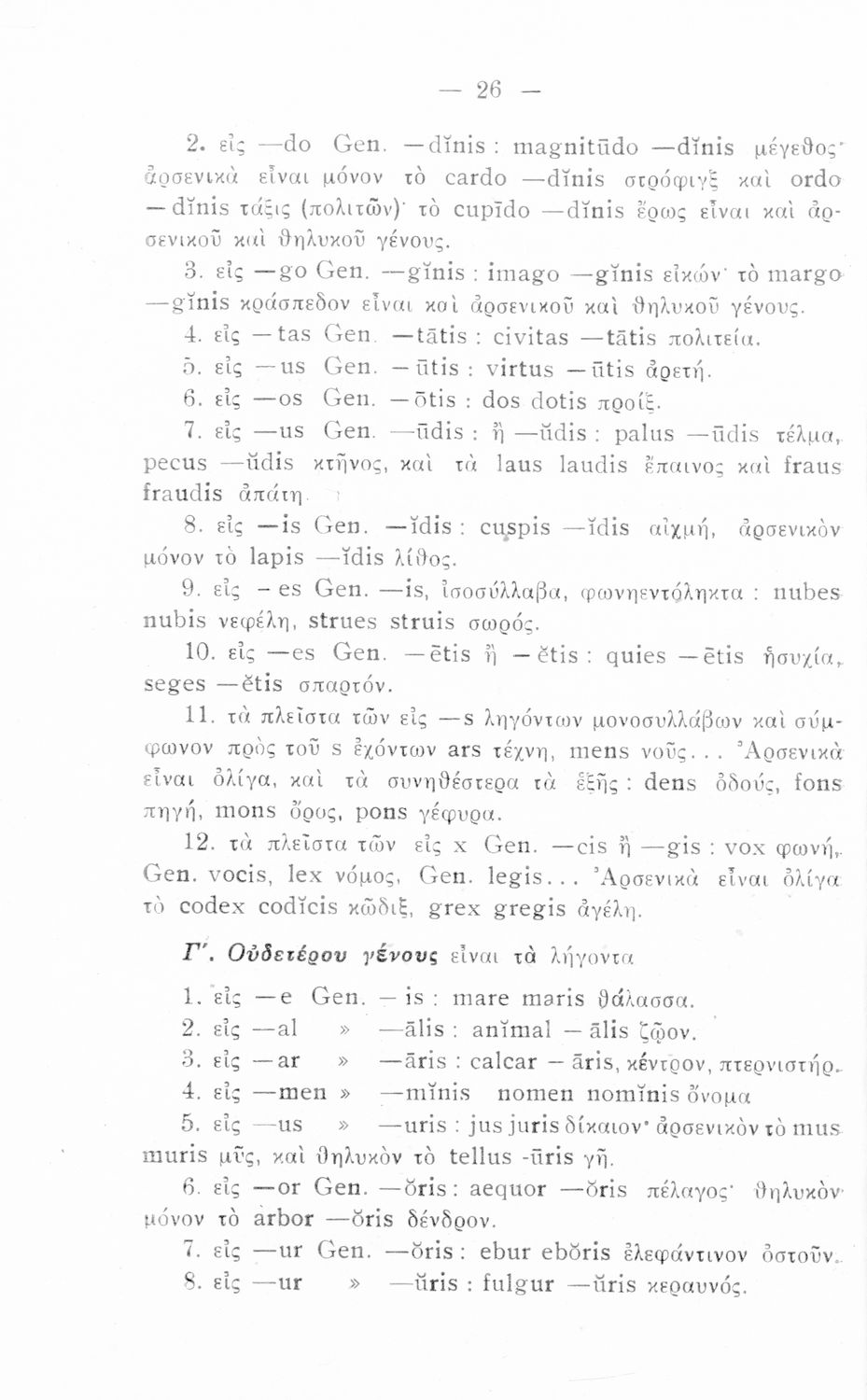 Σχολικό εγχειρίδιο Λατινικών Α΄, Β΄, Γ' Γυμνασίου που περιλαμβάνει γραμματική και συντακτικό και είναι χωρισμένο σε φθογγολογικό, τυπολογικό και ετυμολογικό μέρος.