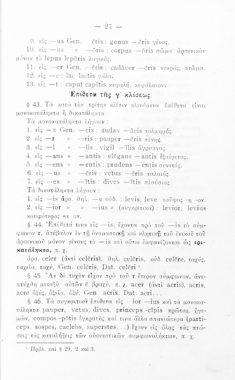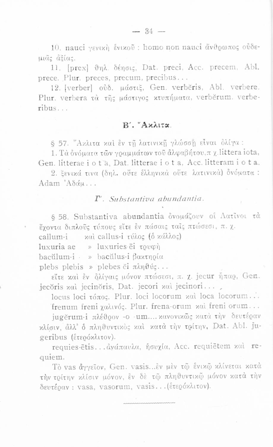 Σχολικό εγχειρίδιο Λατινικών Γυμνασίου που περιλαμβάνει γραμματική και συντακτικό και είναι χωρισμένο σε φθογγολογικό, τυπολογικό και ετυμολογικό μέρος. Περιέχει και μετρικό παράρτημα. Ο συγγραφέας ήταν ...