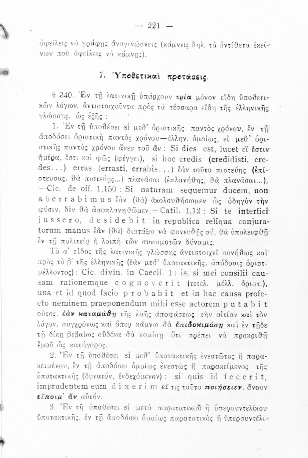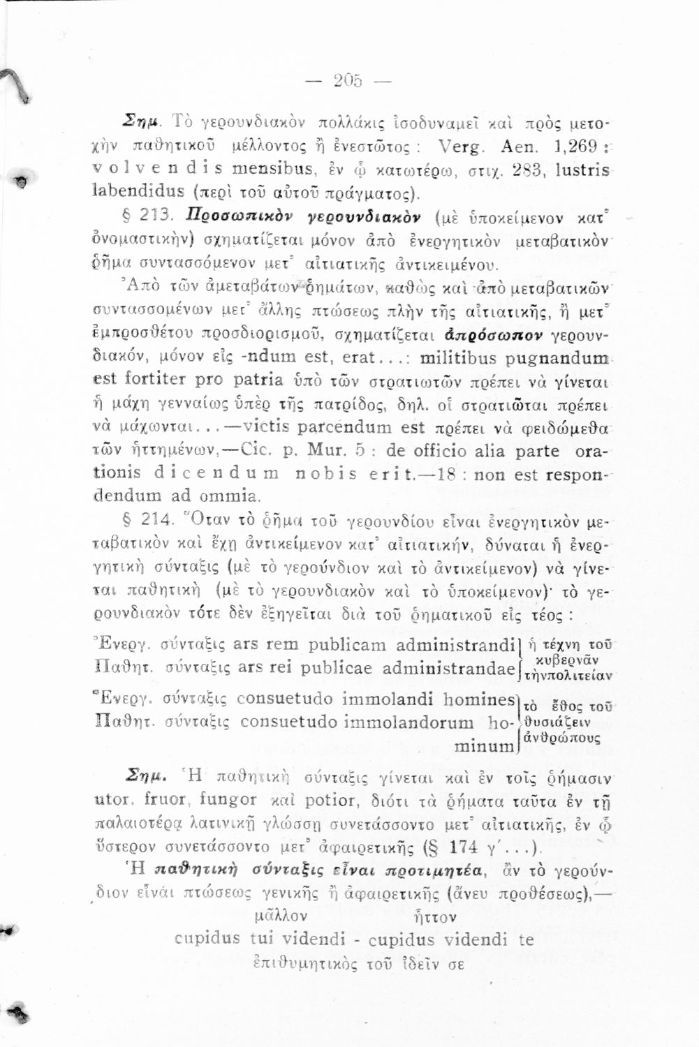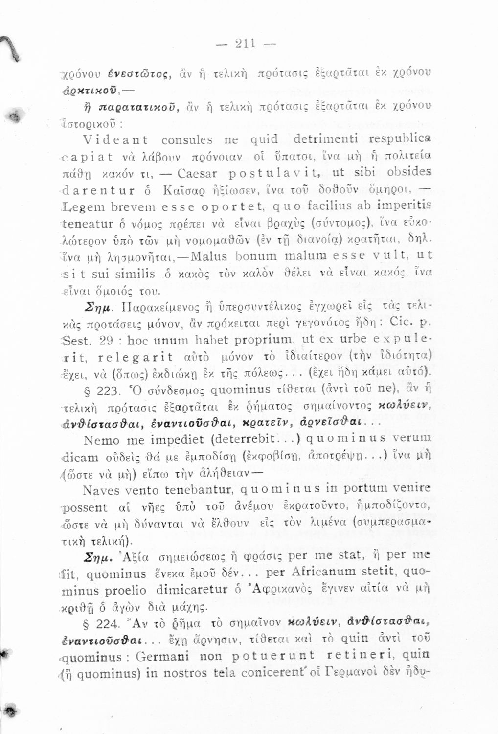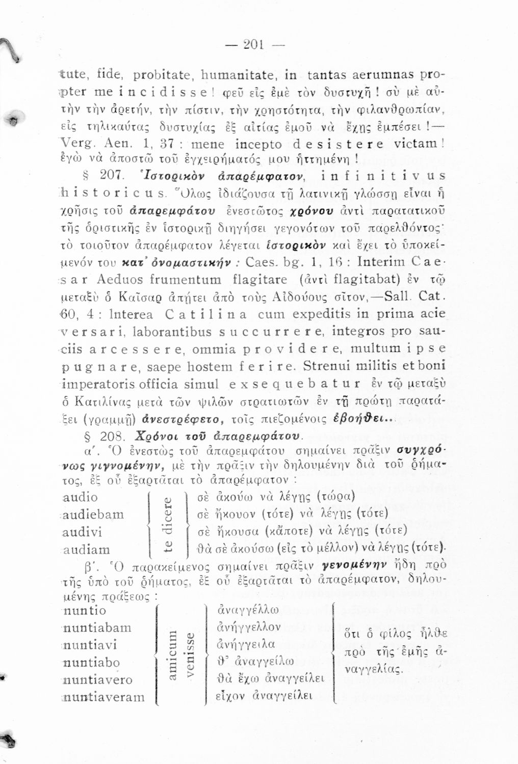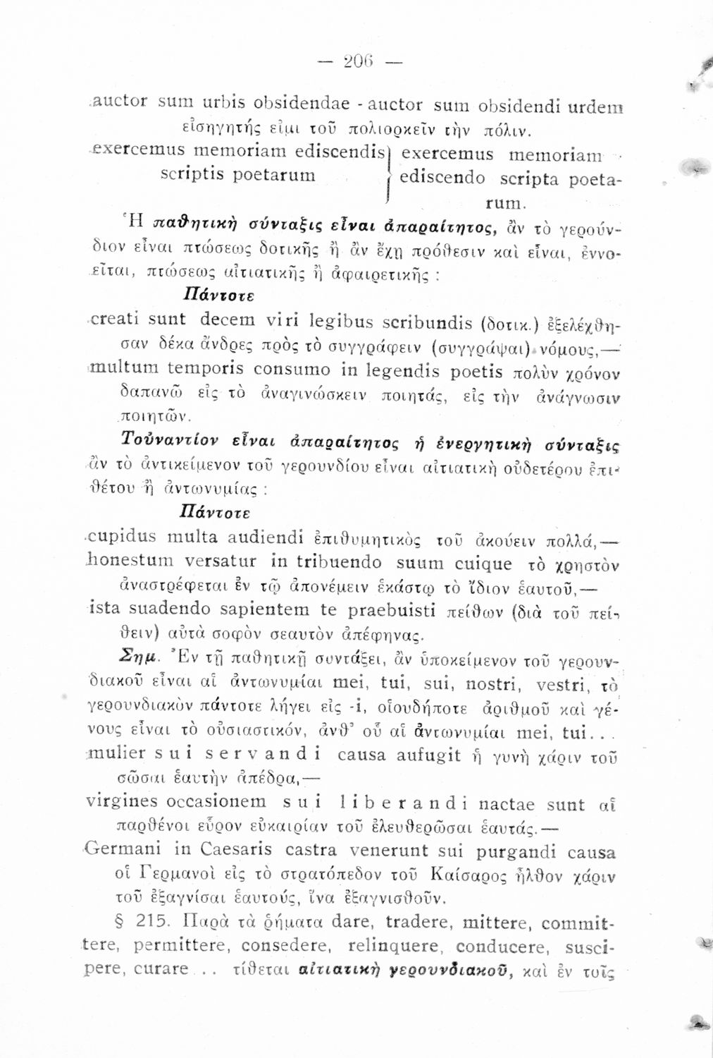 Σχολικό εγχειρίδιο Λατινικών Α΄, Β΄, Γ' Γυμνασίου που περιλαμβάνει γραμματική και συντακτικό και είναι χωρισμένο σε φθογγολογικό, τυπολογικό και ετυμολογικό μέρος.