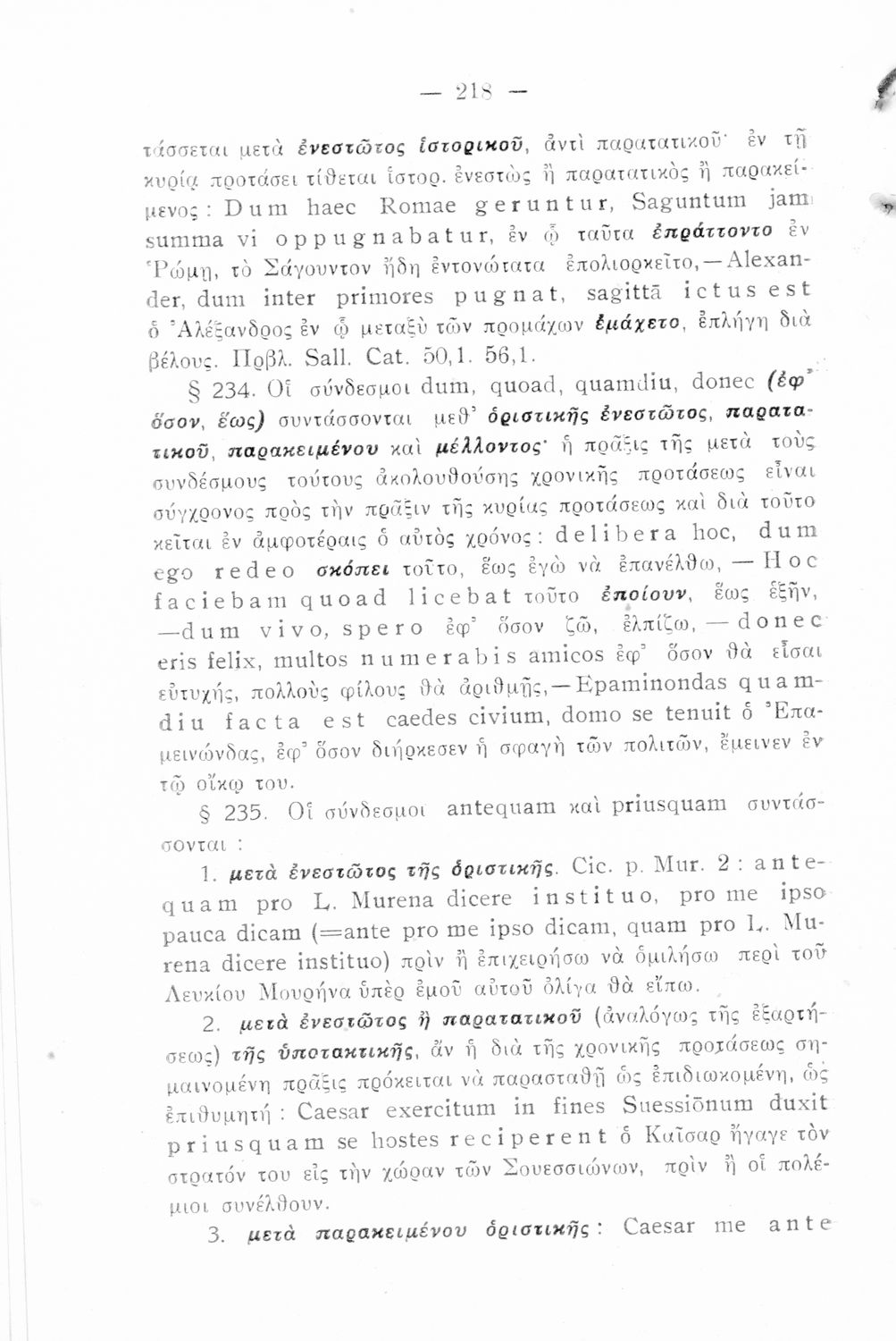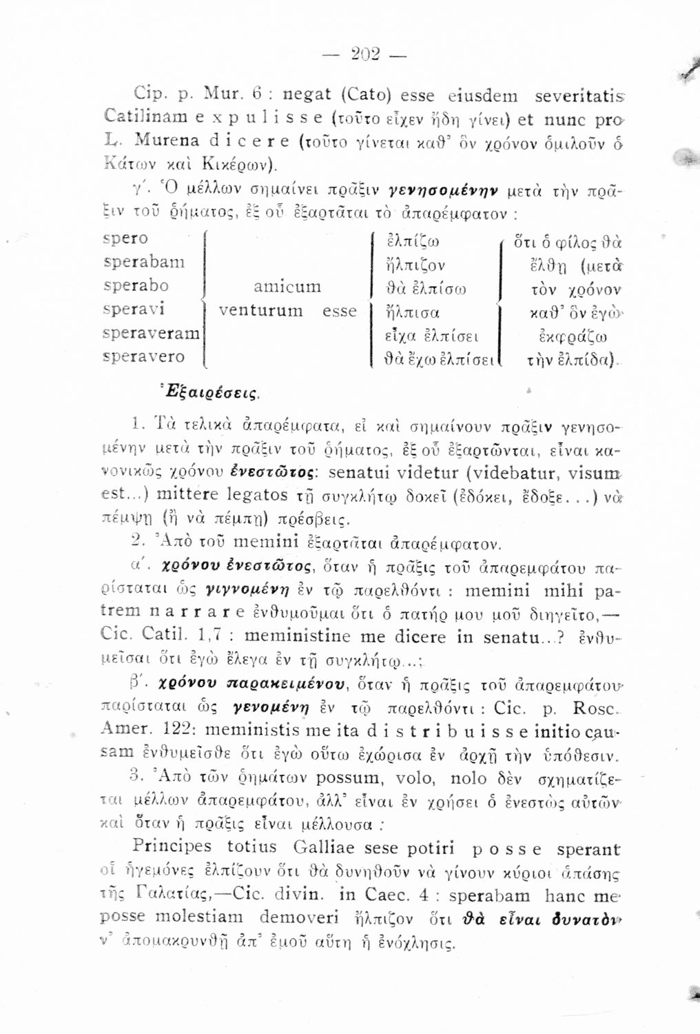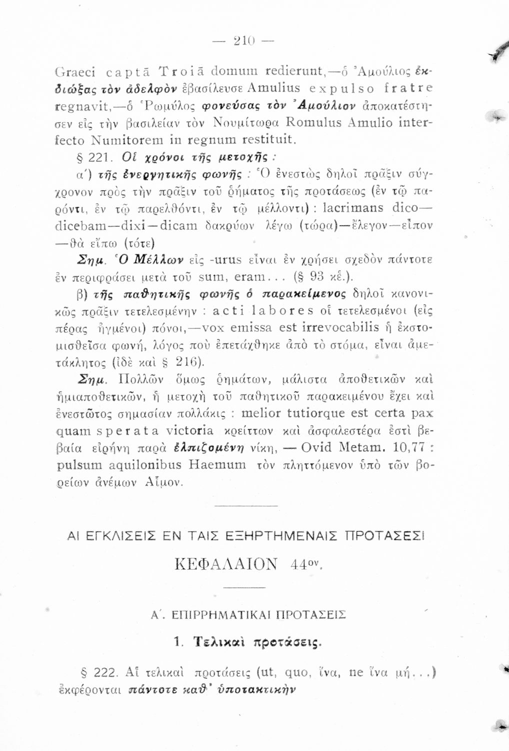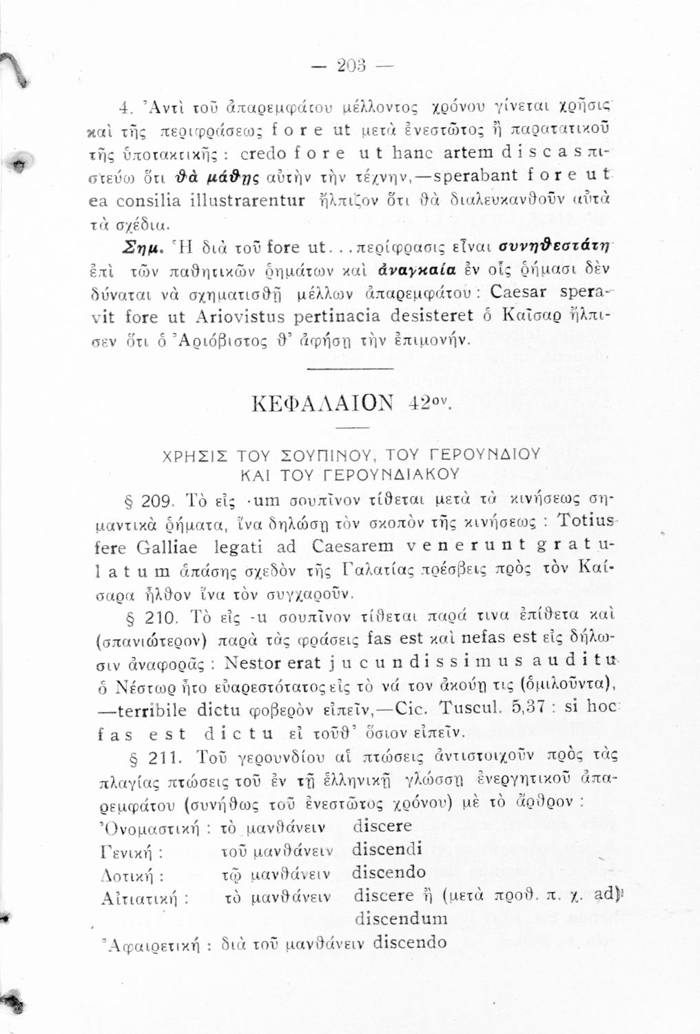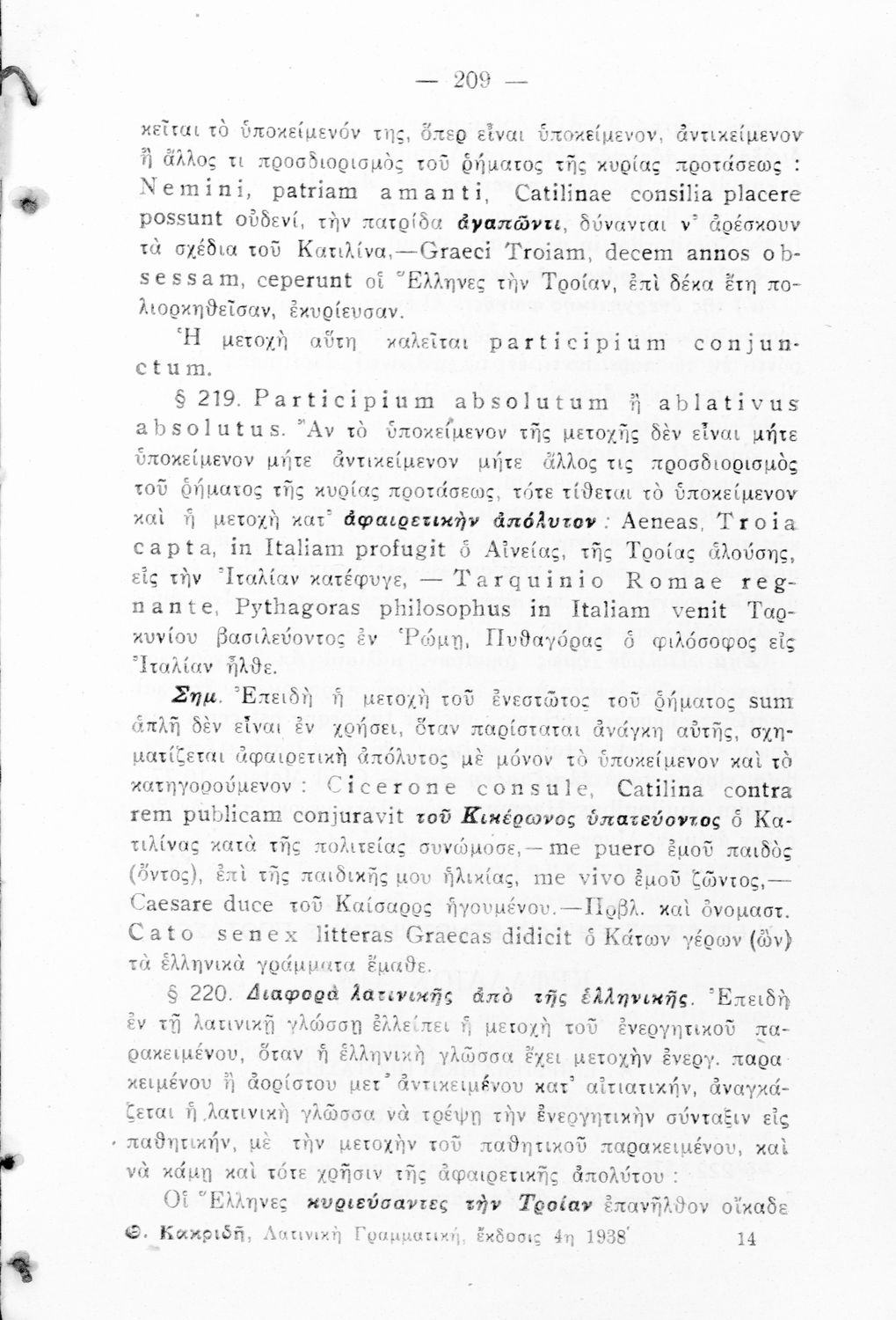 Σχολικό εγχειρίδιο Λατινικών Α΄, Β΄, Γ' Γυμνασίου που περιλαμβάνει γραμματική και συντακτικό και είναι χωρισμένο σε φθογγολογικό, τυπολογικό και ετυμολογικό μέρος.
