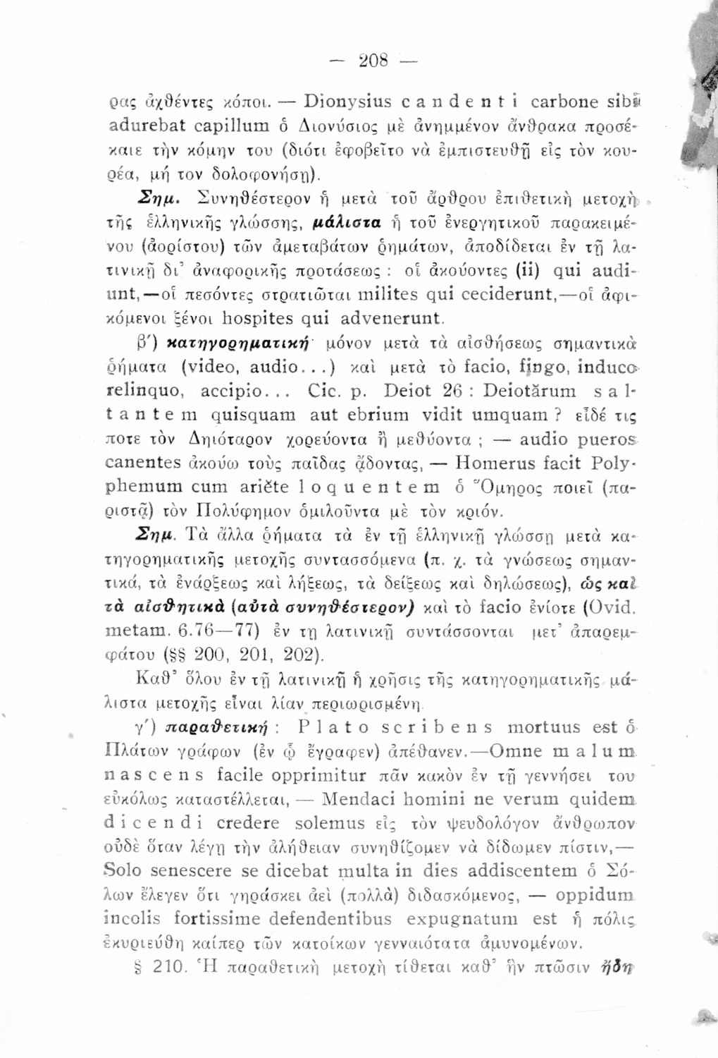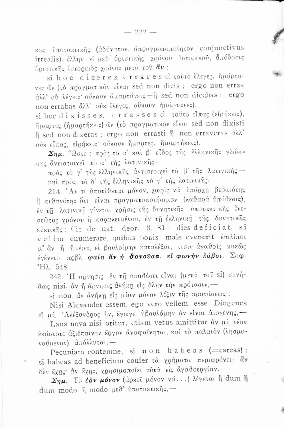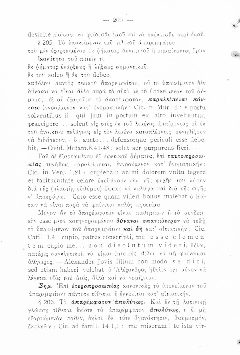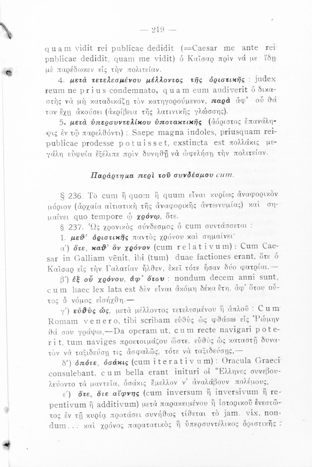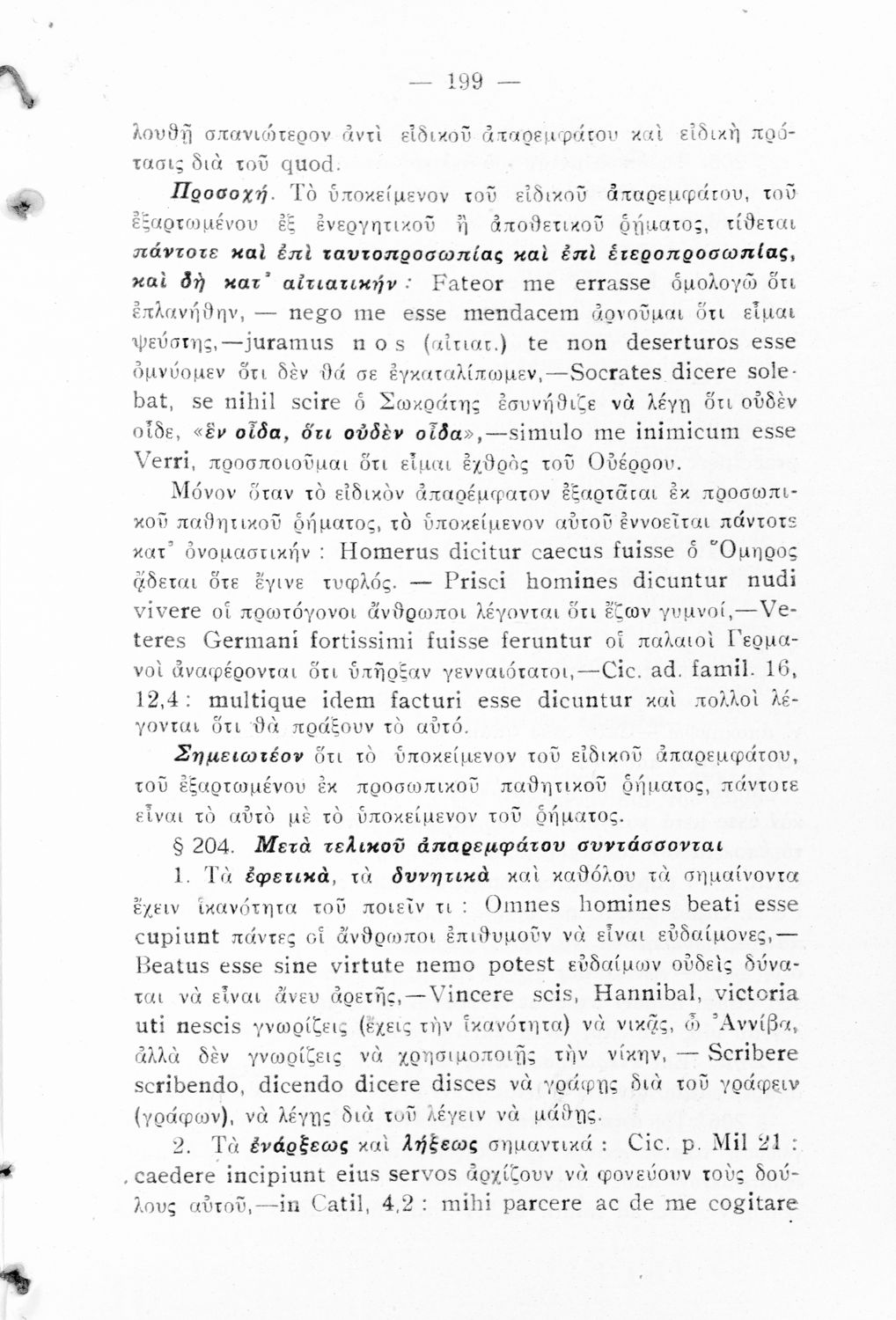 Σχολικό εγχειρίδιο Λατινικών Α΄, Β΄, Γ' Γυμνασίου που περιλαμβάνει γραμματική και συντακτικό και είναι χωρισμένο σε φθογγολογικό, τυπολογικό και ετυμολογικό μέρος.