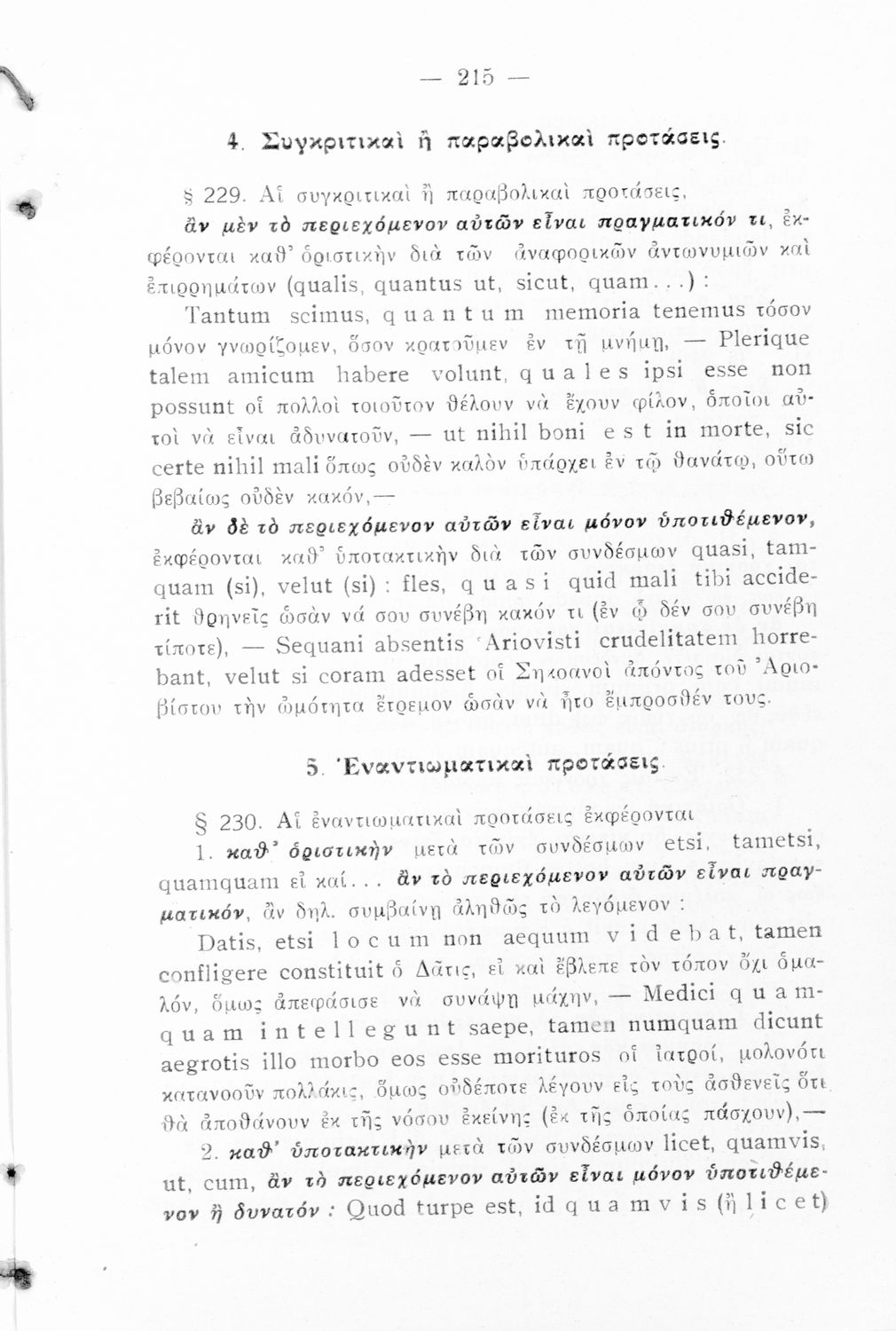 Παρουσίαση περιεχομένου: Σχολικό εγχειρίδιο Λατινικών Γυμνασίου που περιλαμβάνει γραμματική και συντακτικό και είναι χωρισμένο σε φθογγολογικό, τυπολογικό και ετυμολογικό μέρος. Περιέχει και μετρικό παράρτημα. Ο συγγραφέας ήταν καθηγητής της Λατινικής Φιλολογίας στο πανεπιστήμιο.