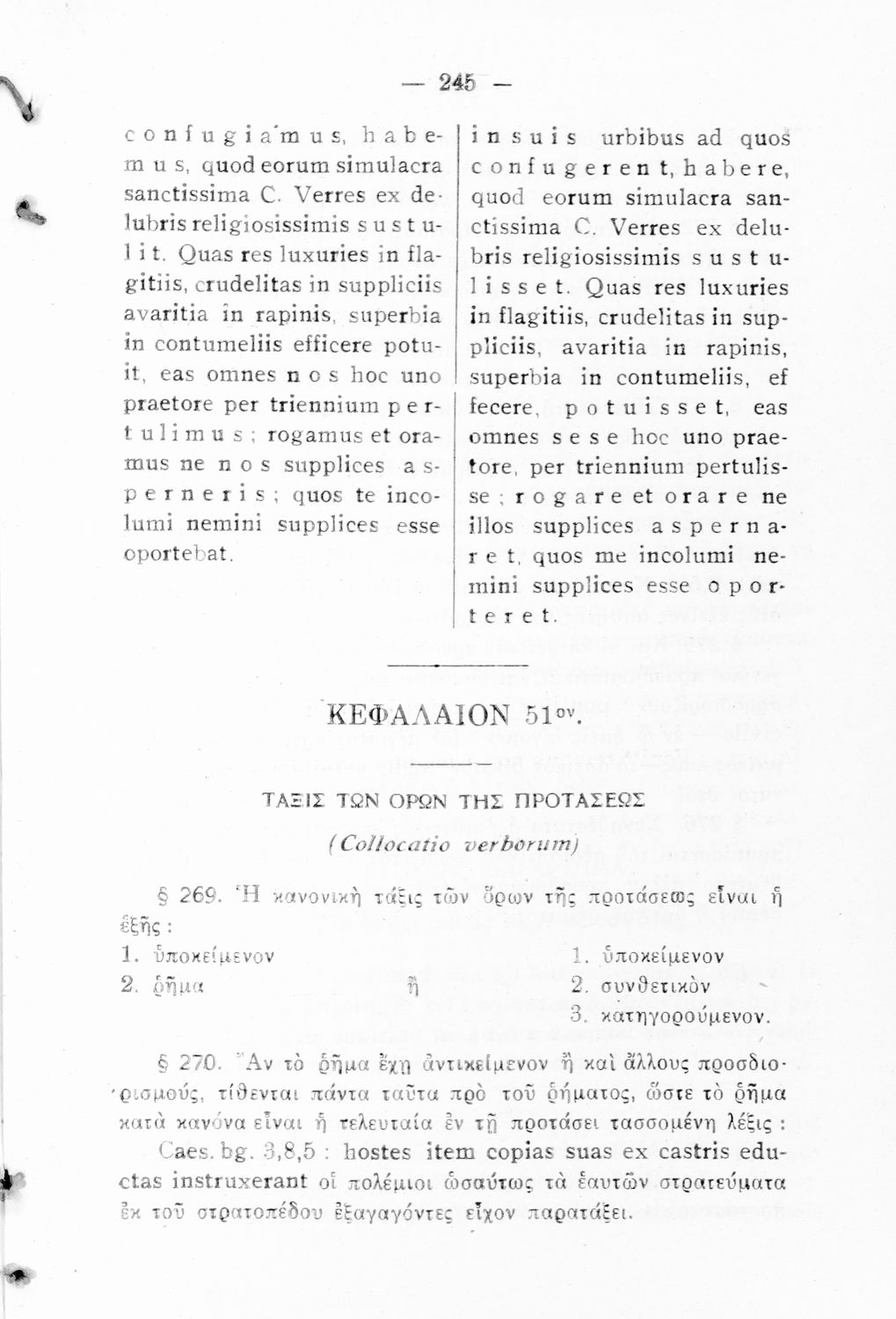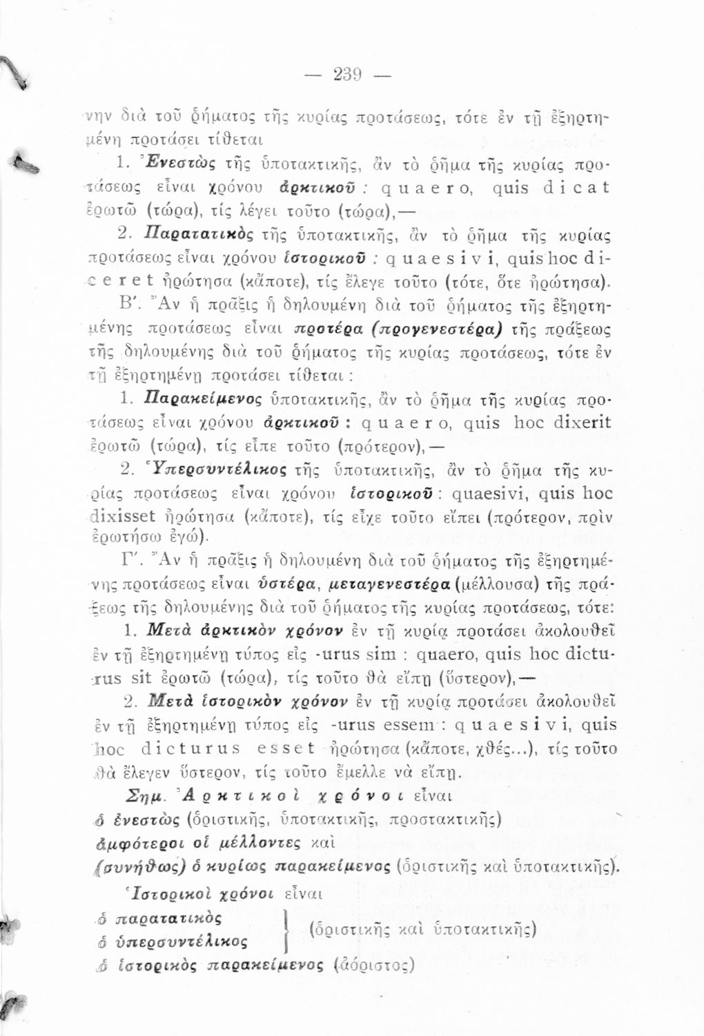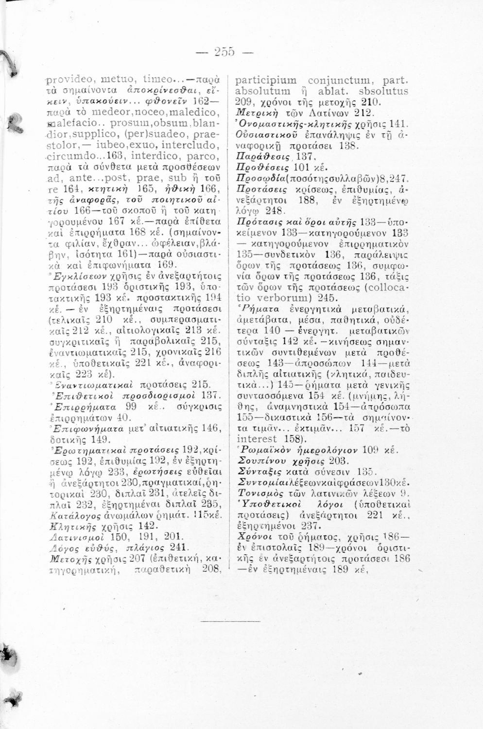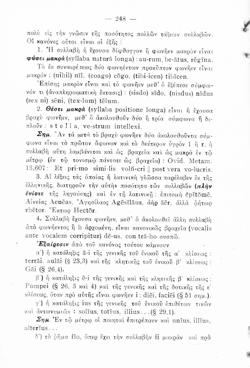 Σχολικό εγχειρίδιο Λατινικών Α΄, Β΄, Γ' Γυμνασίου που περιλαμβάνει γραμματική και συντακτικό και είναι χωρισμένο σε φθογγολογικό, τυπολογικό και ετυμολογικό μέρος.