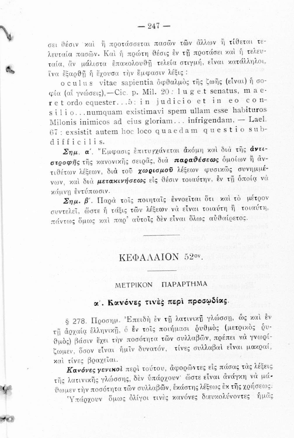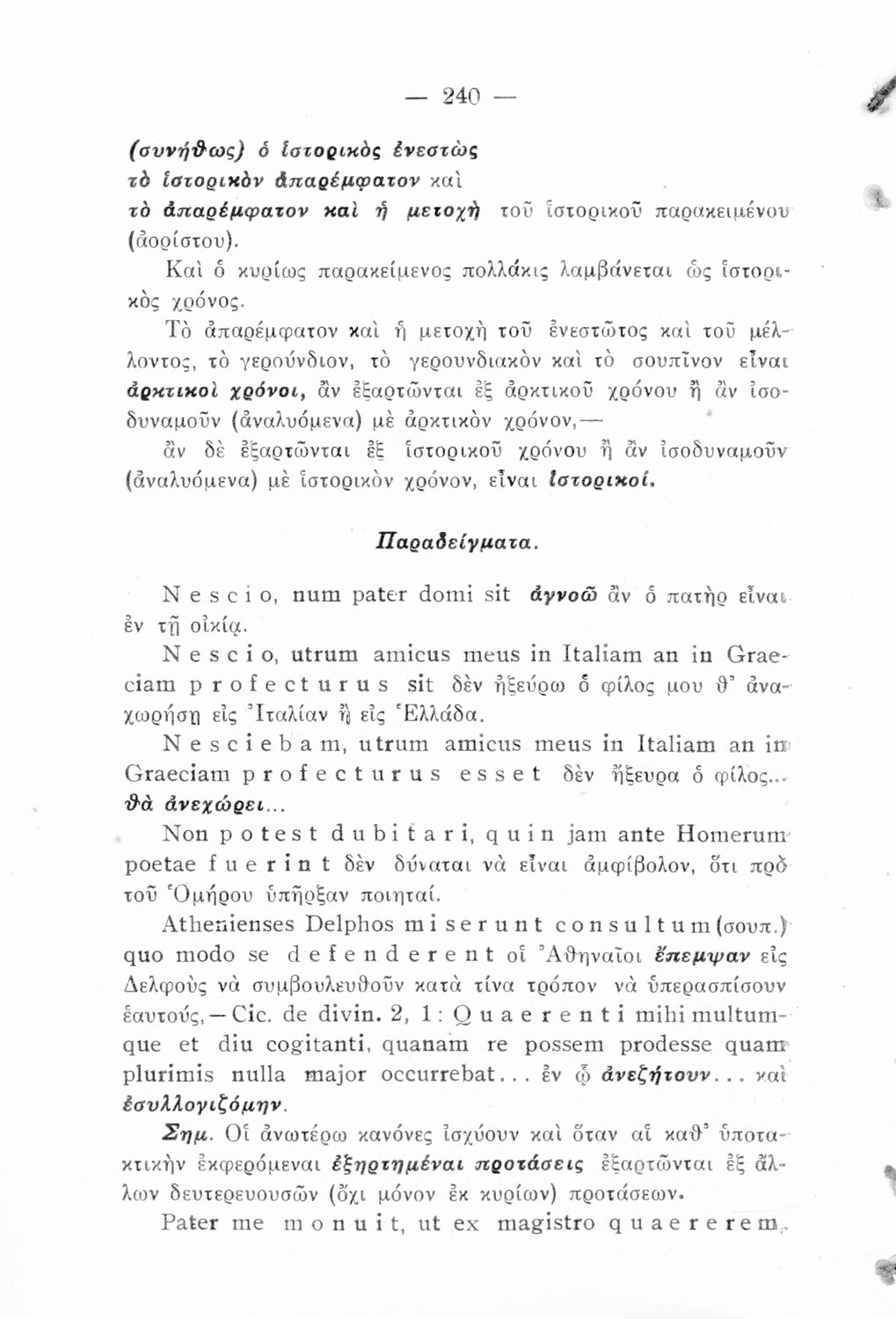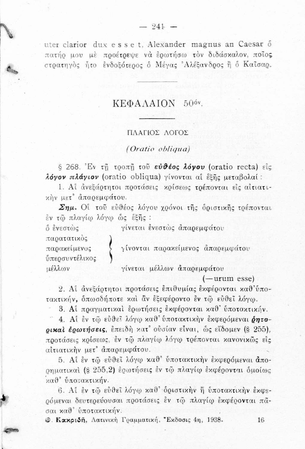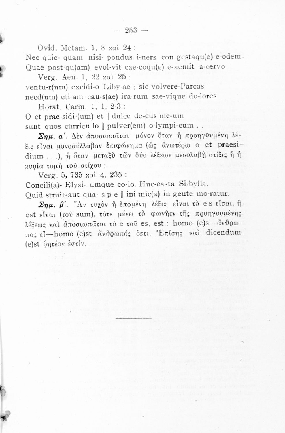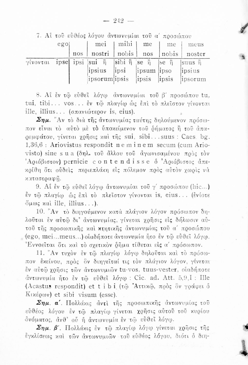 Σχολικό εγχειρίδιο Λατινικών Α΄, Β΄, Γ' Γυμνασίου που περιλαμβάνει γραμματική και συντακτικό και είναι χωρισμένο σε φθογγολογικό, τυπολογικό και ετυμολογικό μέρος.