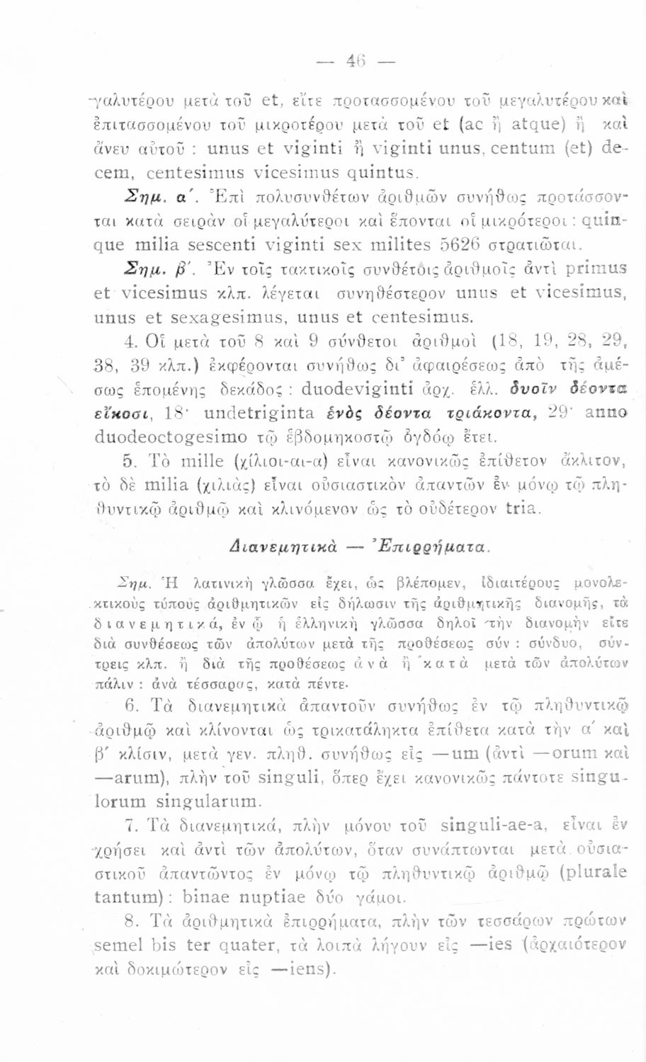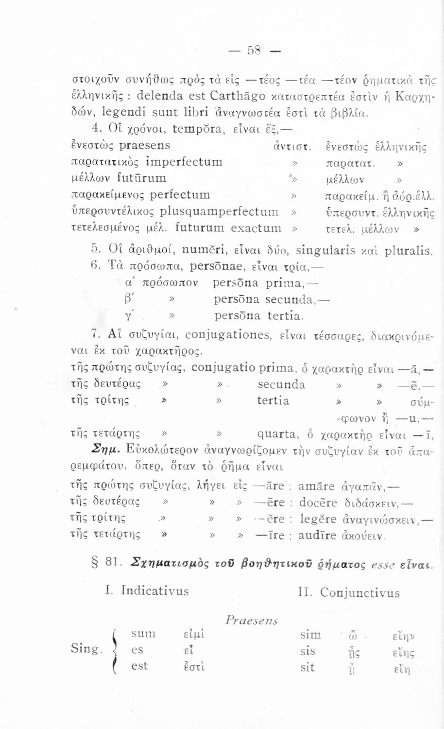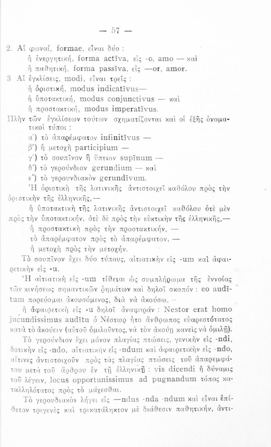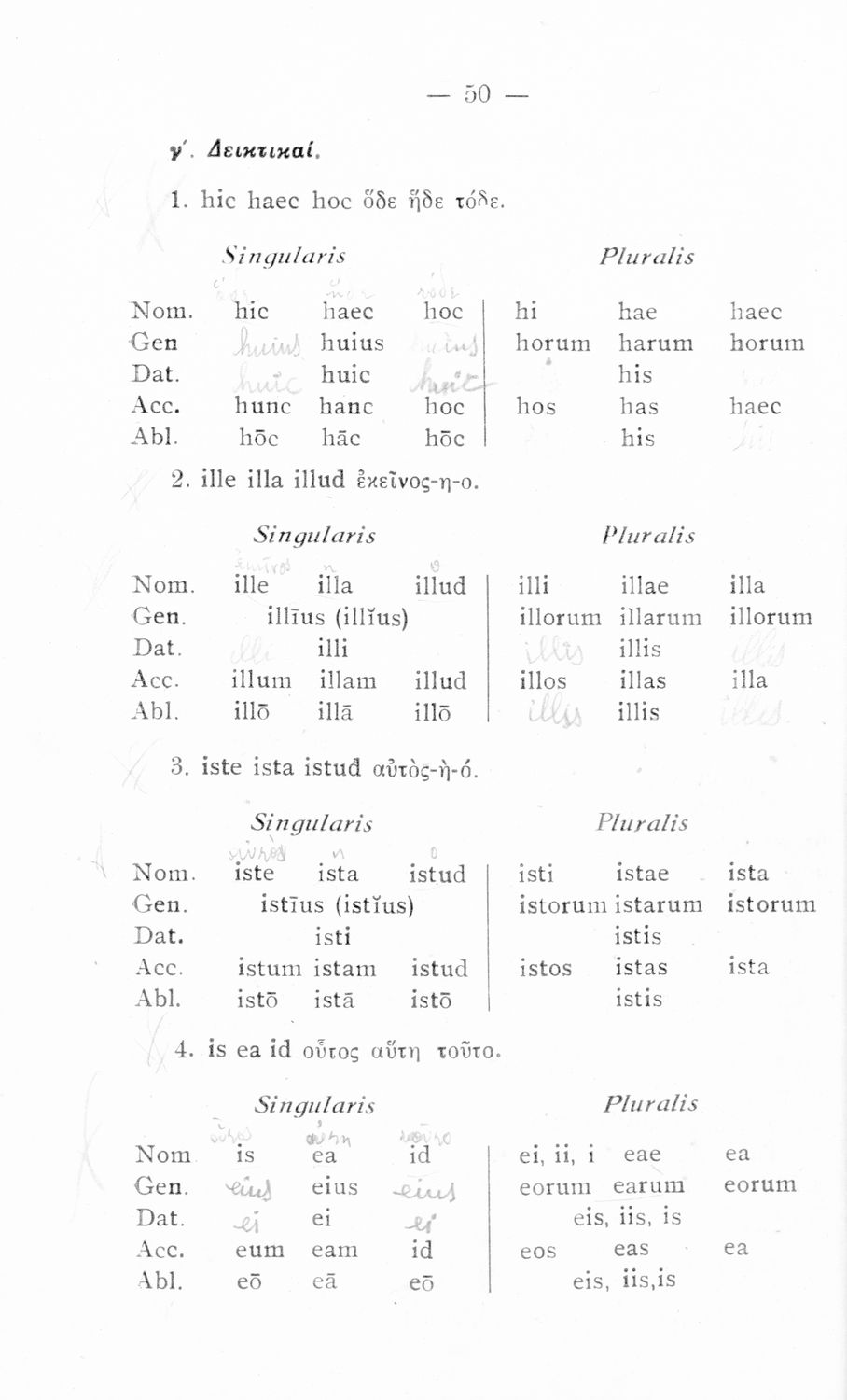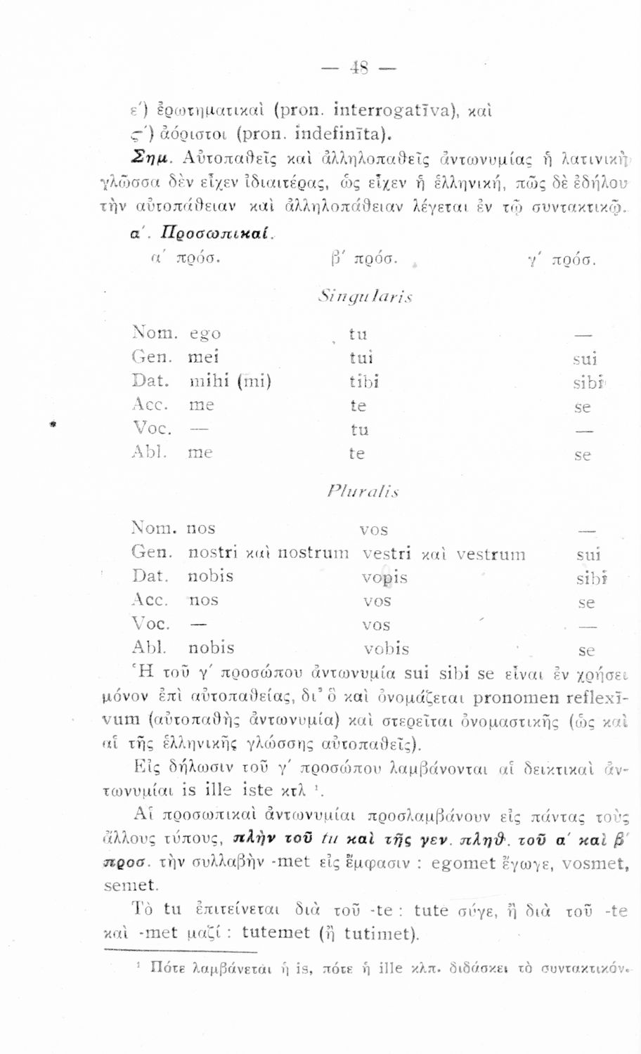 Σχολικό εγχειρίδιο Λατινικών Α΄, Β΄, Γ' Γυμνασίου που περιλαμβάνει γραμματική και συντακτικό και είναι χωρισμένο σε φθογγολογικό, τυπολογικό και ετυμολογικό μέρος.
