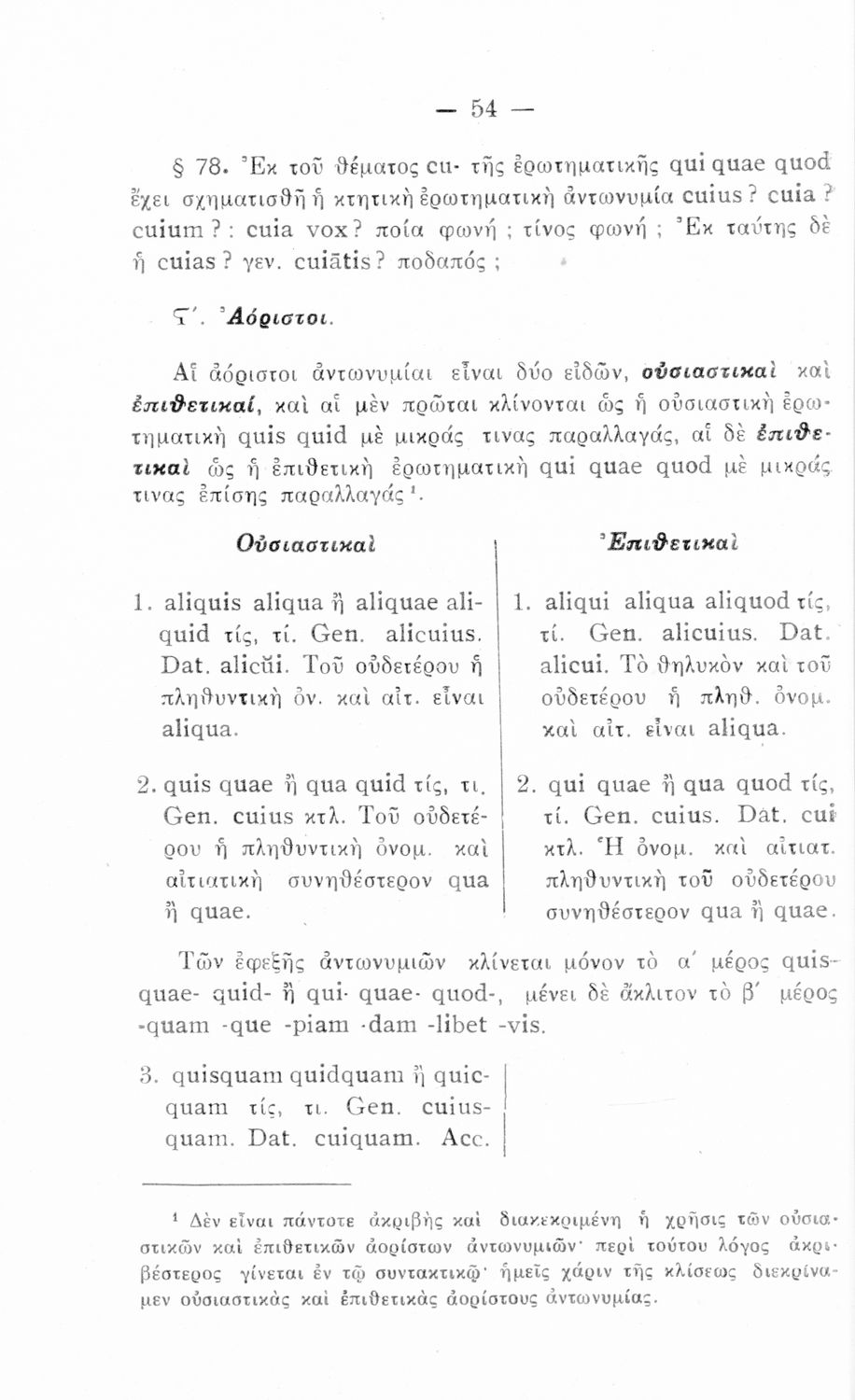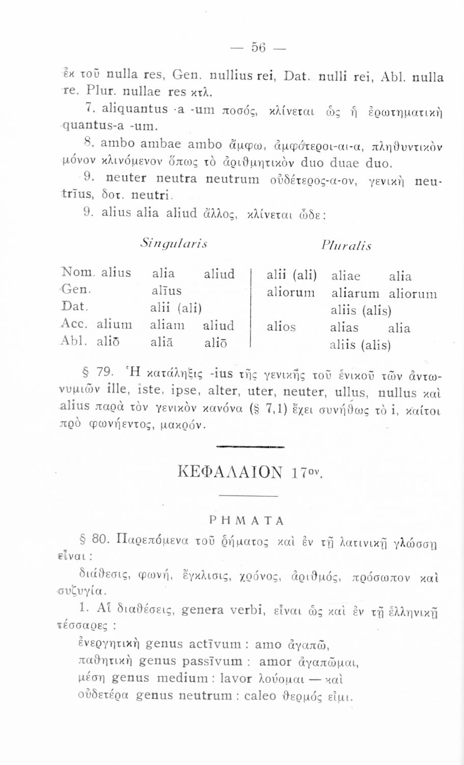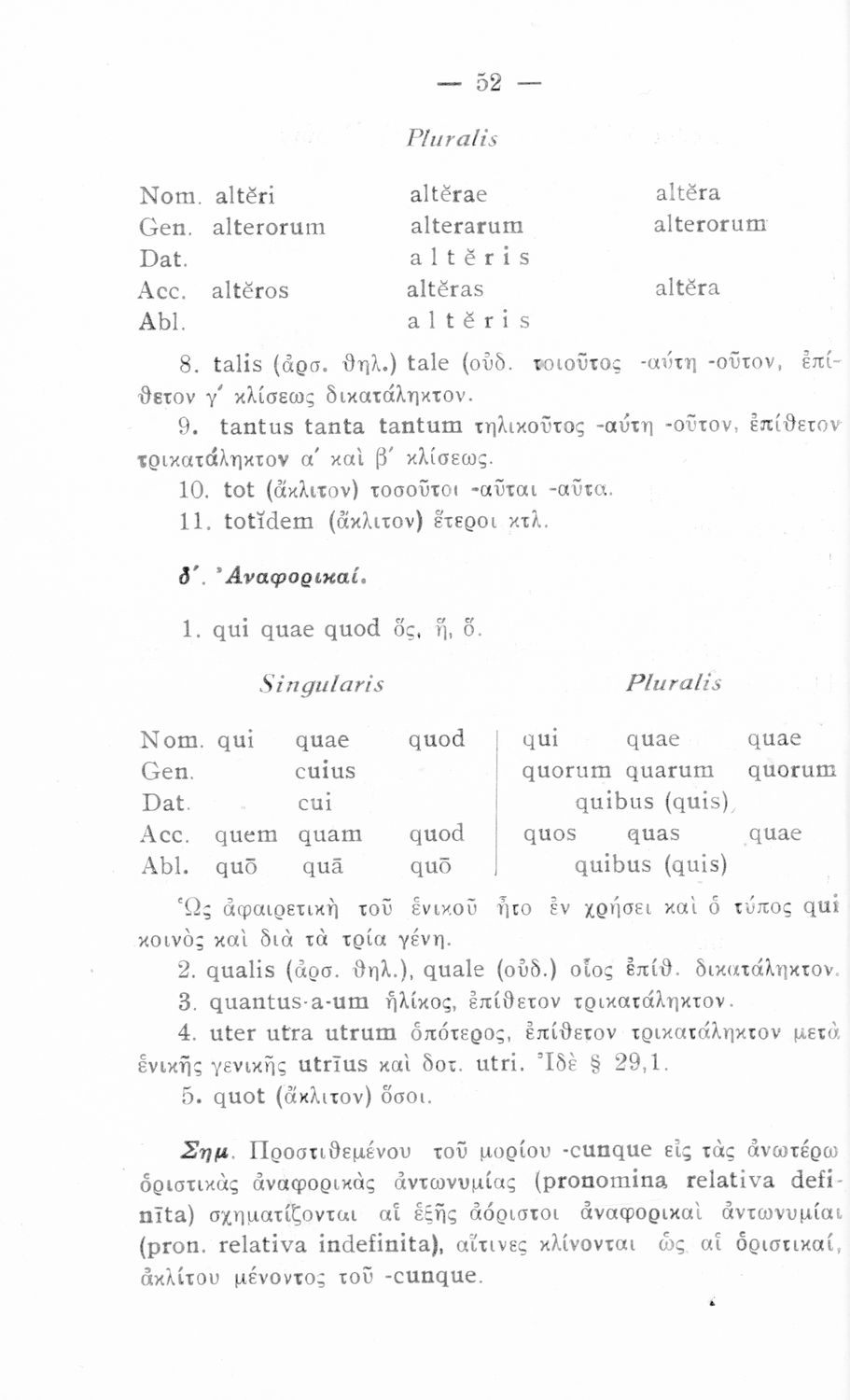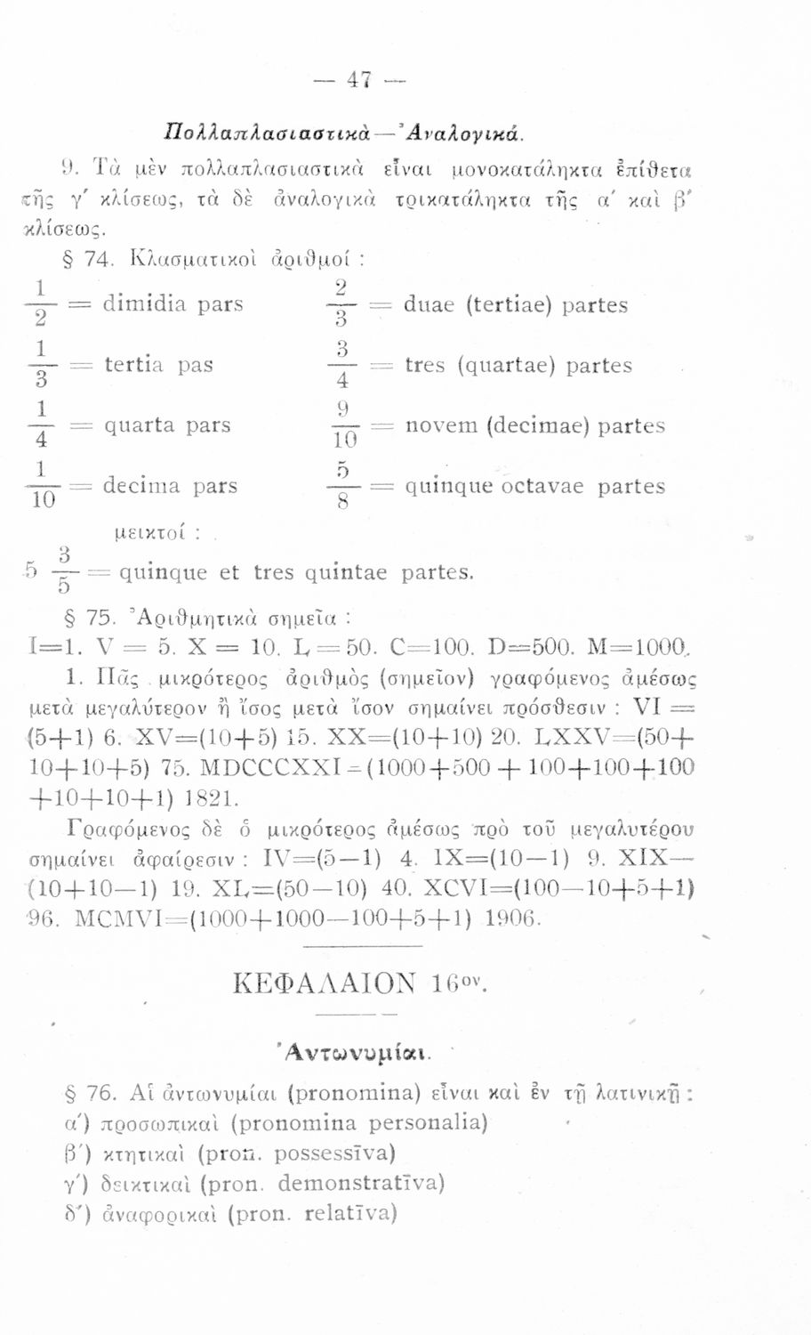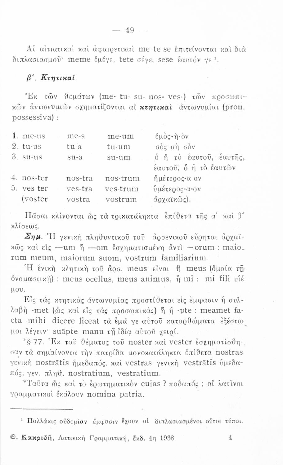 Σχολικό εγχειρίδιο Λατινικών Α΄, Β΄, Γ' Γυμνασίου που περιλαμβάνει γραμματική και συντακτικό και είναι χωρισμένο σε φθογγολογικό, τυπολογικό και ετυμολογικό μέρος.