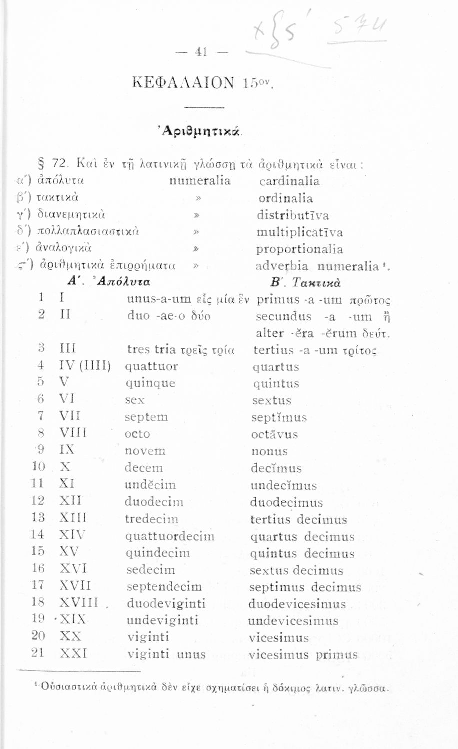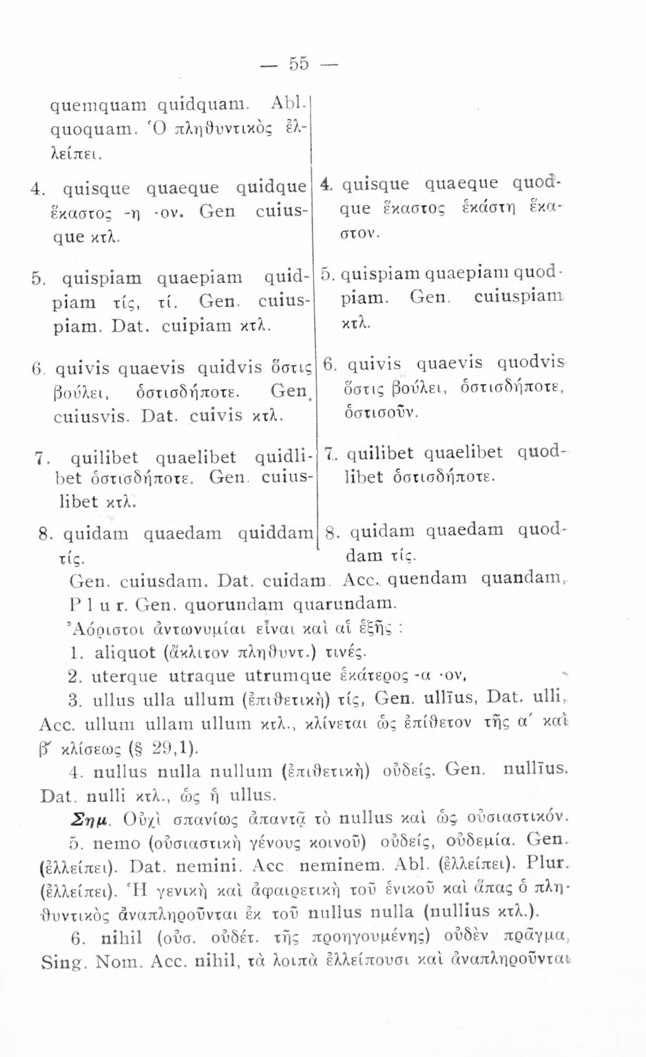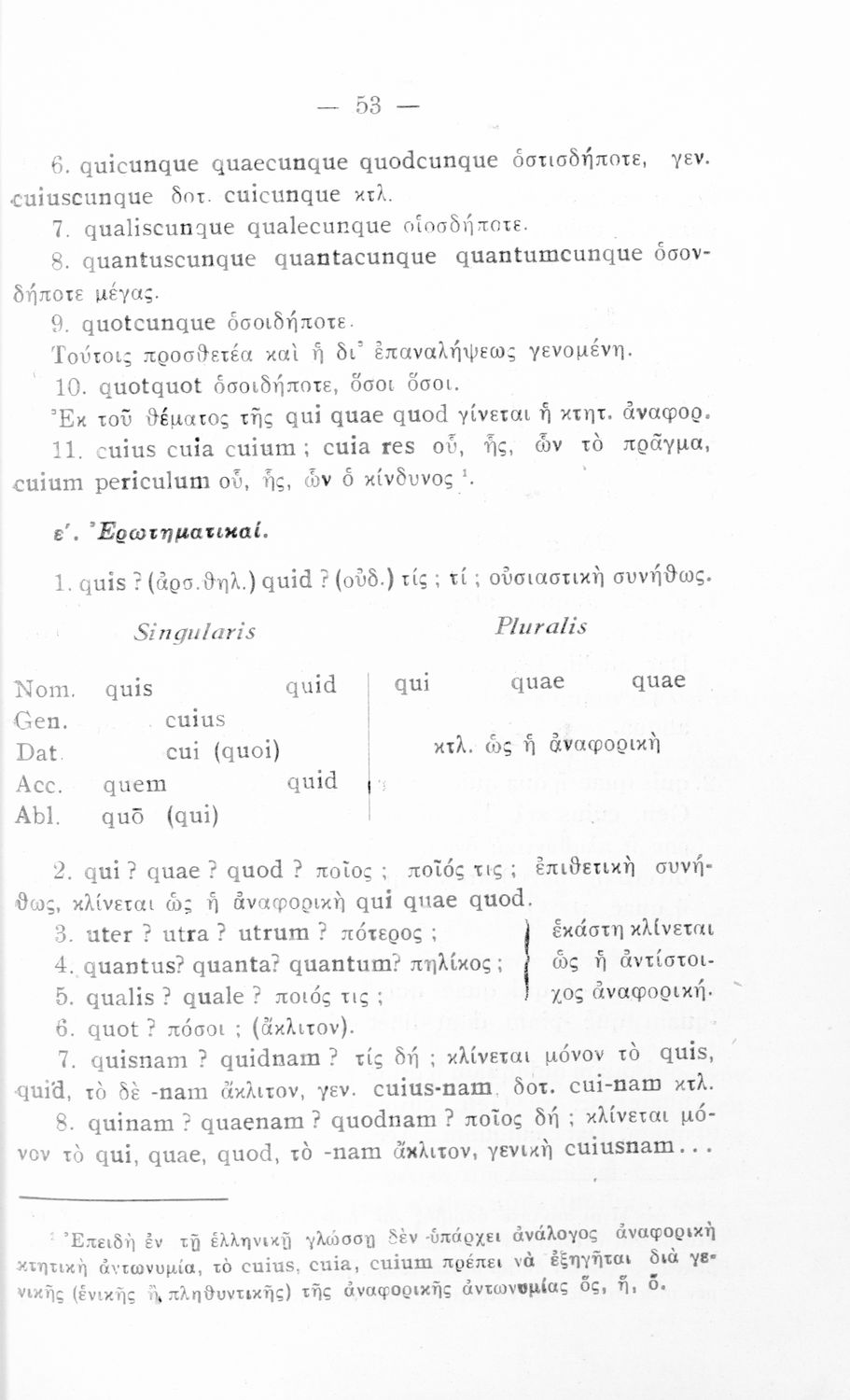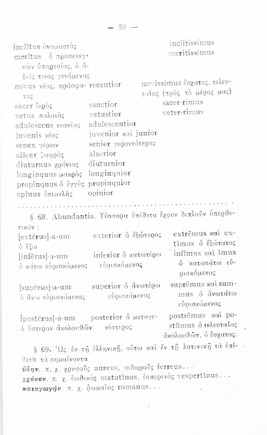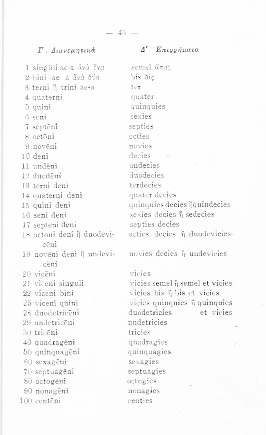 Σχολικό εγχειρίδιο Λατινικών Α΄, Β΄, Γ' Γυμνασίου που περιλαμβάνει γραμματική και συντακτικό και είναι χωρισμένο σε φθογγολογικό, τυπολογικό και ετυμολογικό μέρος.