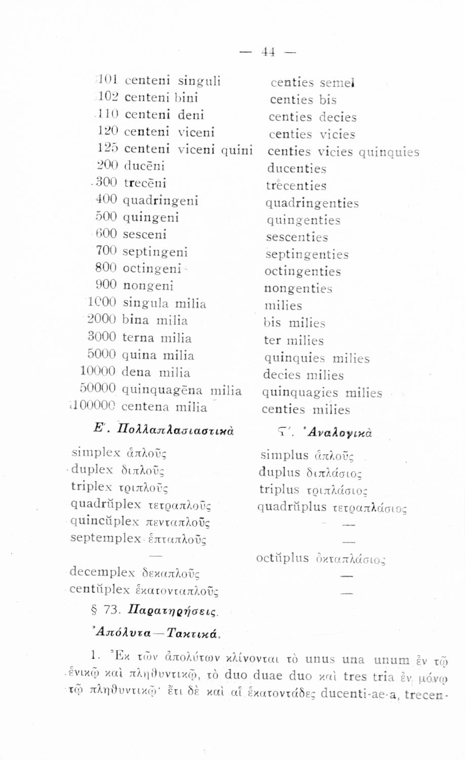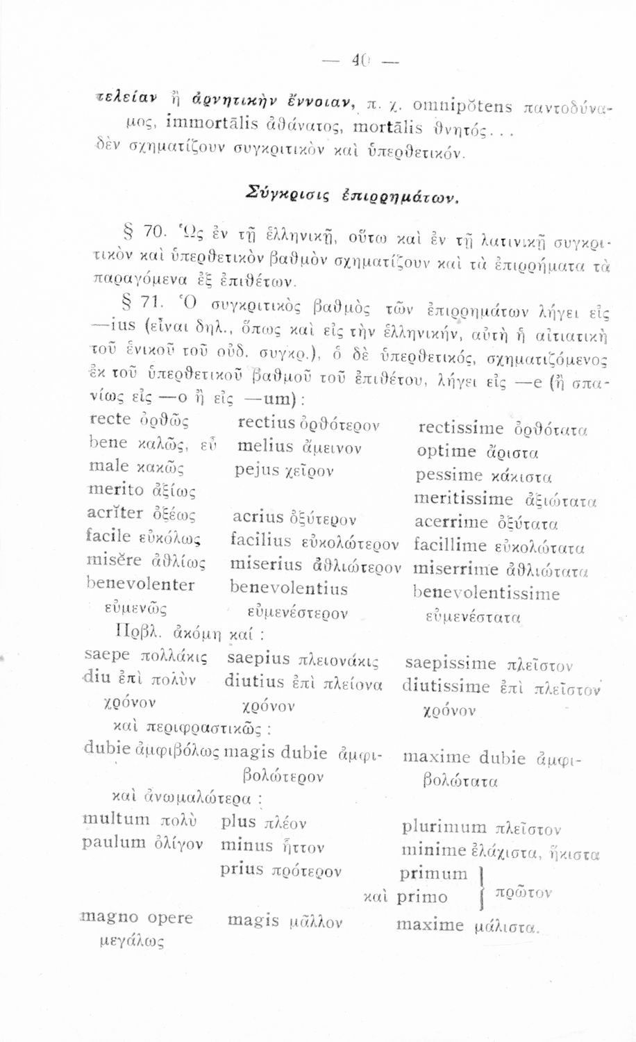 Σχολικό εγχειρίδιο Αρχαίων Ελληνικών για τα Ελληνικά Σχολεία, Παρθεναγωγεία και Γυμνάσια που περιέχει τους κανόνες γραμματικής και είναι χωρισμένο σε φθογγολογικό, τυπολογικό και ετυμολογικό μέρος.