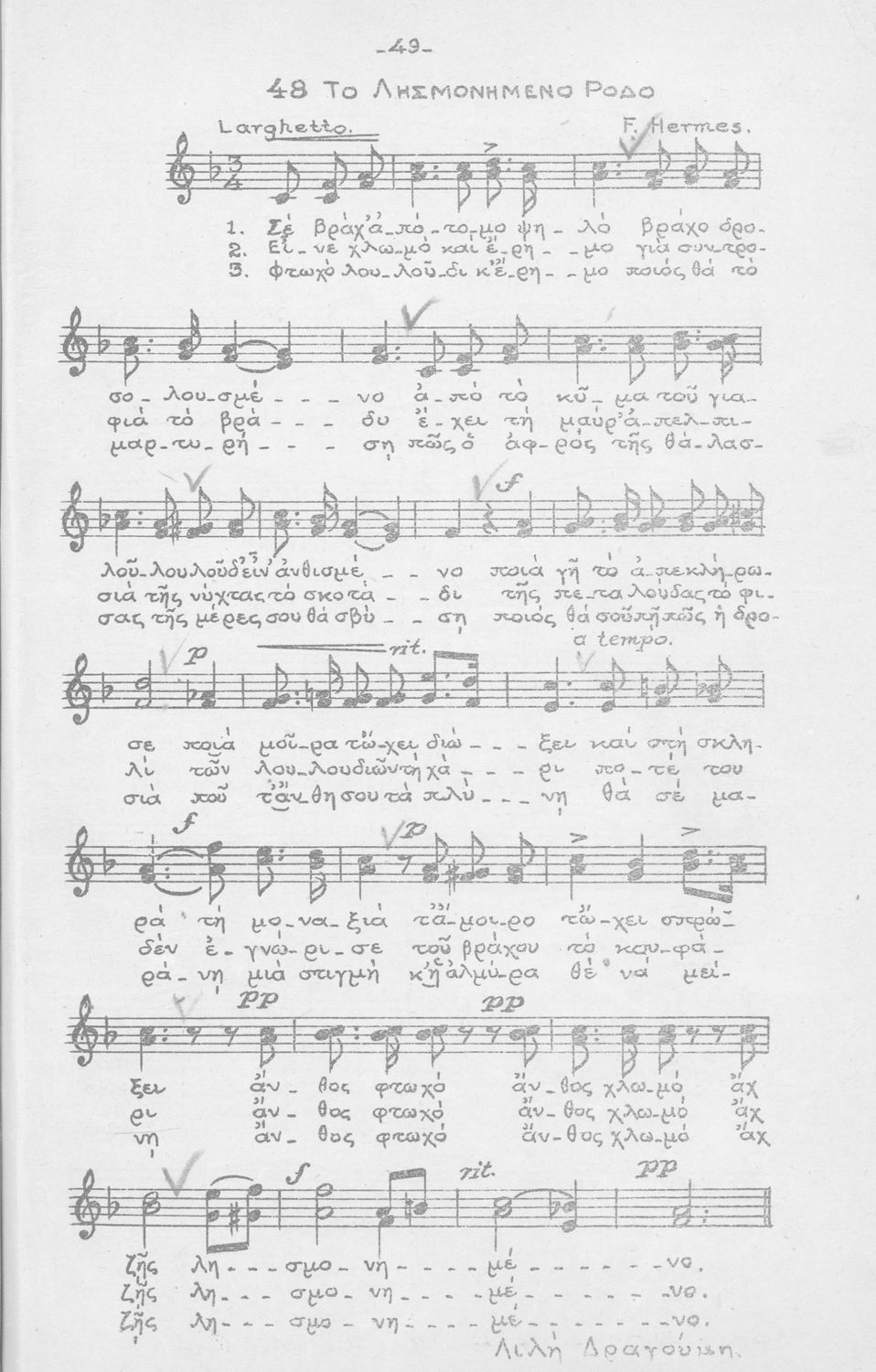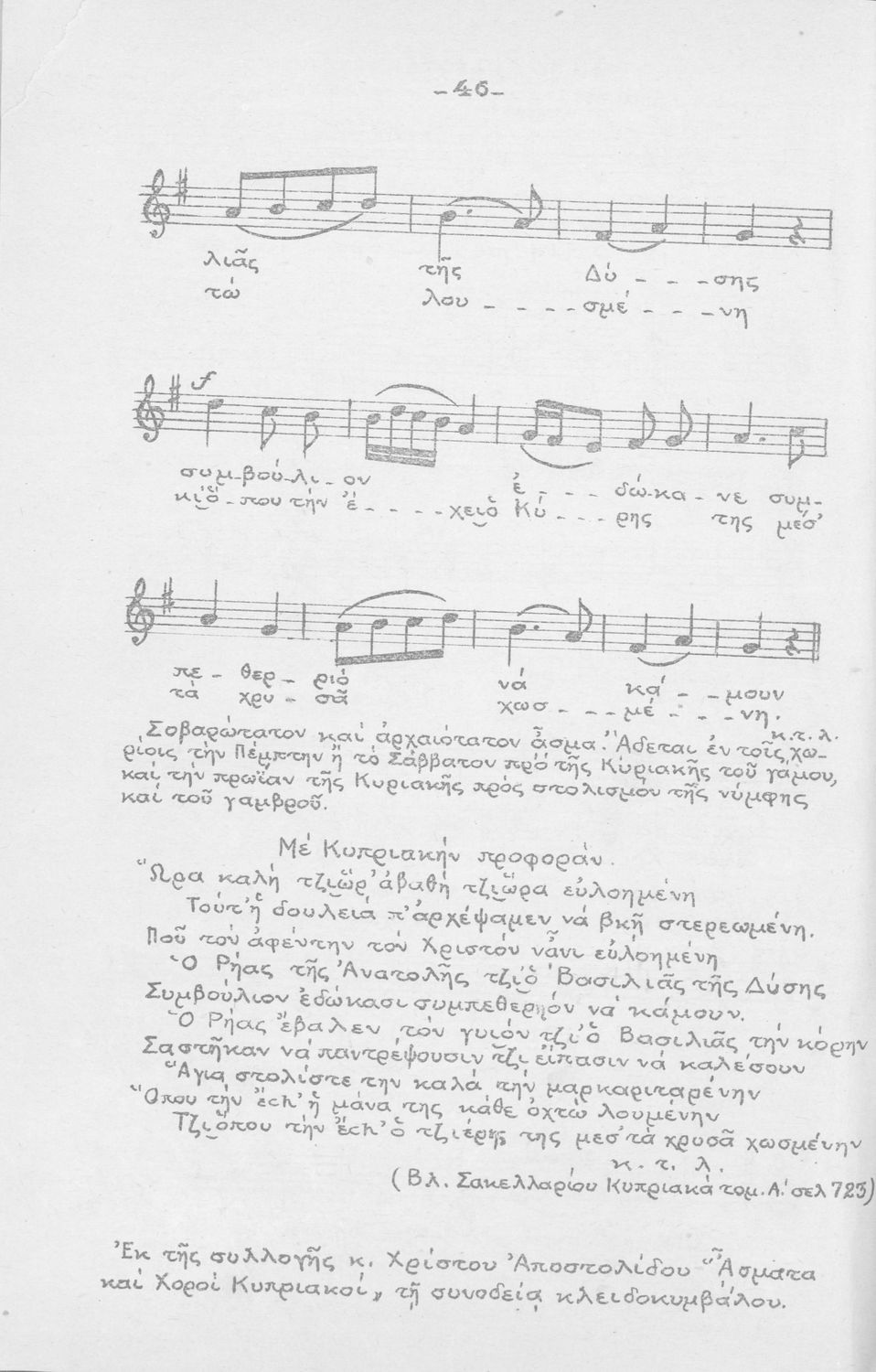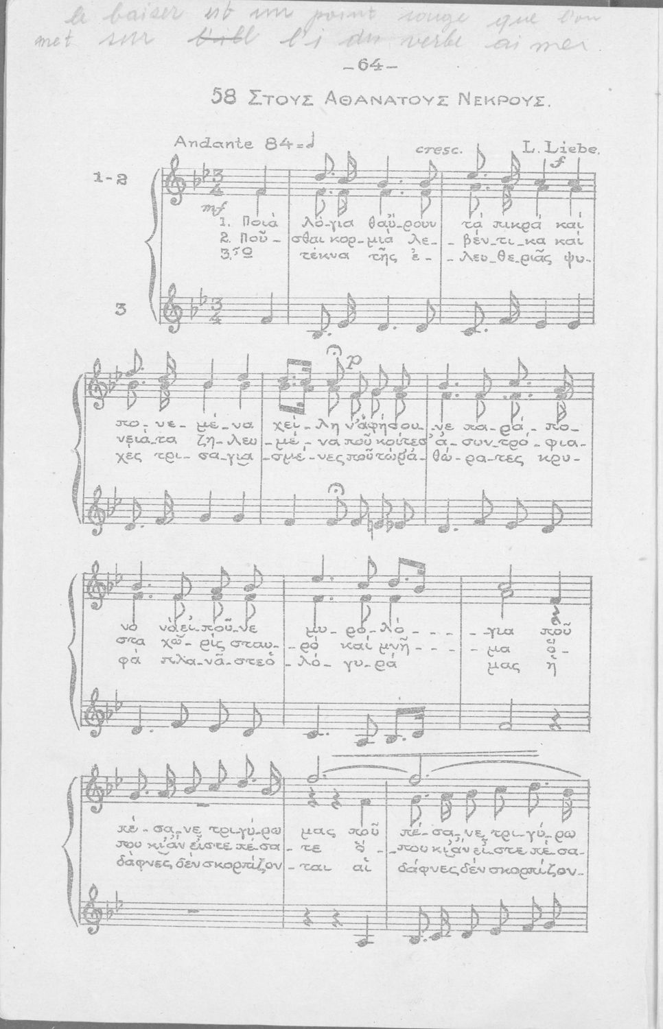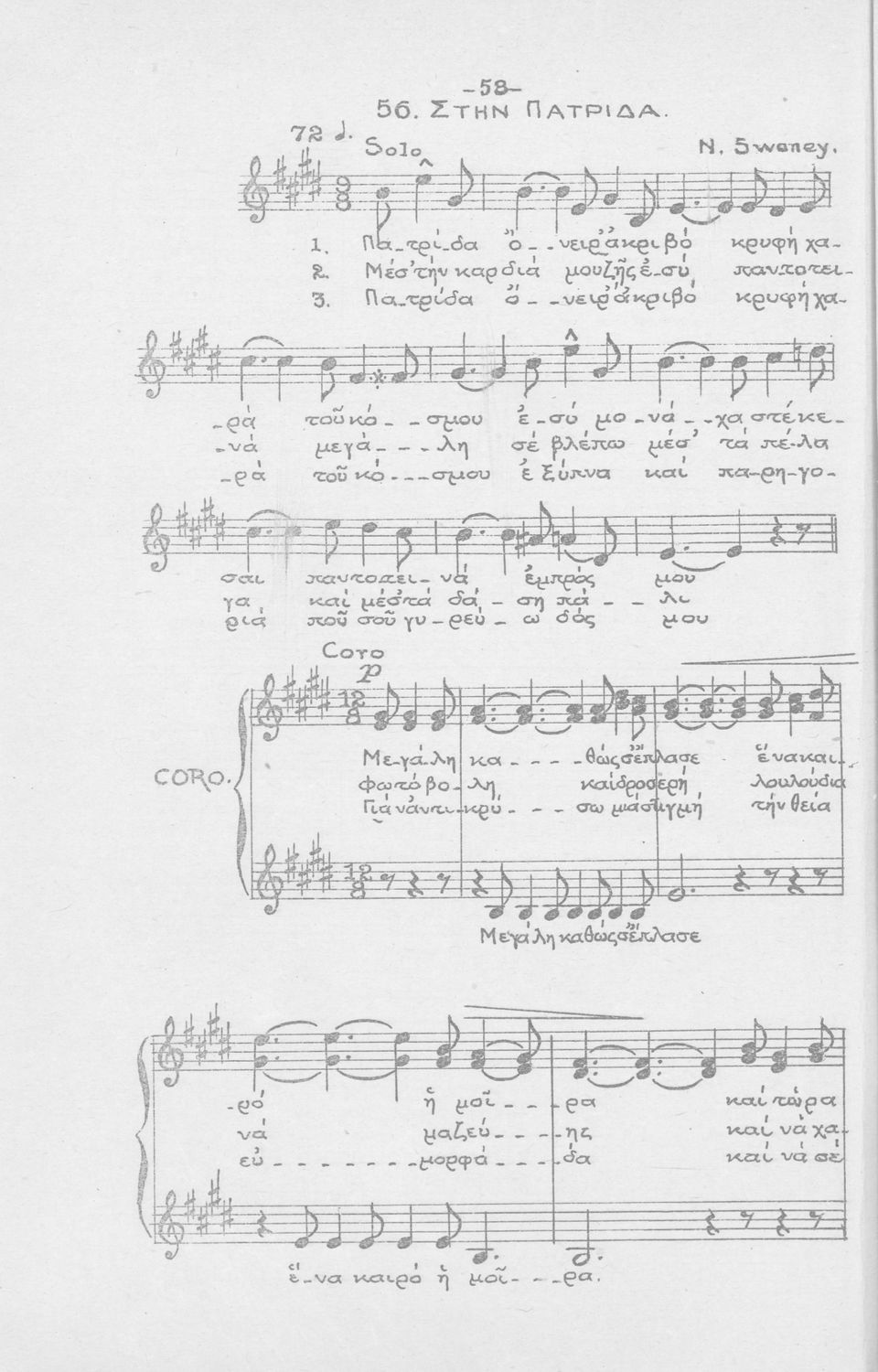 Σχολικό εγχειρίδιο Μουσικής για τη Δευτεροβάθμια εκπαίδευση. Το βιβλίο περιέχει τραγούδια παιδαγωγικά, μονόφωνα, δίφωνα και τρίφωνα. Ο συγγραφέας υπήρξε καθηγητής Μουσικής στο Γυμνάσιο και Αστικό σχολείο του Αρσακείου Αθηνών.