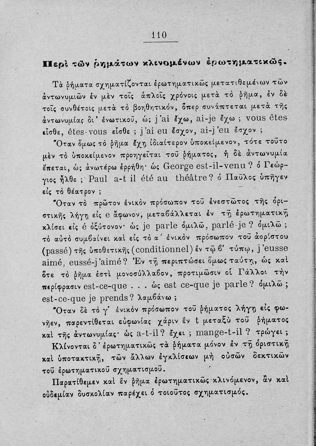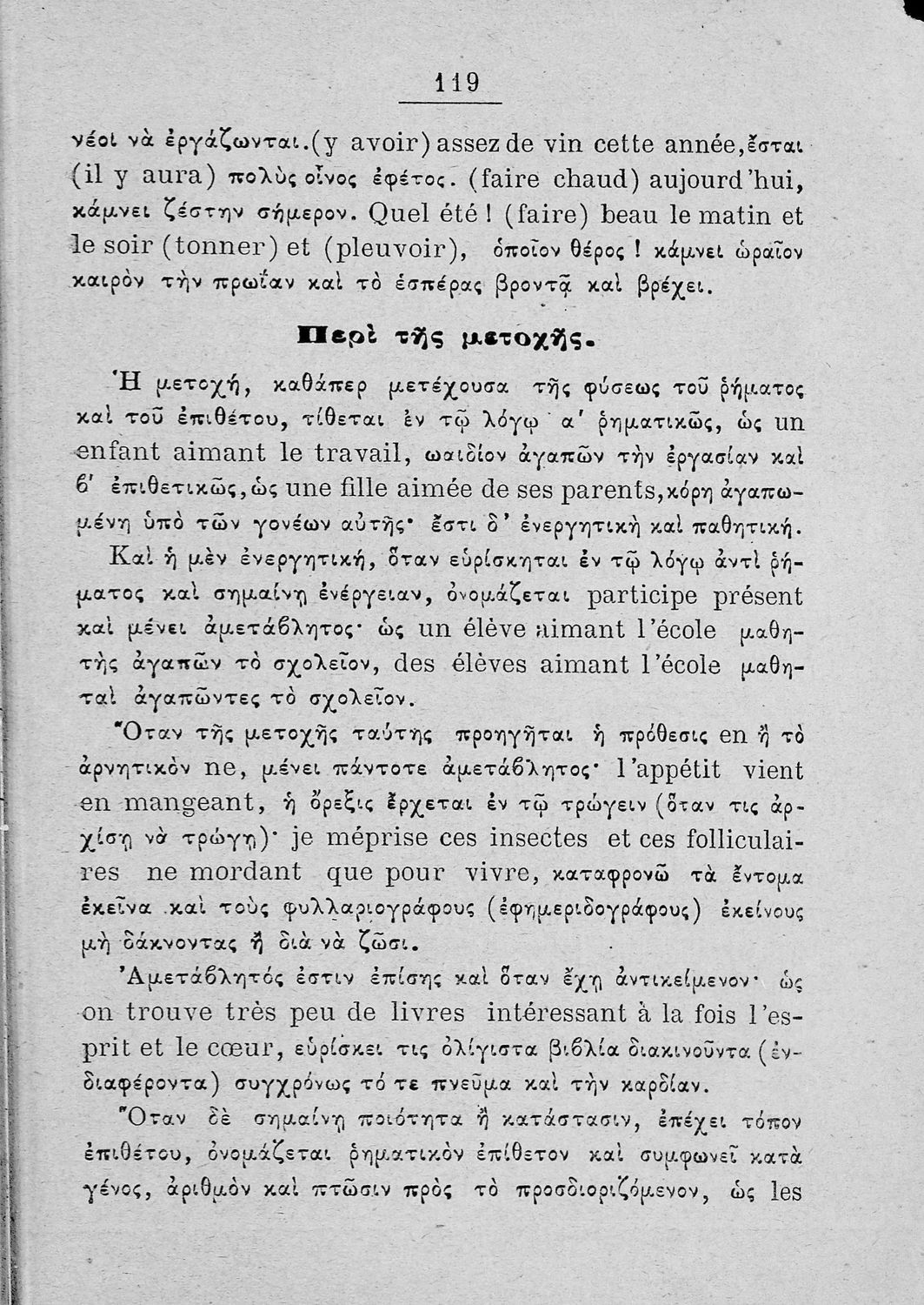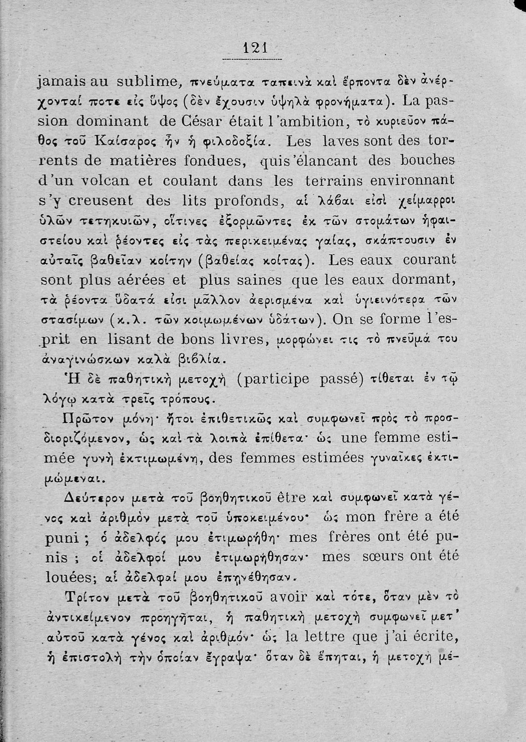 Γραμματική της Γαλλικής γλώσσας για τα Ελληνικά Σχολεία και Παρθεναγωγεία που αναλύει τα μέρη του λόγου και περιέχει παραδείγματα και ασκήσεις.