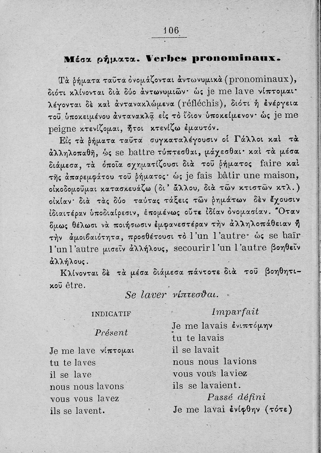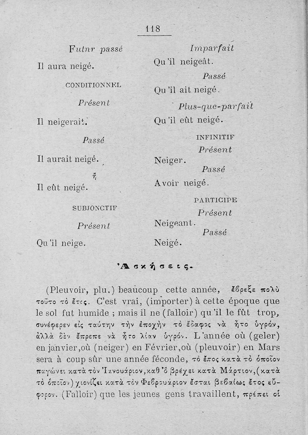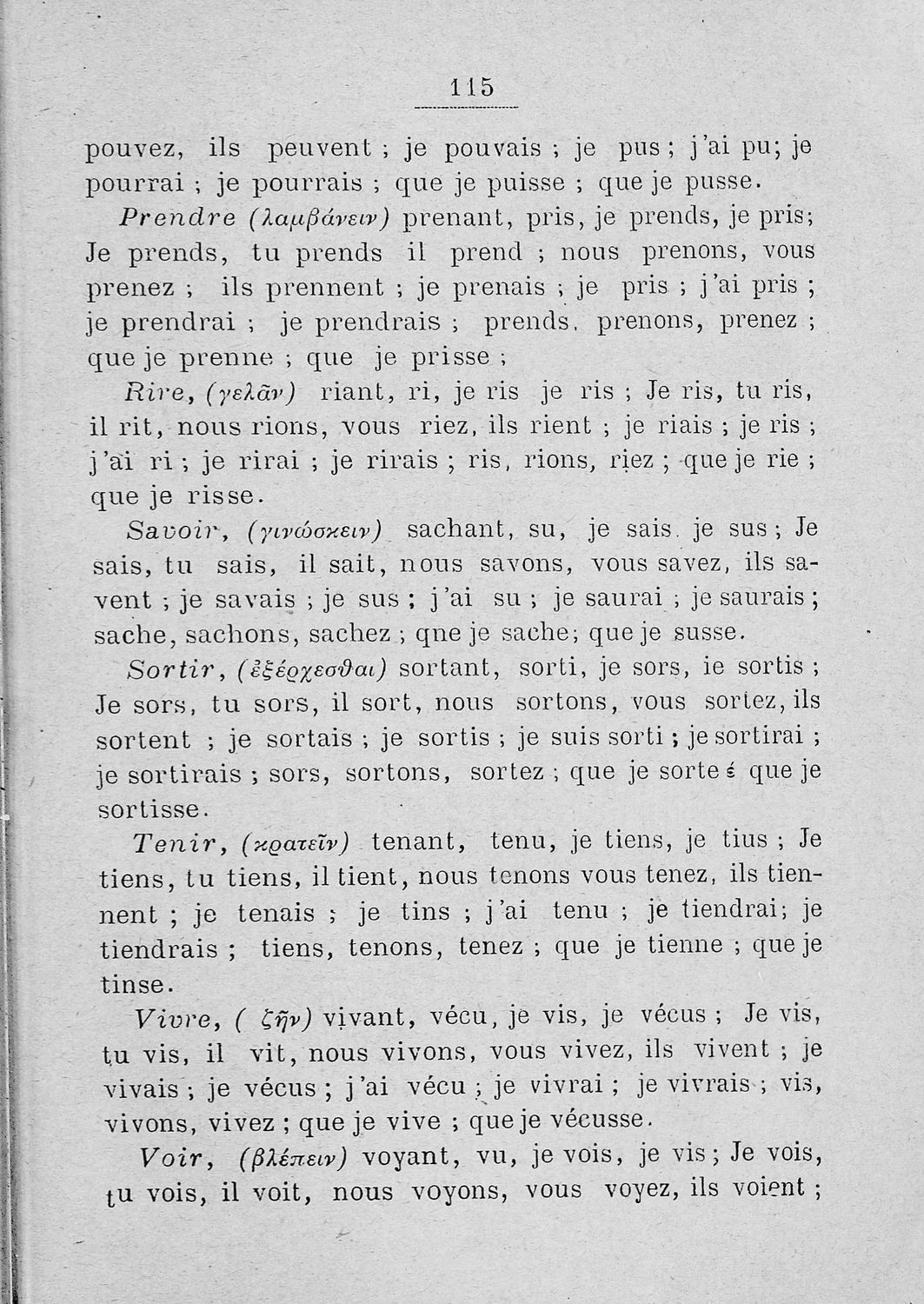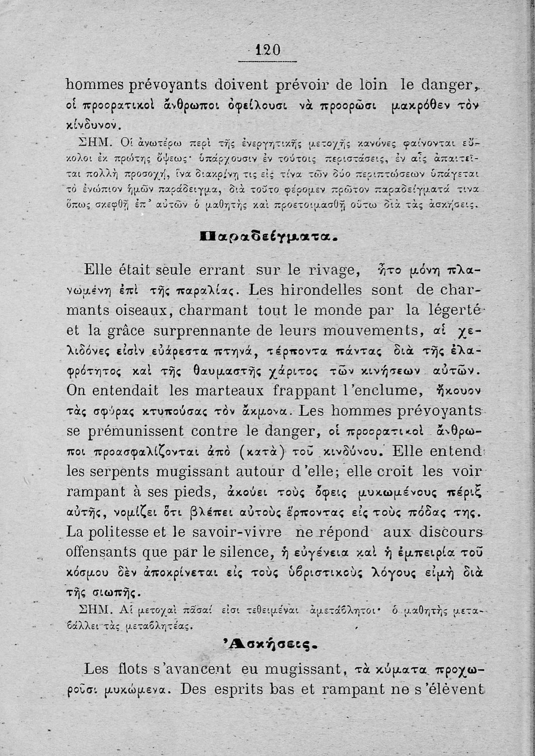 Γραμματική της Γαλλικής γλώσσας για τα Ελληνικά Σχολεία και Παρθεναγωγεία που αναλύει τα μέρη του λόγου και περιέχει παραδείγματα και ασκήσεις.