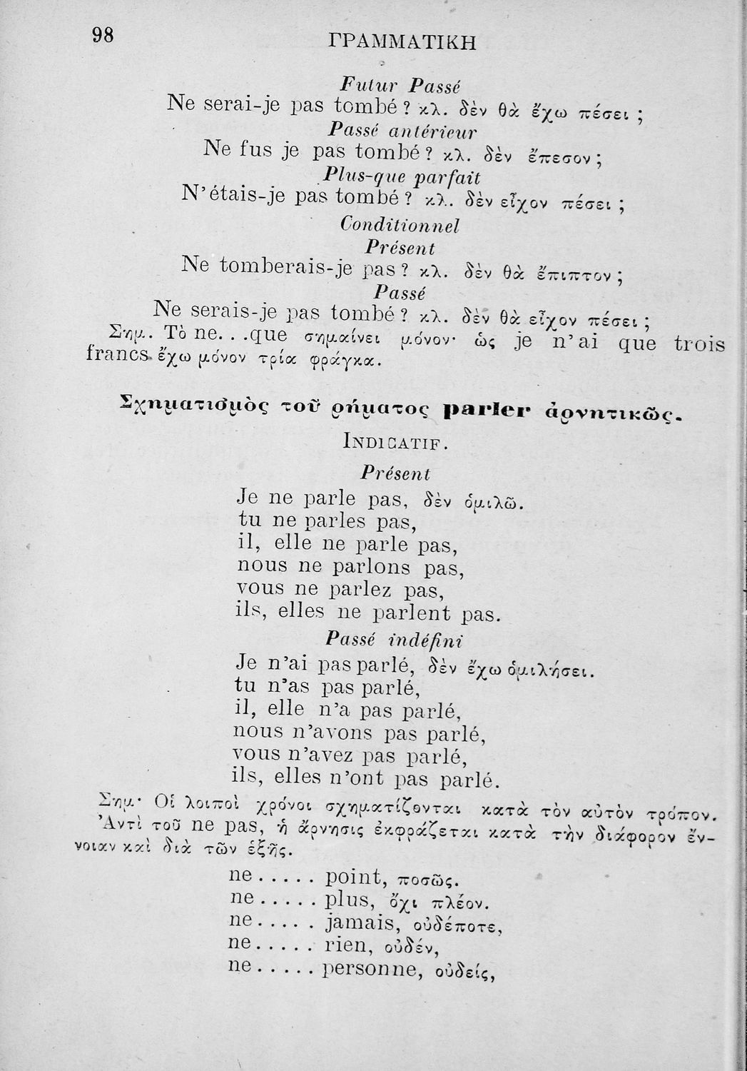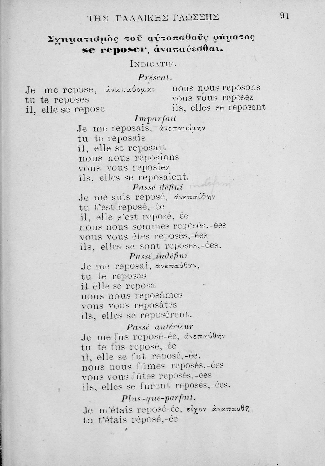 Σχολικό εγχειρίδιο Γαλλικών για τους μαθητές των Ελληνικών Σχολείων που περιέχει τους κανόνες της γραμματικής.