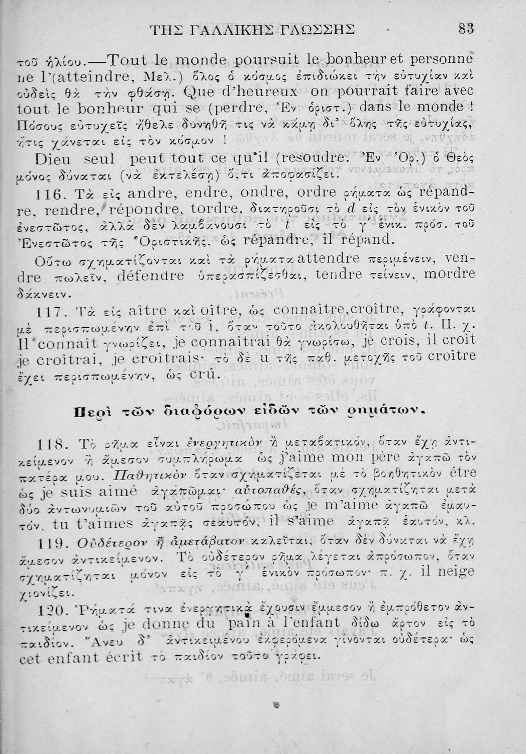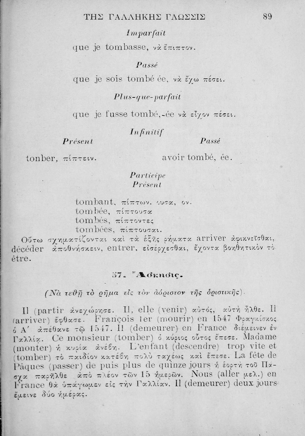Σχολικό εγχειρίδιο Γαλλικών για τοΕλληνικό Σχολείο, το Αστικό Σχολείο, το Παρθεναγωγείο, το Διδασκαλείο και τις Εμπορικές Σχολές που αποτελείται από κείμενα, γραμματική και συντακτικό της γαλλικής γλώσσας και ...