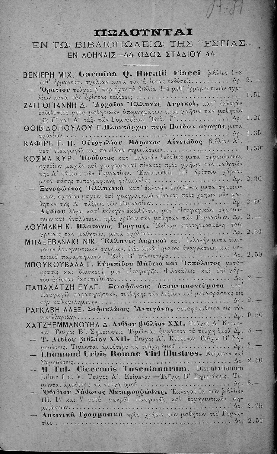 Εκδότης: Ιωάννης Δ. Κολλάρος Έτος έκδοσης: 1912 Τόπος έκδοσης: Αθήνα |