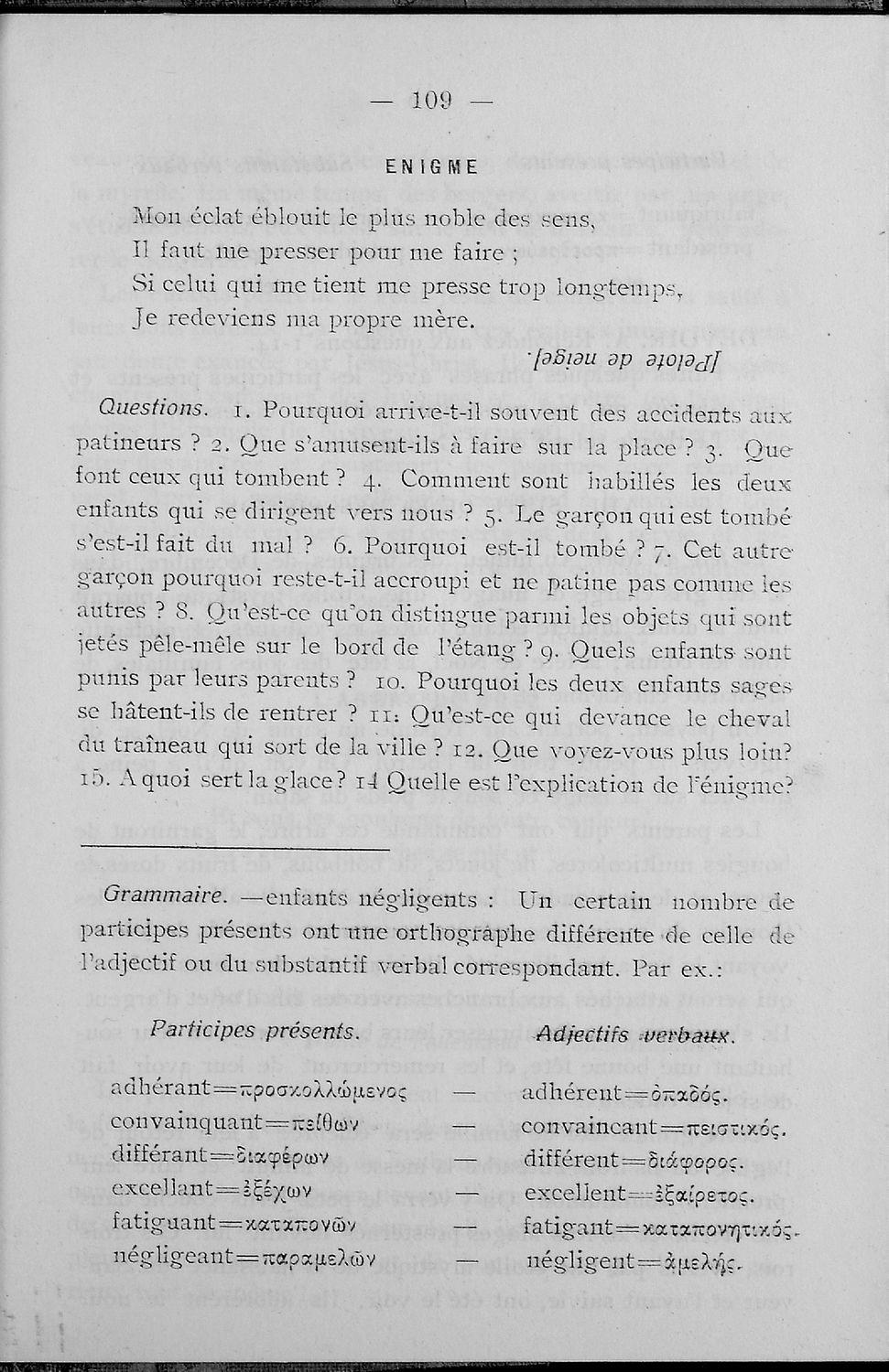 Σχολικό εγχειρίδιο Γαλλικών που περιλαμβάνει κείμενα, λεξιλόγιο και ασκήσεις. Ο συγγραφέας ήταν καθηγητής της Δημόσιας Εμπορικής Σχολής Αθηνών και του Αρσακείου.
