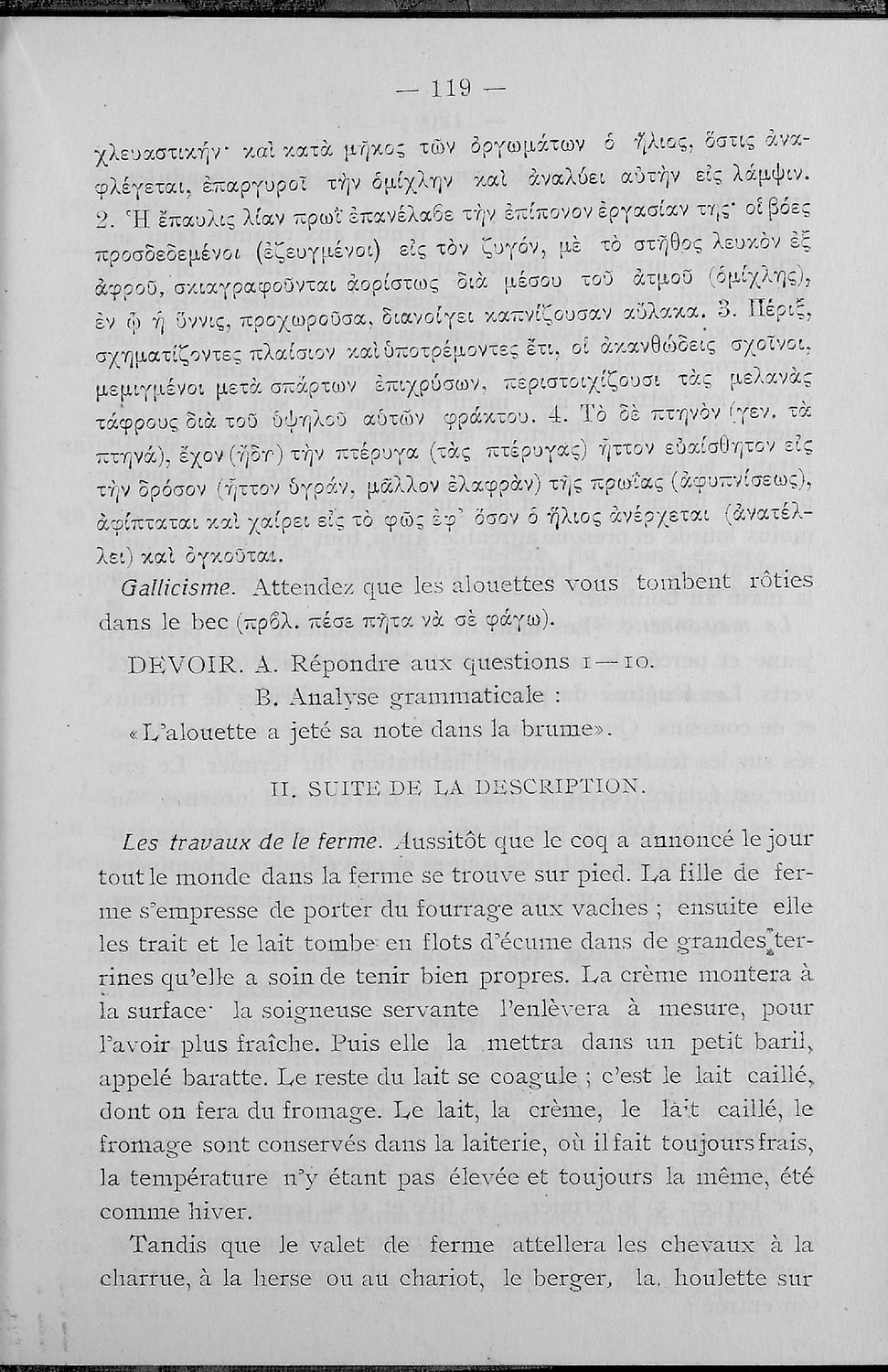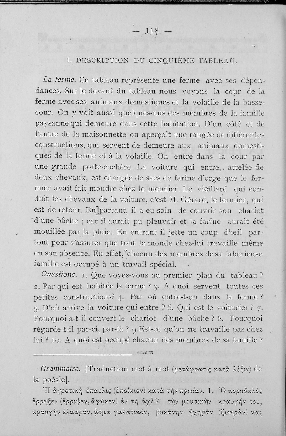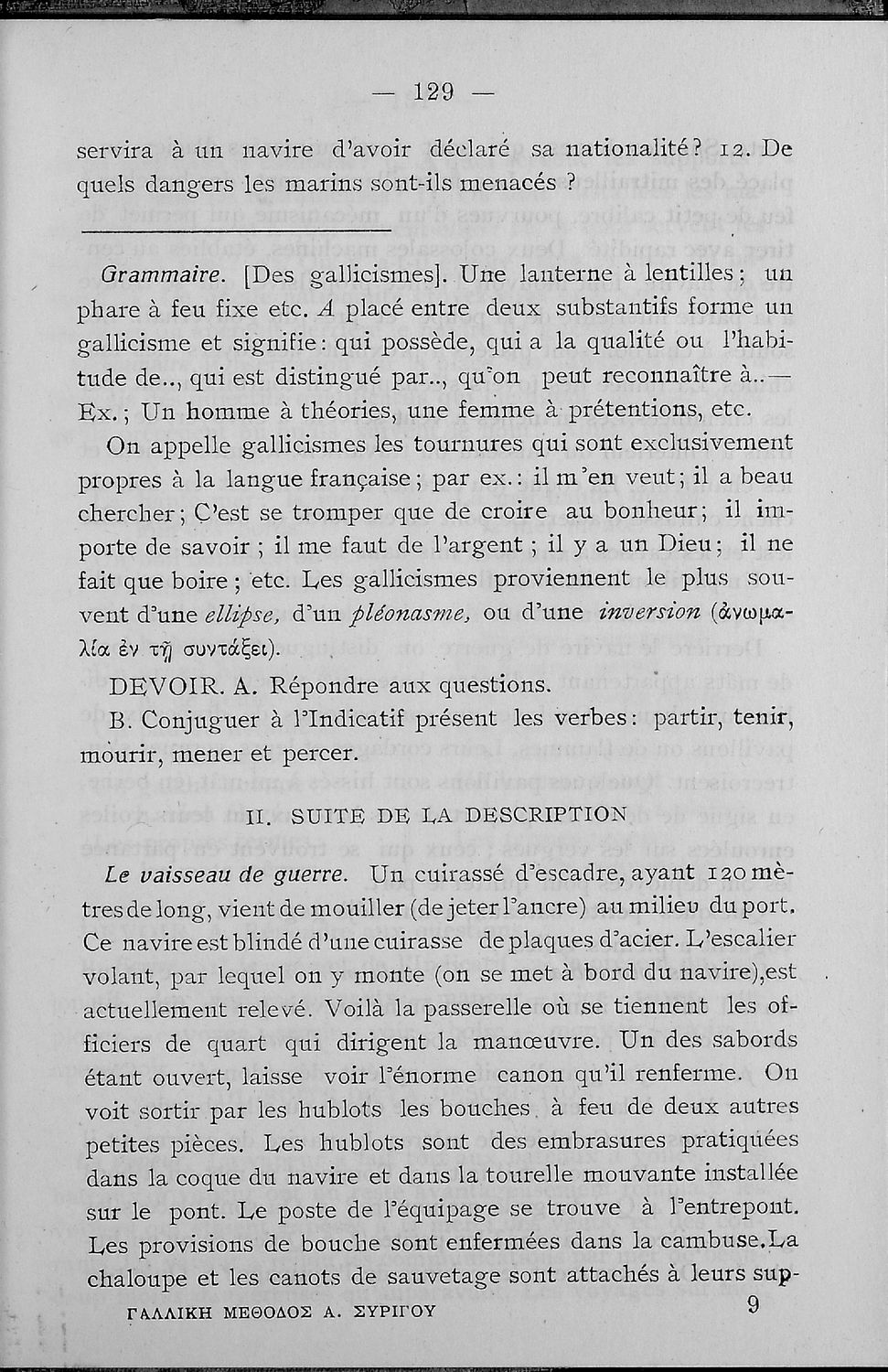 Σχολικό εγχειρίδιο Γαλλικών για τα Γυμνάσια και τις Εμπορικές Σχολές που περιλαμβάνει πεζά και ποιήματα, θεωρία, λεξιλόγιο, ασκήσεις και παροιμίες. Ο συγγραφέας ήταν καθηγητής της Δημόσιας Εμπορικής Σχολής Αθηνών και του Αρσακείου.