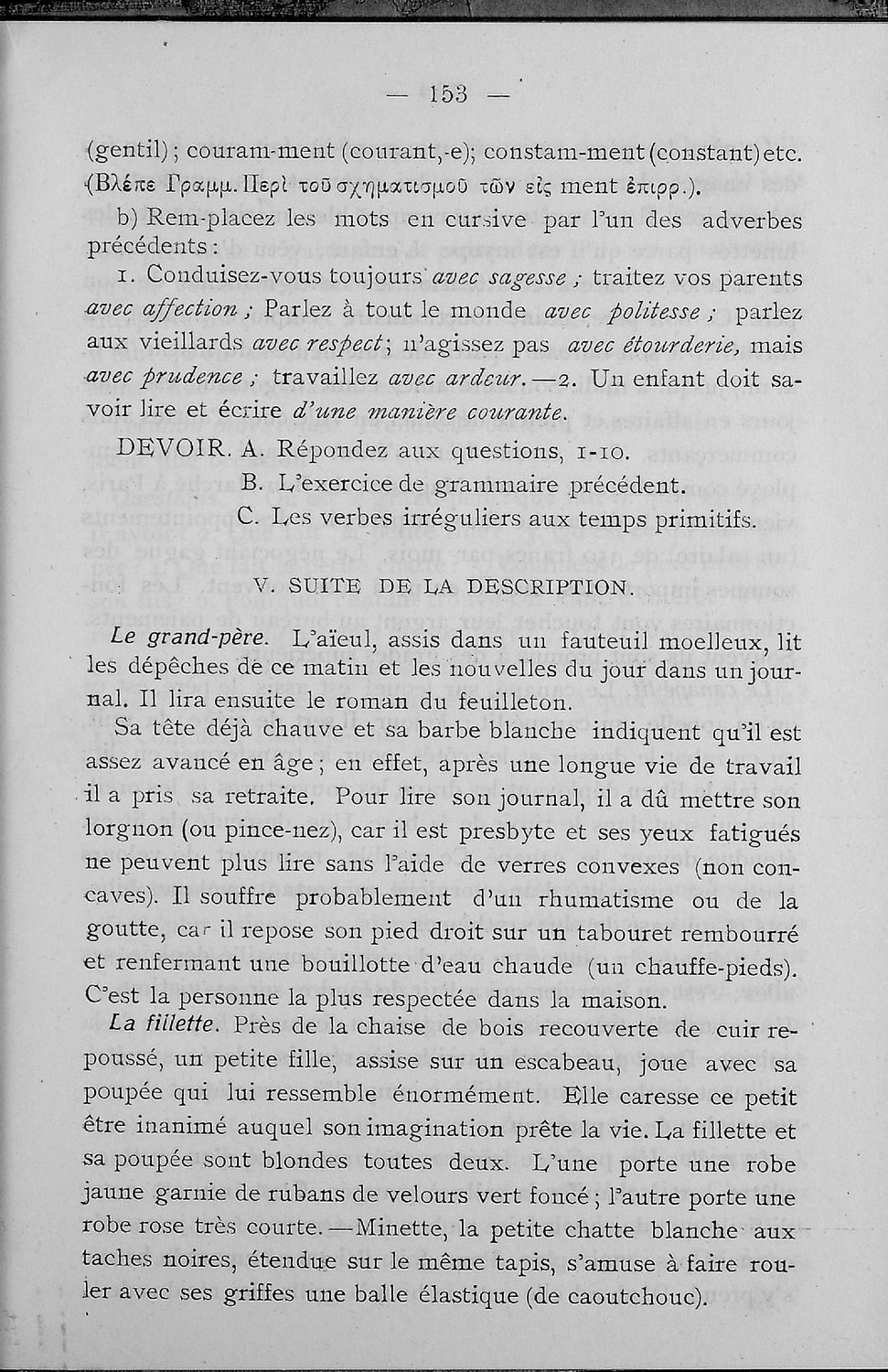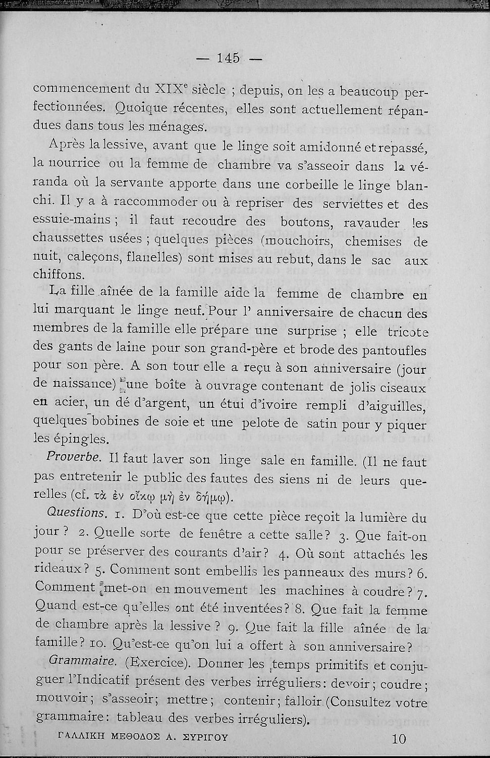 Σχολικό εγχειρίδιο Γαλλικών των Γυμνασίων, Αστικών σχολείων, Παρθεναγωγείων, Διδασκαλείων και Εμπορικών σχολών το οποίο παρουσιάζει τους βασικούς κανόνες γραμματικής μέσα από ασκήσεις και σειρά κειμένων ...