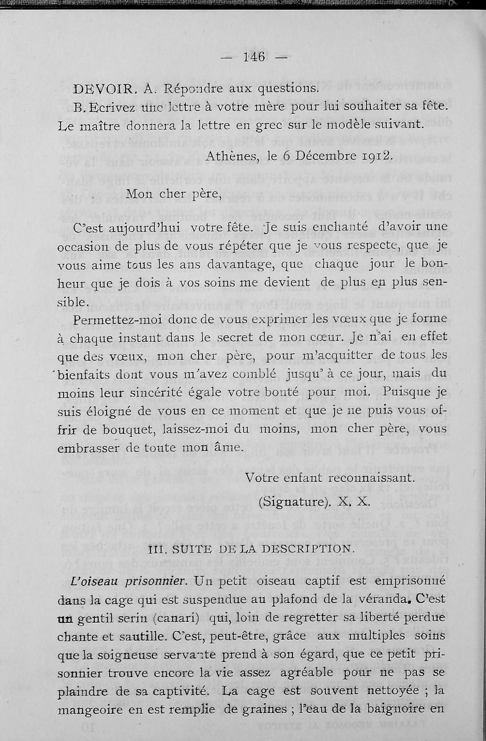 Σχολικό εγχειρίδιο Γαλλικών που περιλαμβάνει κείμενα, λεξιλόγιο και ασκήσεις. Ο συγγραφέας ήταν καθηγητής της Δημόσιας Εμπορικής Σχολής Αθηνών και του Αρσακείου.