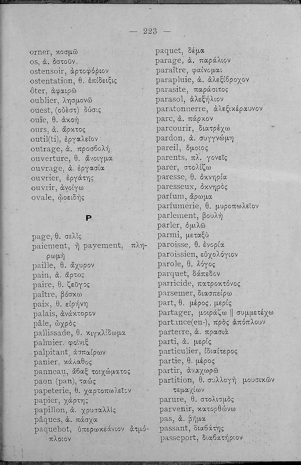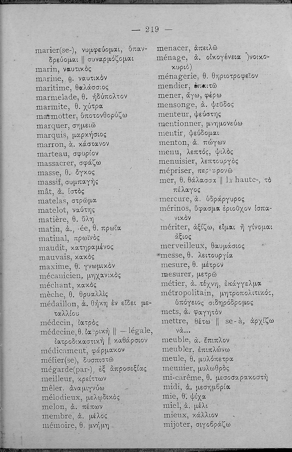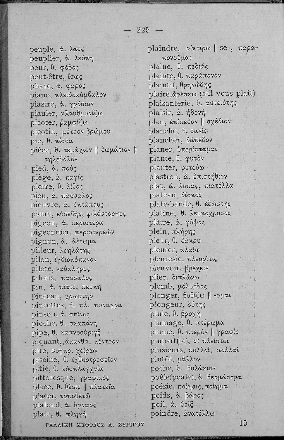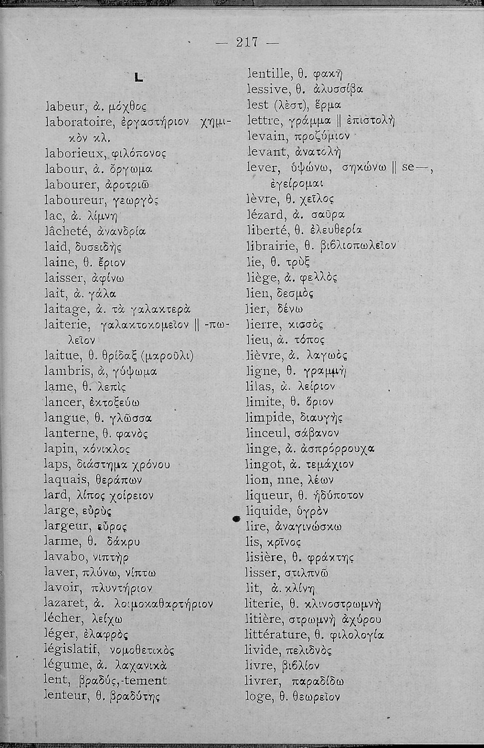 Σχολικό εγχειρίδιο Γαλλικών που περιλαμβάνει κείμενα, λεξιλόγιο και ασκήσεις. Ο συγγραφέας ήταν καθηγητής της Δημόσιας Εμπορικής Σχολής Αθηνών και του Αρσακείου.