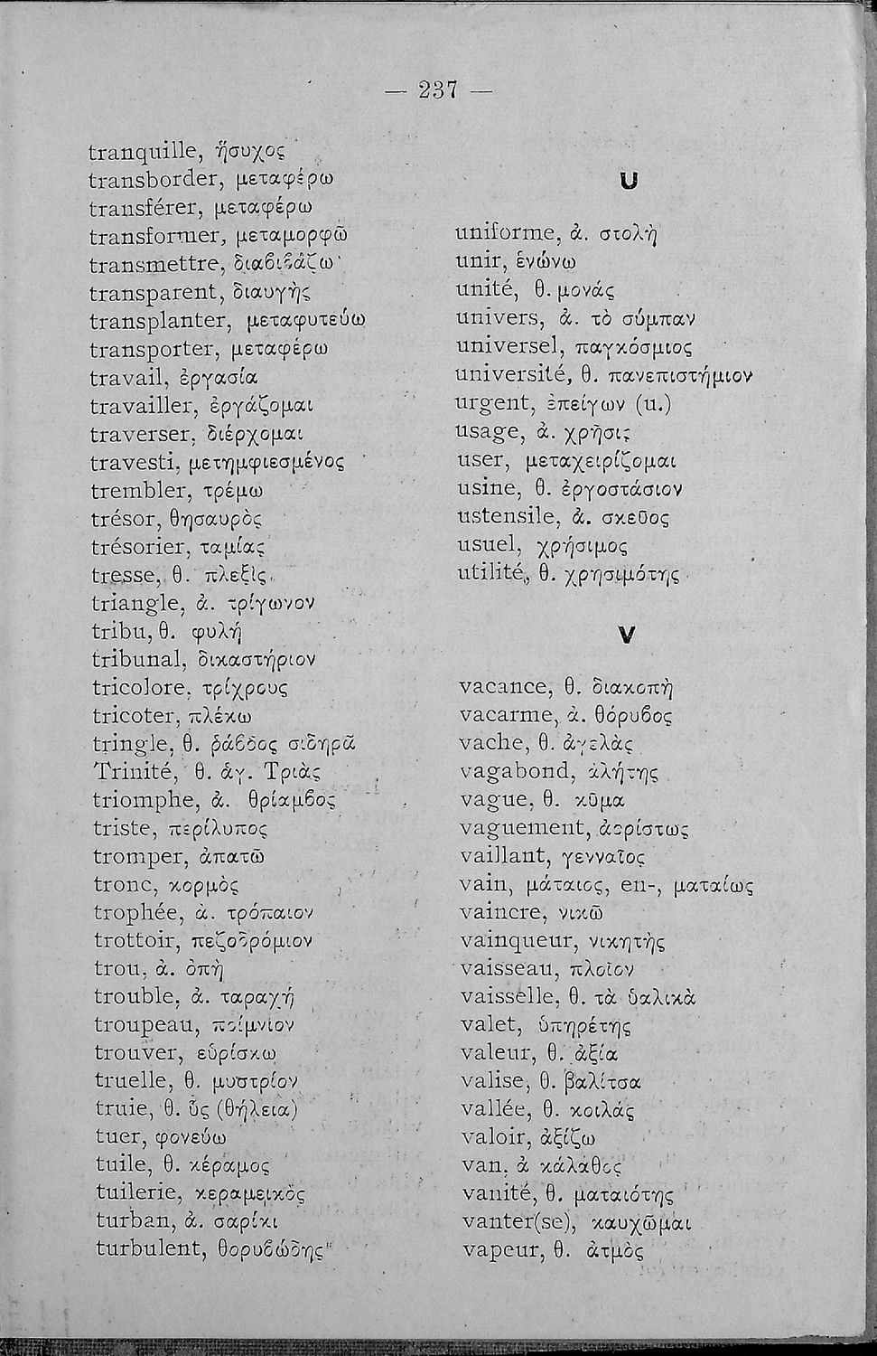Σχολικό εγχειρίδιο Γαλλικών που περιλαμβάνει κείμενα, λεξιλόγιο και ασκήσεις. Ο συγγραφέας ήταν καθηγητής της Δημόσιας Εμπορικής Σχολής Αθηνών και του Αρσακείου.