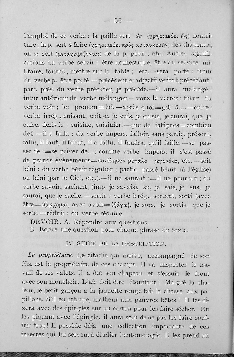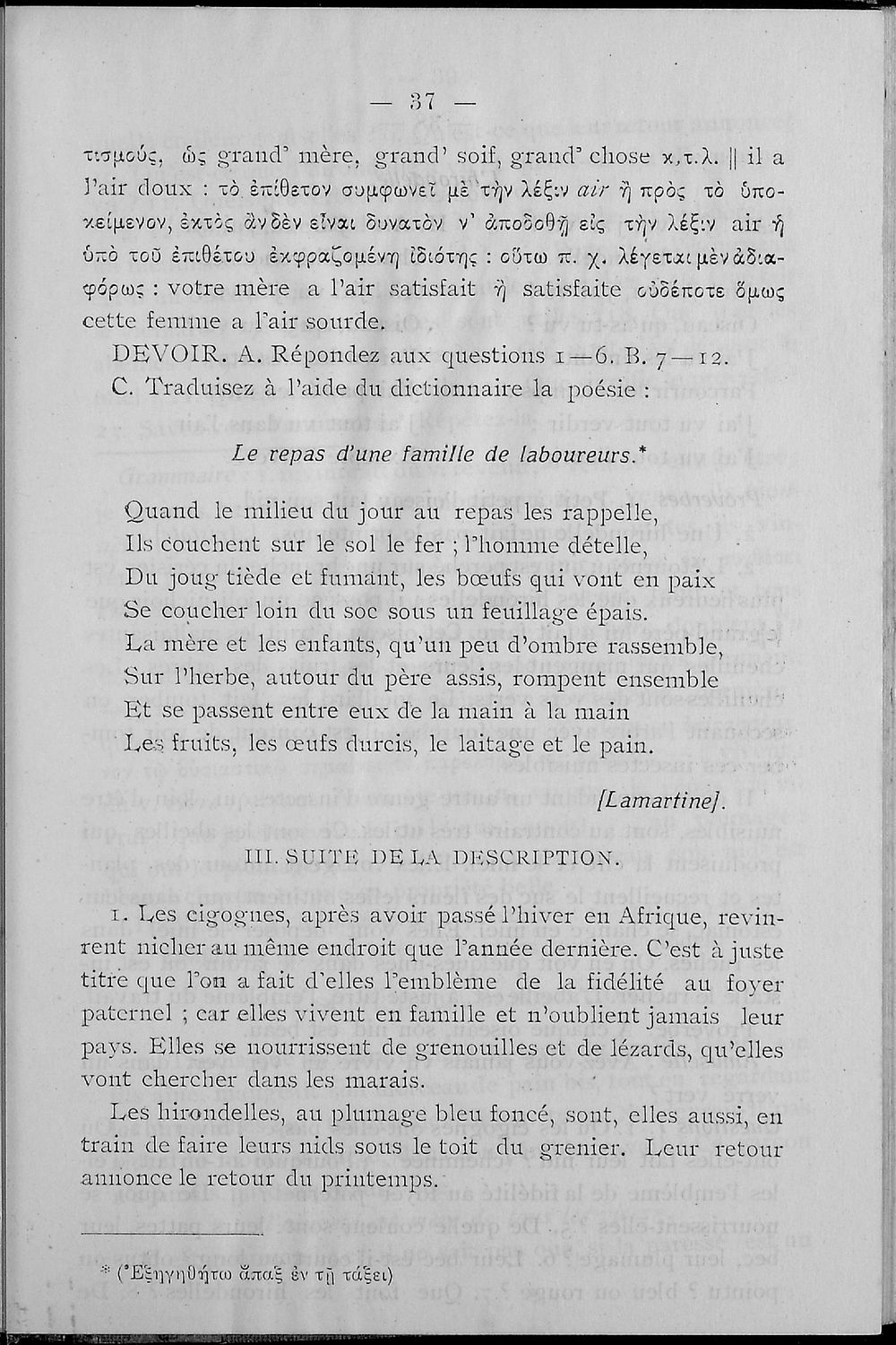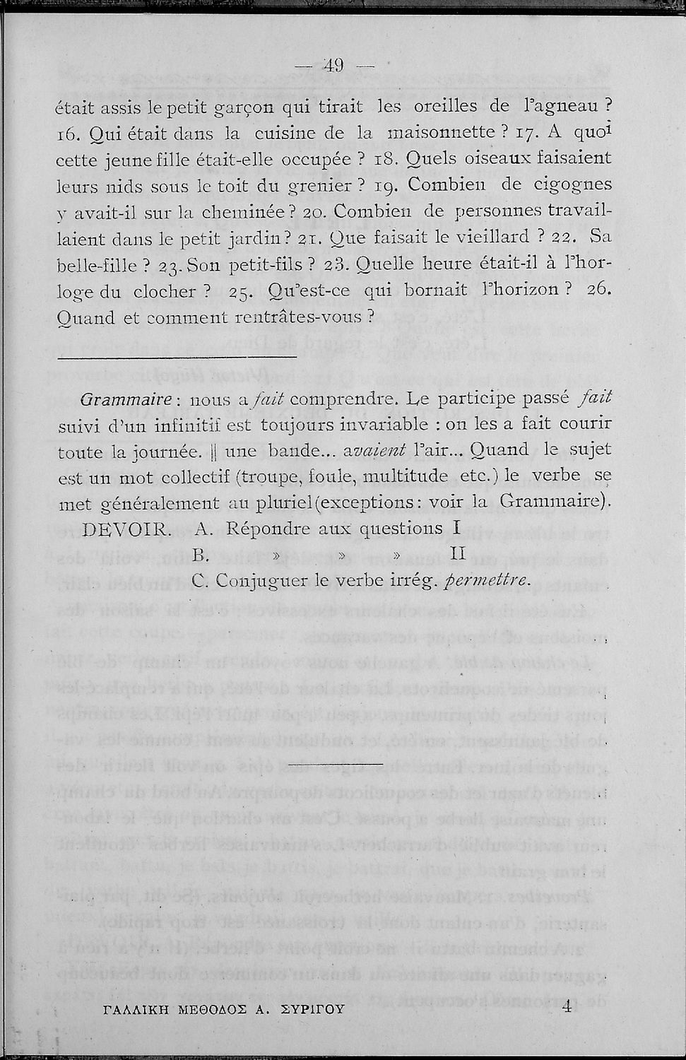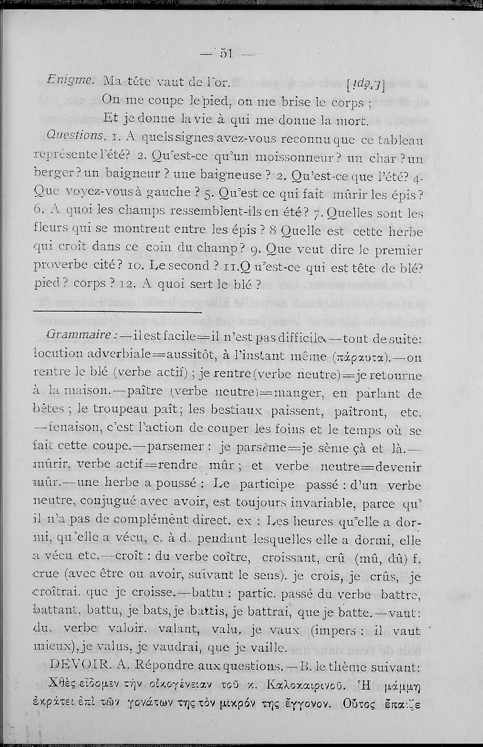 Σχολικό εγχειρίδιο Γαλλικών που περιλαμβάνει κείμενα, λεξιλόγιο και ασκήσεις. Ο συγγραφέας ήταν καθηγητής της Δημόσιας Εμπορικής Σχολής Αθηνών και του Αρσακείου.