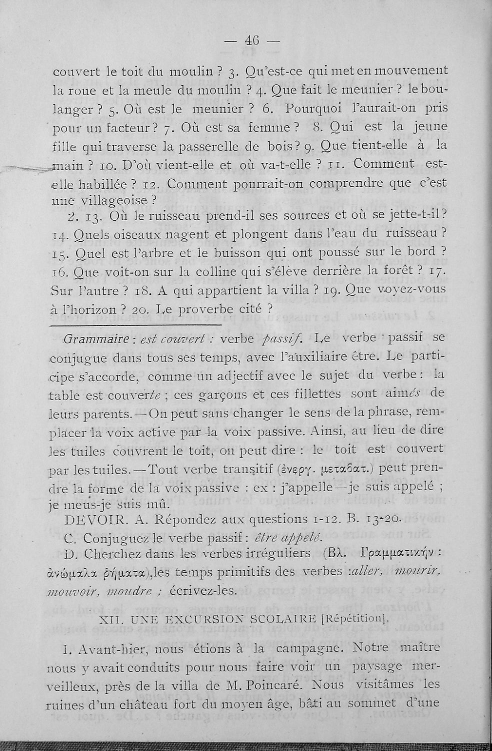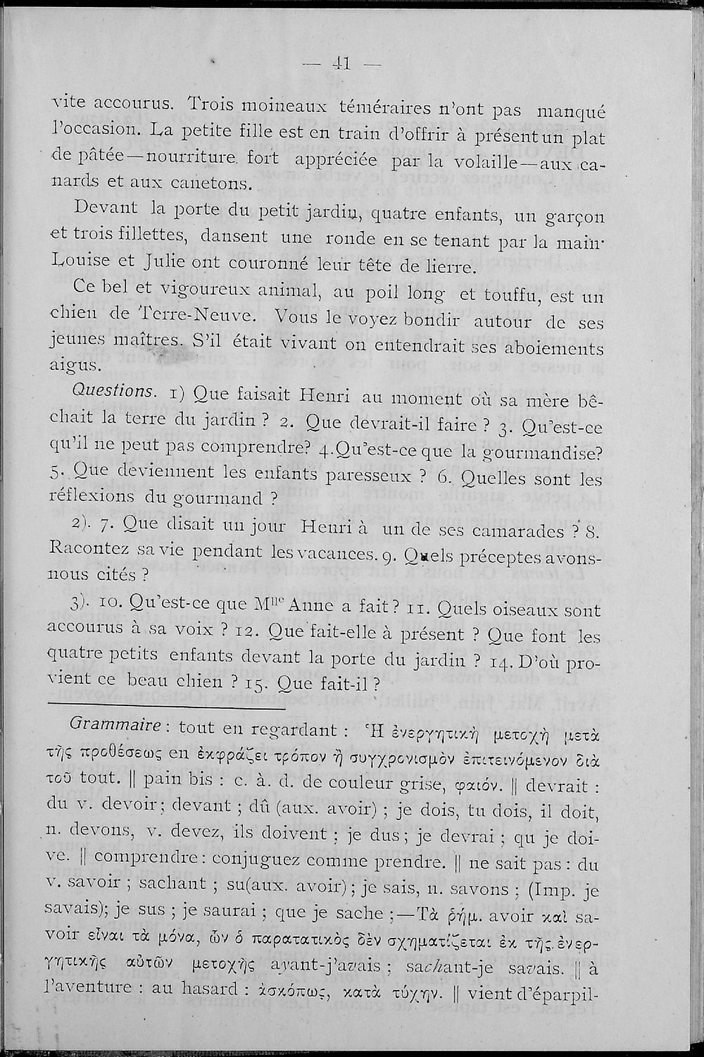 Σχολικό εγχειρίδιο Γαλλικών των Γυμνασίων, Αστικών σχολείων, Παρθεναγωγείων, Διδασκαλείων και Εμπορικών σχολών το οποίο παρουσιάζει τους βασικούς κανόνες γραμματικής μέσα από ασκήσεις και σειρά κειμένων ...