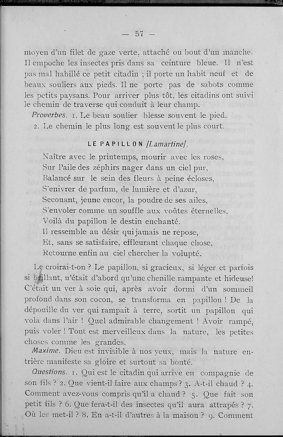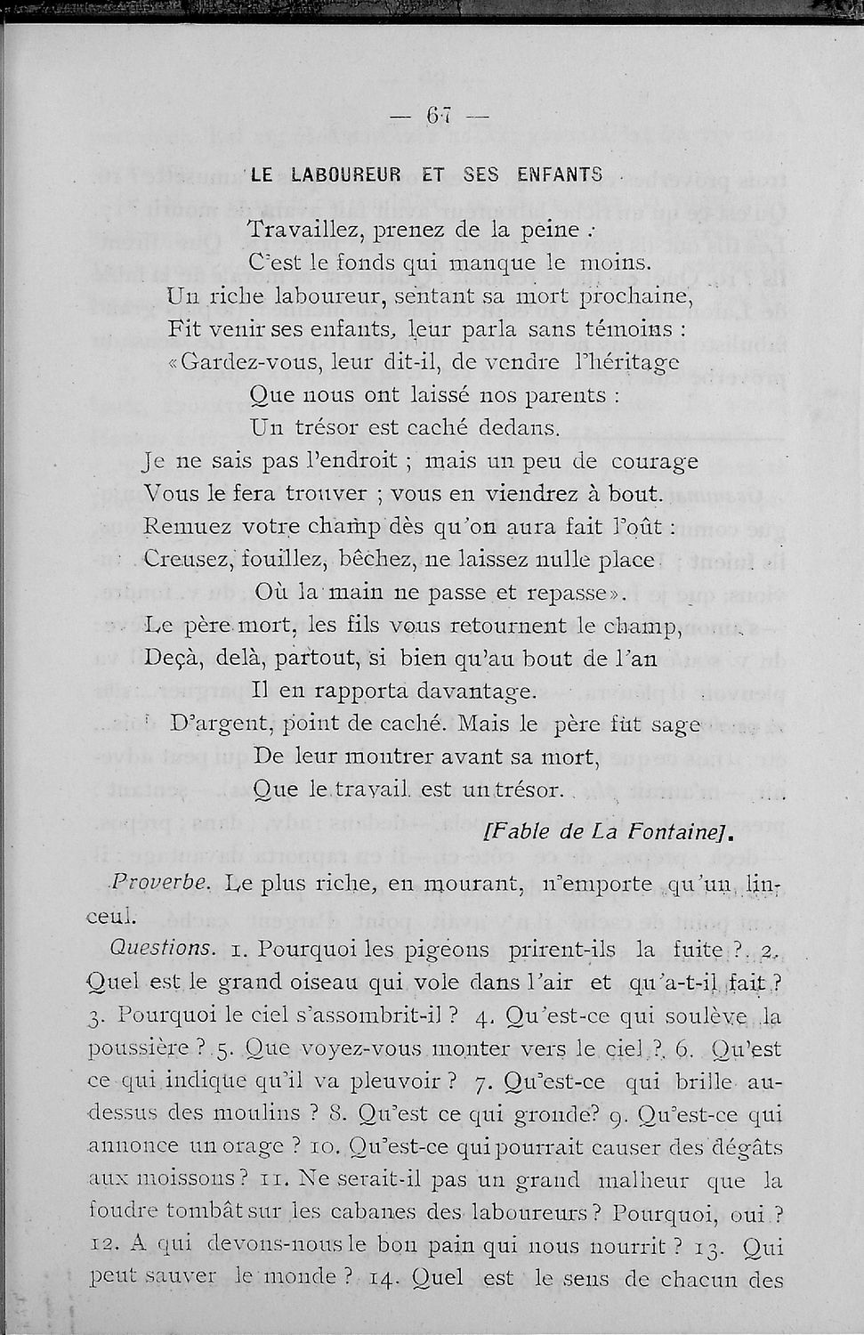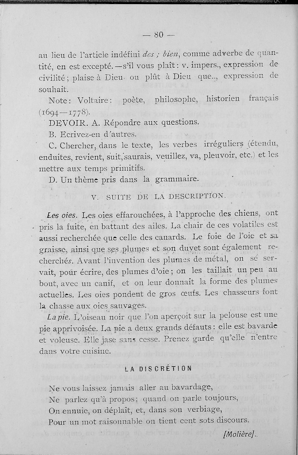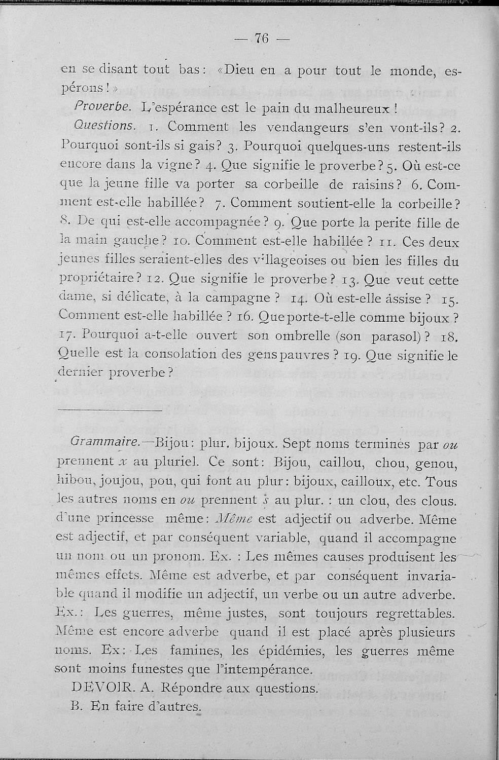 Σχολικό εγχειρίδιο Γαλλικών που περιλαμβάνει κείμενα, λεξιλόγιο και ασκήσεις. Ο συγγραφέας ήταν καθηγητής της Δημόσιας Εμπορικής Σχολής Αθηνών και του Αρσακείου.