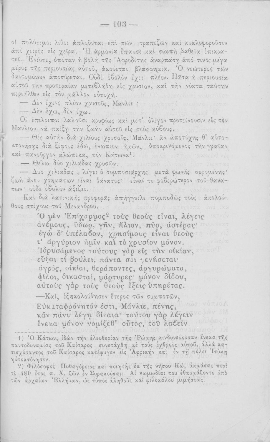 Σχολικό εγχειρίδιο Αρχαίων Ελληνικών για τα Ιερατικά Σχολεία. Ο τόμος περιέχει «..τεμάχια κατ’ εκλογήν εκ της Ξενοφώντος Κύρου Ανάβασεως και εκ των Γεωγραφικών και Εθνογραφικών Στράβωνος, Διοδώρου και άλλων, ...