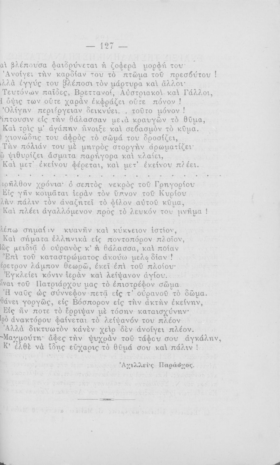 Σχολικό εγχειρίδιο Αρχαίων Ελληνικών για τα Ιερατικά Σχολεία. Ο τόμος περιέχει «..τεμάχια κατ’ εκλογήν εκ της Ξενοφώντος Κύρου Ανάβασεως και εκ των Γεωγραφικών και Εθνογραφικών Στράβωνος, Διοδώρου και άλλων, ...