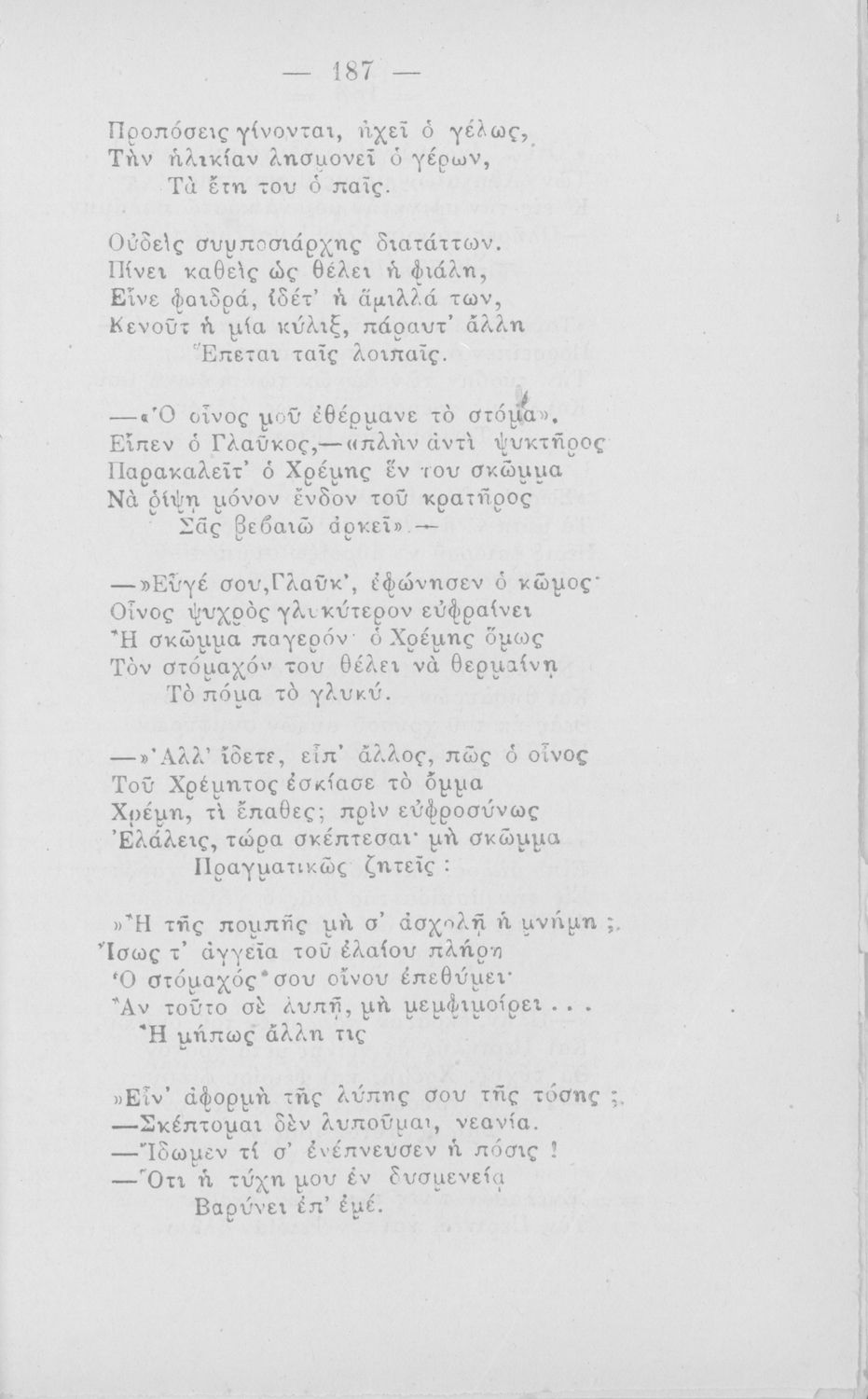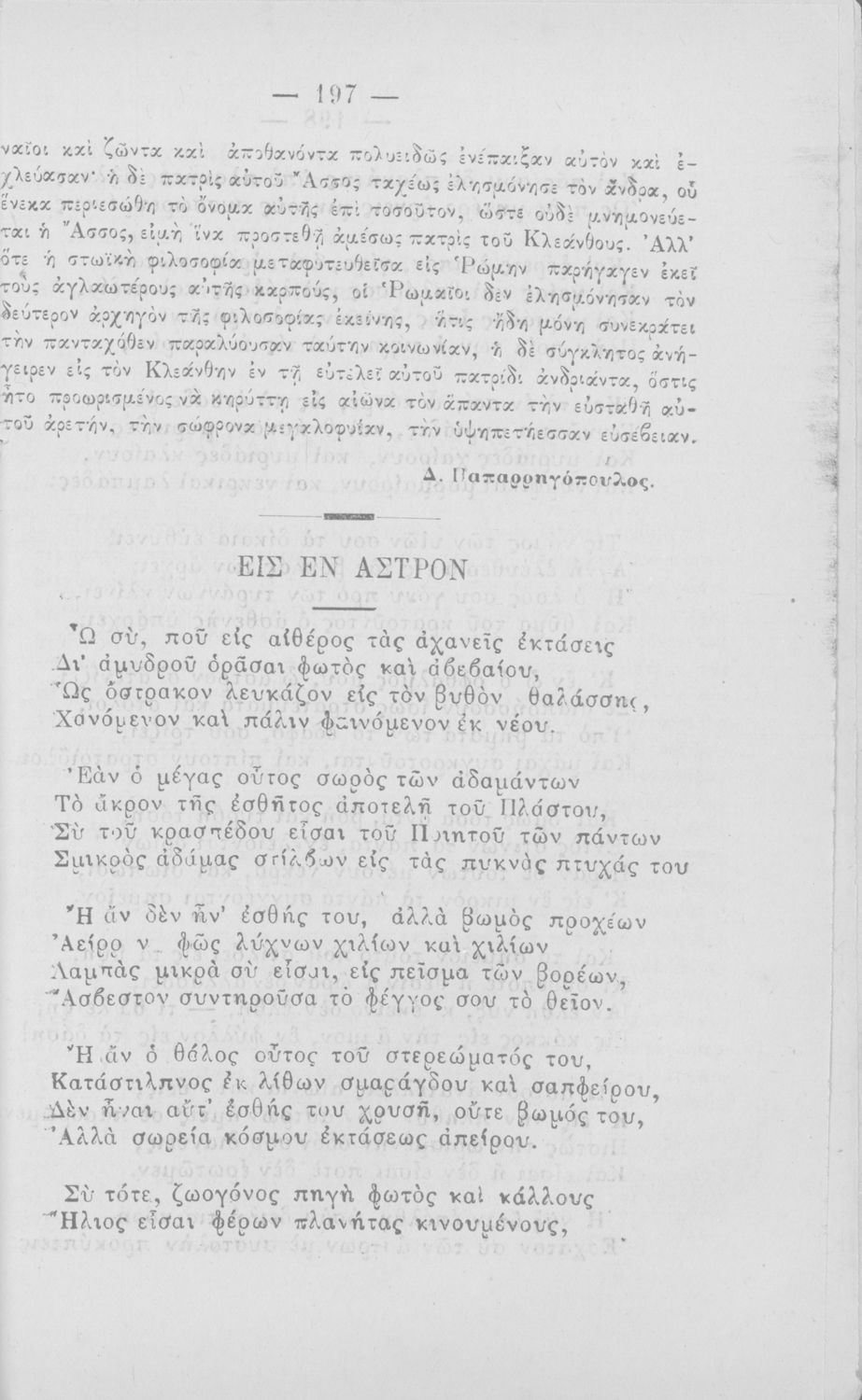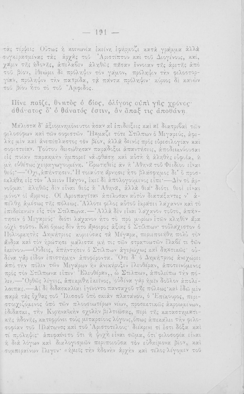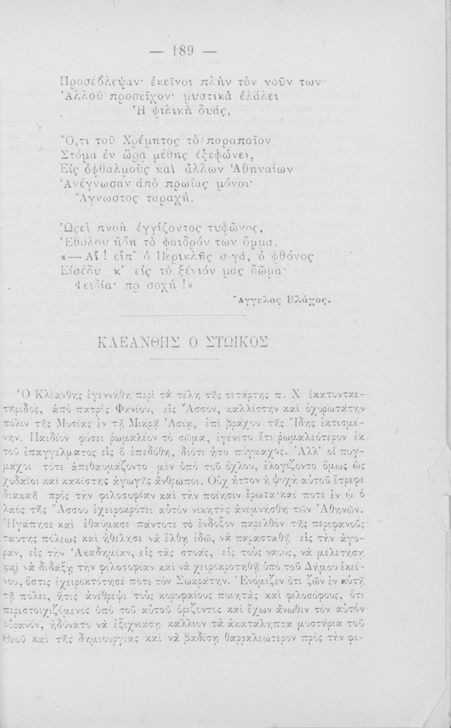 Βαθμίδα εκπαίδευσης: Δευτεροβάθμια Τάξη: Β' Ελληνικού Σχολείου Μάθημα: Νέα Ελληνικά Γλώσσα: Καθαρεύουσα Παρουσίαση περιεχομένου: Σχολικό εγχειρίδιο Νέων Ελληνικών Β΄ Ελληνικού Σχολείου που περιέχει πεζά και ποιήματα Ελλήνων λογοτεχνών εμπνευσμένα από την καθημερινή και ιστορική ζωή του τόπου. Περιλαμβάνει και βιογραφικά σημειώματα των συγγραφέων. |
