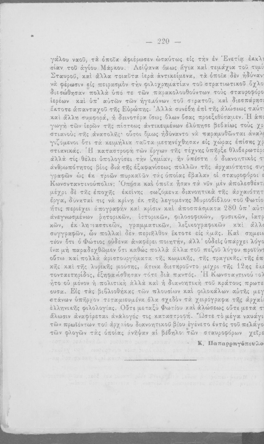 Σχολικό εγχειρίδιο Αρχαίων Ελληνικών για τα Ιερατικά Σχολεία. Ο τόμος περιέχει «..τεμάχια κατ’ εκλογήν εκ της Ξενοφώντος Κύρου Ανάβασεως και εκ των Γεωγραφικών και Εθνογραφικών Στράβωνος, Διοδώρου και άλλων, ...