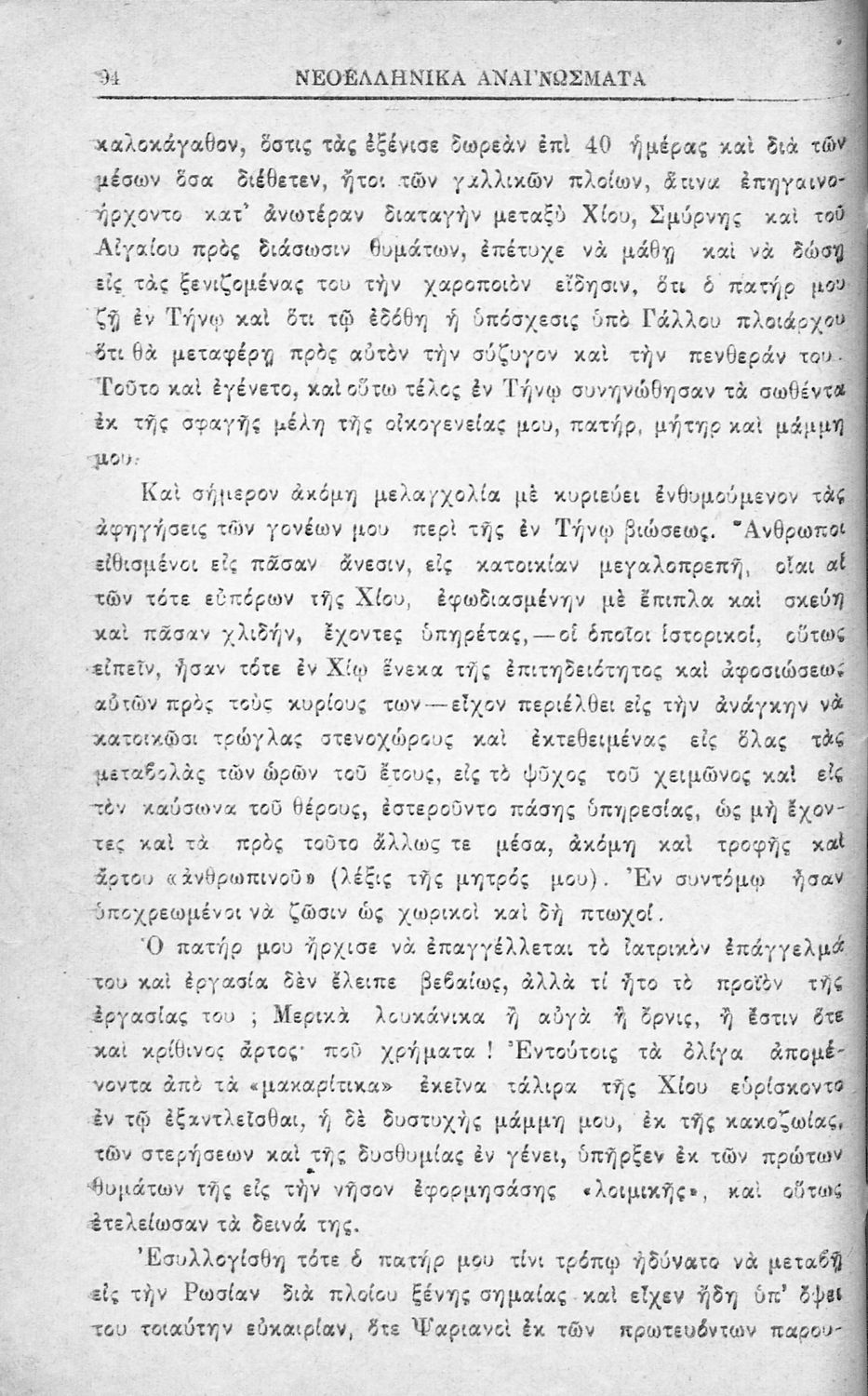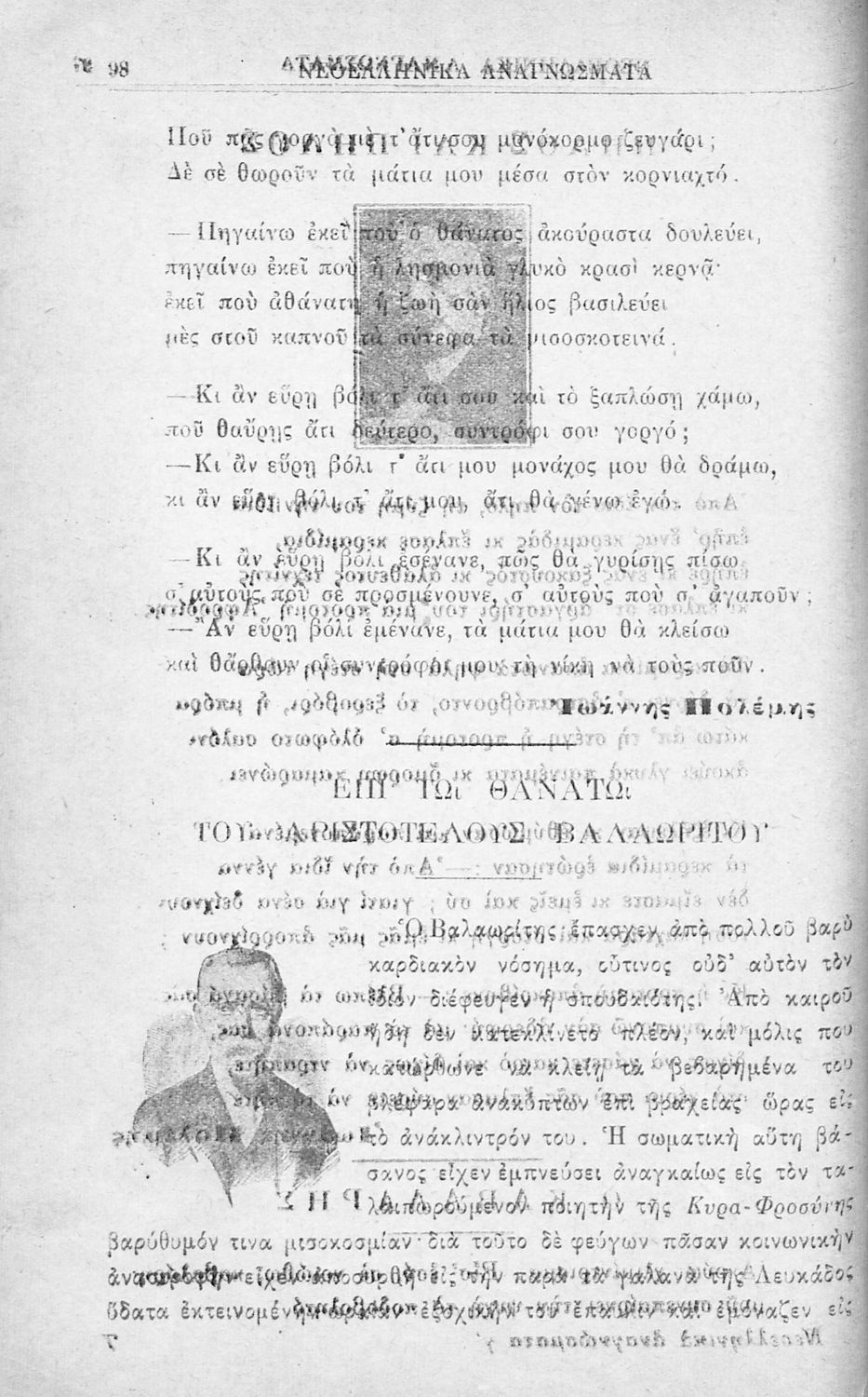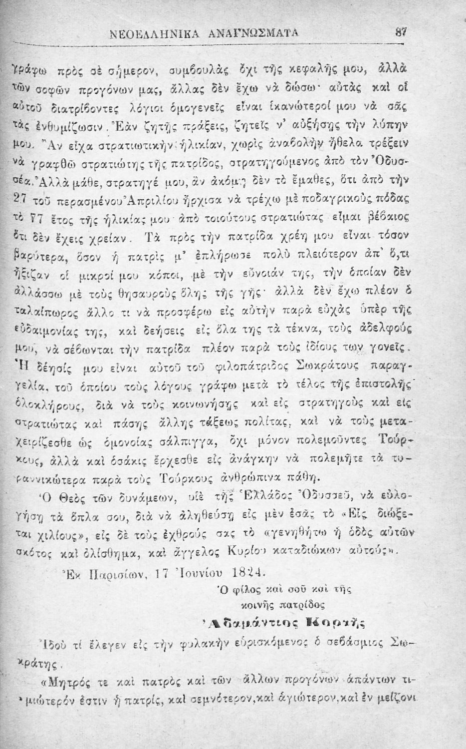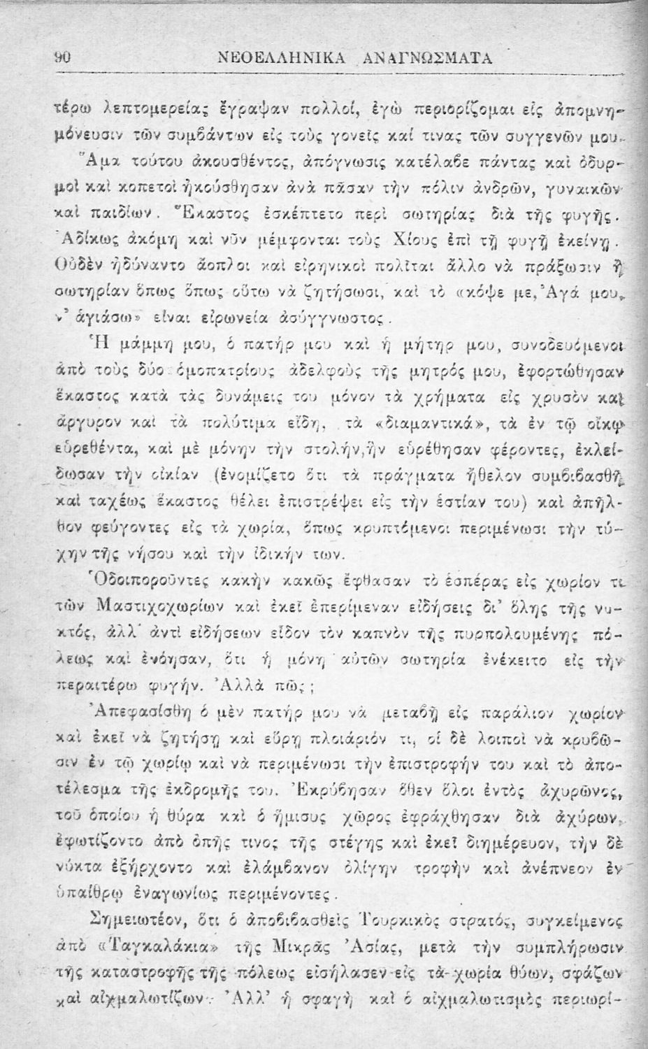 Σχολικό εγχειρίδιο Νέων Ελληνικών Γ' Ελληνικού Σχολείου και Α΄ Αστικού Σχολείου των Θηλέων που περιλαμβάνει ποιήματα και πεζά Ελλήνων συγγραφέων και δημοτικά τραγούδια εμπνευσμένα από την σύγχρονη ελληνική ιστορία, τη βυζαντινή ιστορία, την ελληνική φύση και τη ζωή στην ύπαιθρο, την οικογενειακή ζωή και τη θρησκευτική παράδοση. Περιέχει και παράρτημα με βιογραφίες των συγγραφέων και λεξιλόγιο.