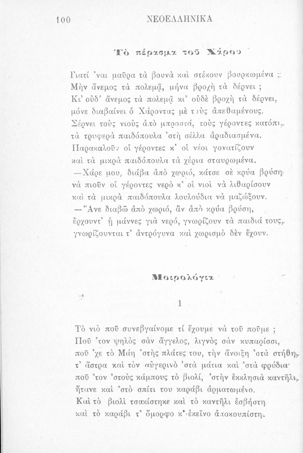 Σχολικό εγχειρίδιο Νέων Ελληνικών Γ΄ Γυμνασίου που περιλαμβάνει ποιήματα και πεζά Ελλήνων συγγραφέων και δημοτικά τραγούδια εμπνευσμένα από την σύγχρονη ελληνική ιστορία, την ελληνική φύση και τη ζωή στην ...