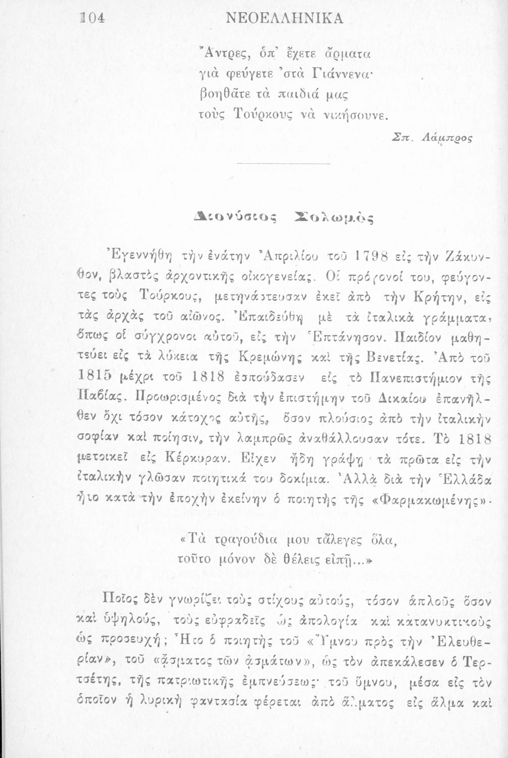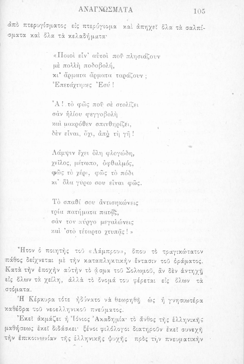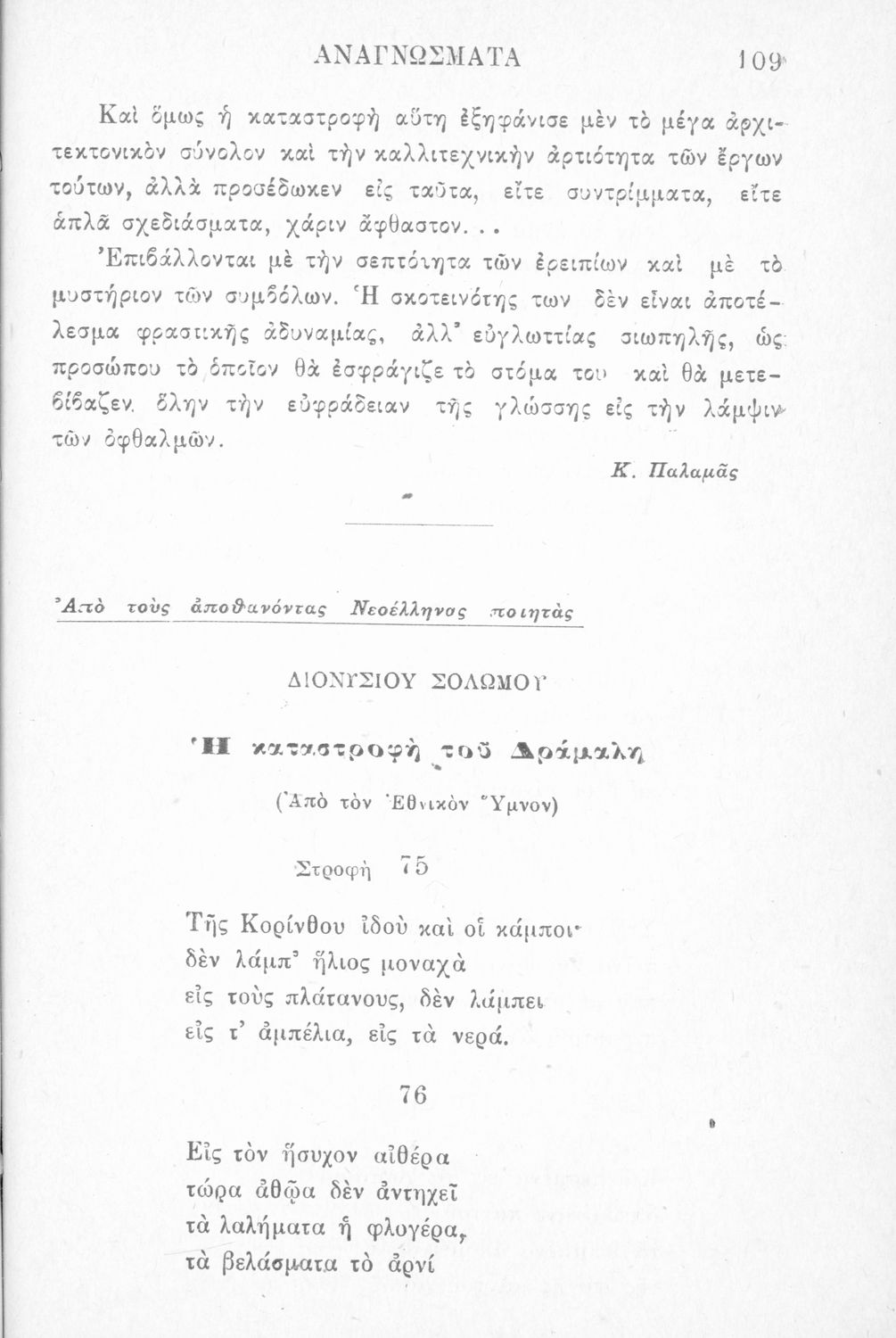 Σχετιζόμενοι όροι:  Κρυστάλλης, Παλαμάς, Σολωμός, Δροσίνης