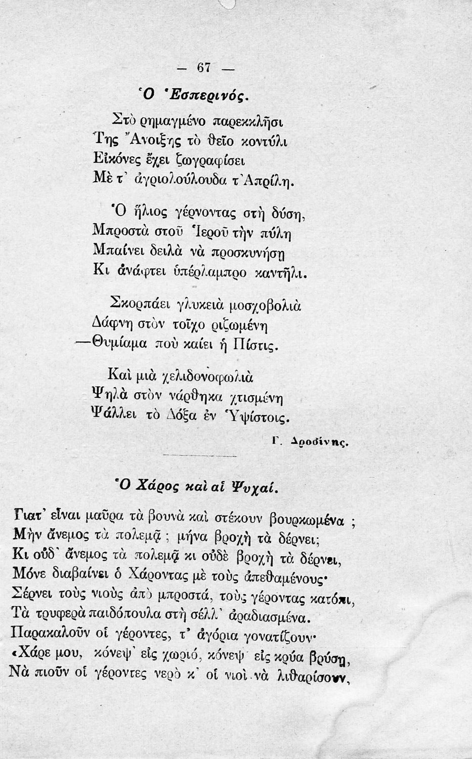 Σχετιζόμενοι όροι:  Κρυστάλλης, Παλαμάς, Σολωμός, Δροσίνης