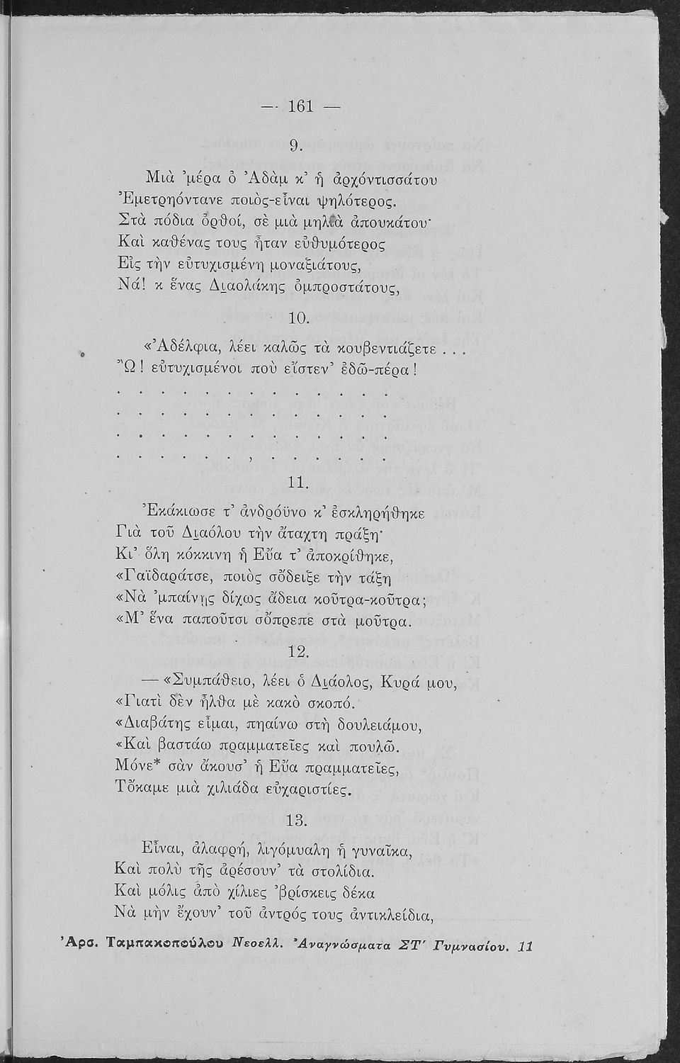 Τάξη:  Γ' Γυμνασίου / Α' Διδασκαλείου Αρρένων / Β' Διδασκαλείων Θηλέων